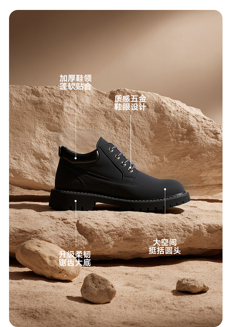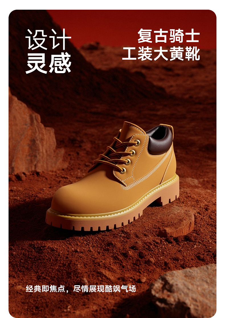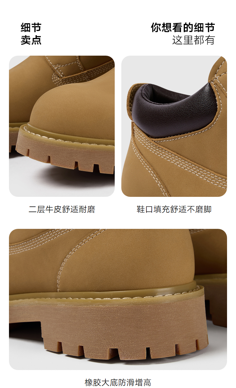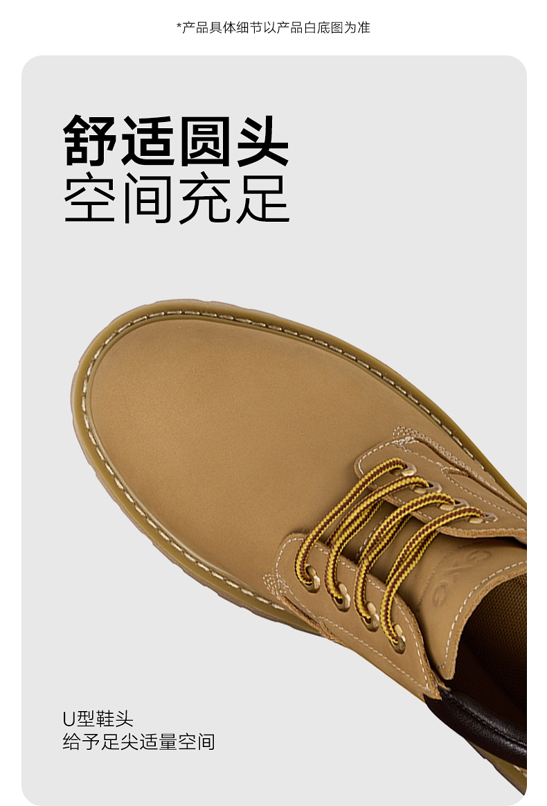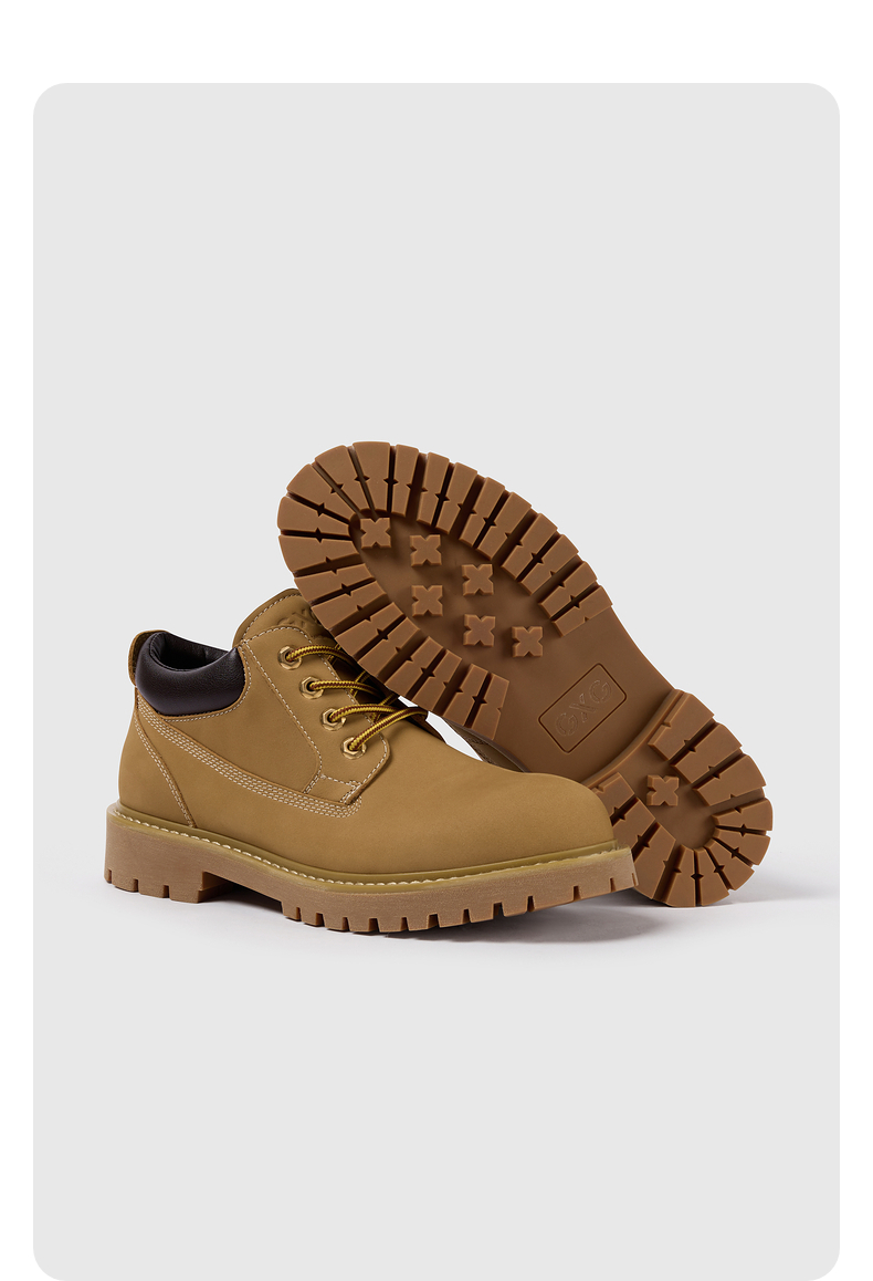 GXG通勤男鞋休闲百搭低帮马丁靴工装户外登山鞋增高大黄靴