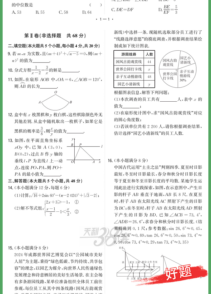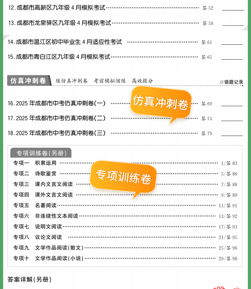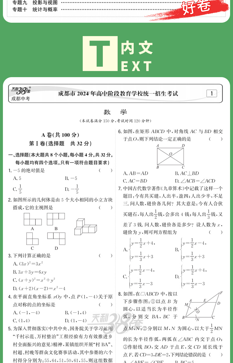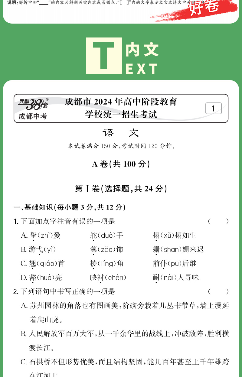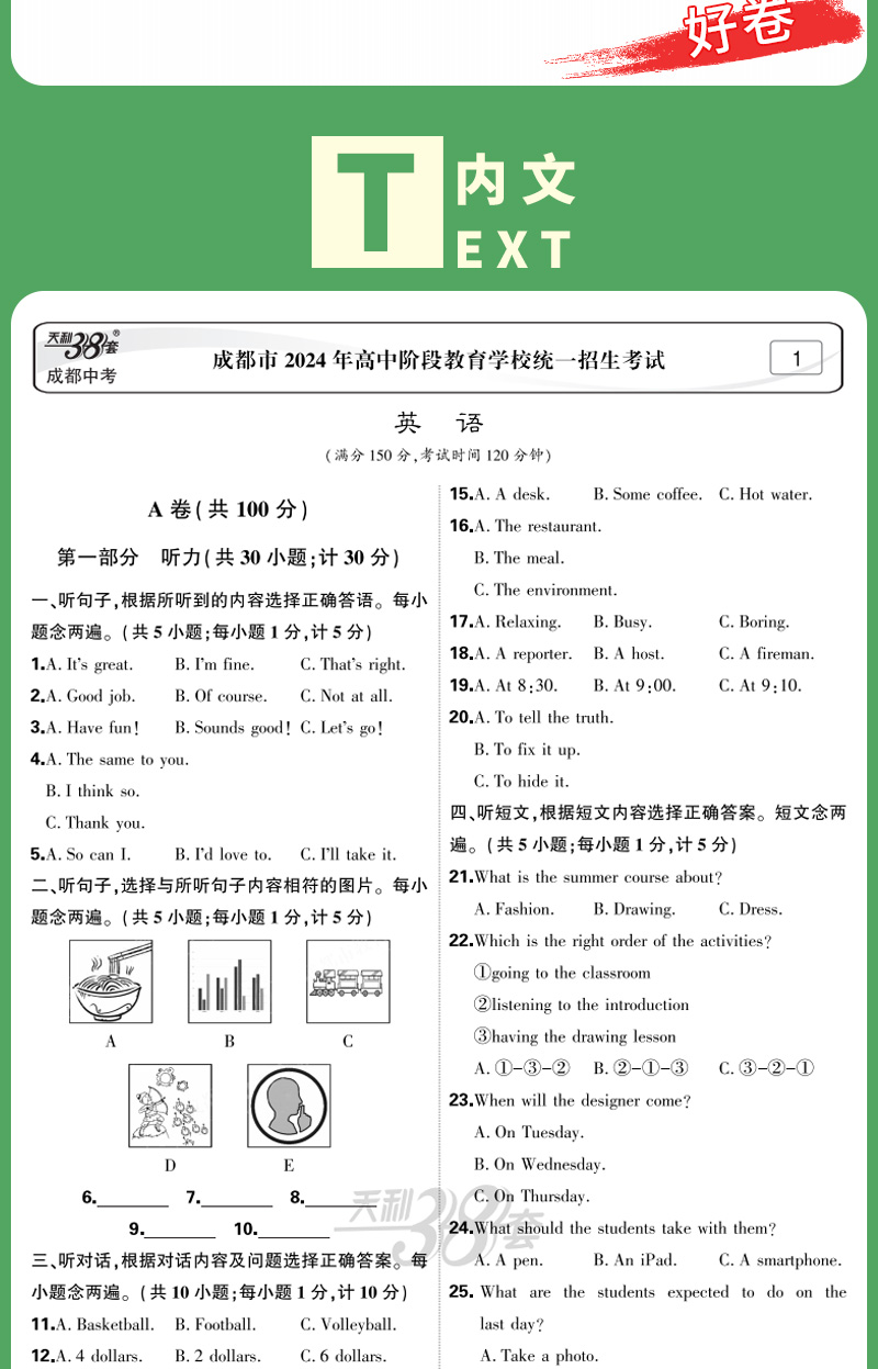 天利38套 2025成都中考试题精选 语文 数学 英语 物理 化学