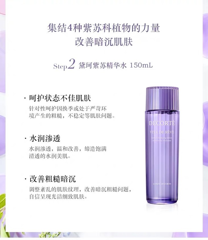1、产品名称:黛珂紫苏水牛油果乳液水乳套装