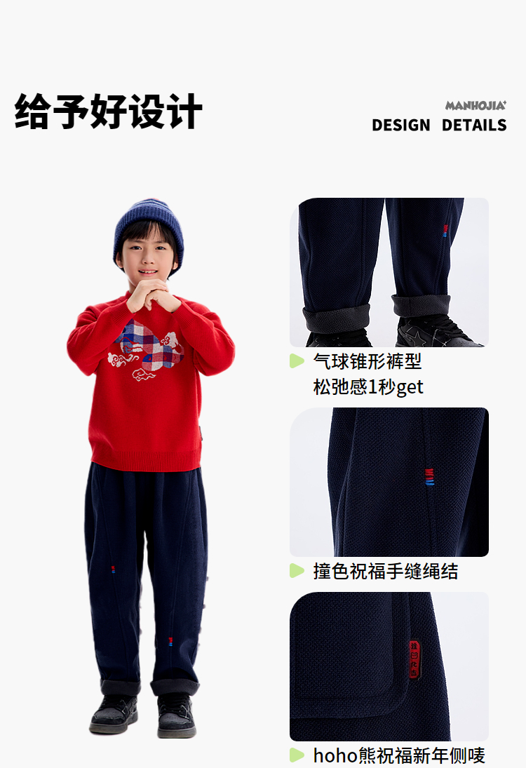 【“桃”个好彩头】漫画家24冬新中式祝福手缝绳结暖绒锥形裤