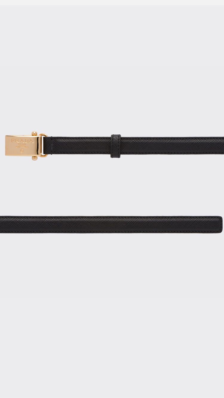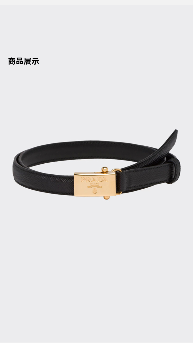 PRADA 普拉达 女士 Saffiano 十字纹皮革珐琅徽标饰牌搭扣腰带 黑色 1CC156 053 F0002