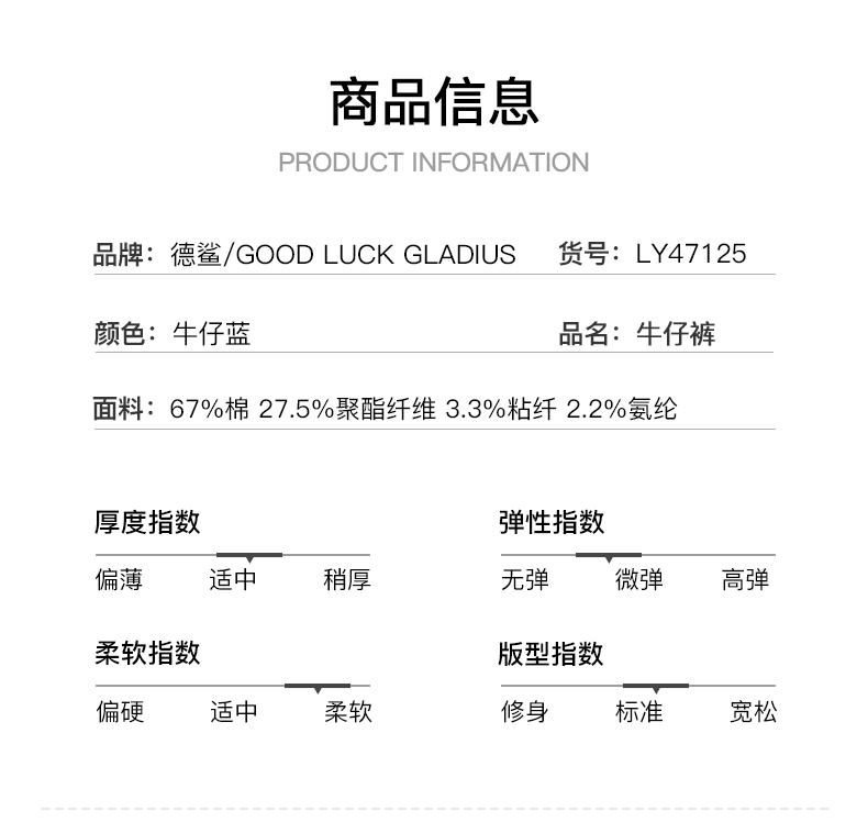 GOOD LUCK GLADIUS品牌由“浙江德鲨服饰有限公司”引进中国市场,经过多年发展,凭借完善的终端形象,规范化的销售管理,迅速赢得消费者的认可,引领国内消费流行,是成功人士首选男装品牌。