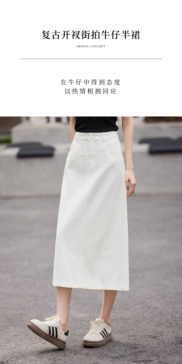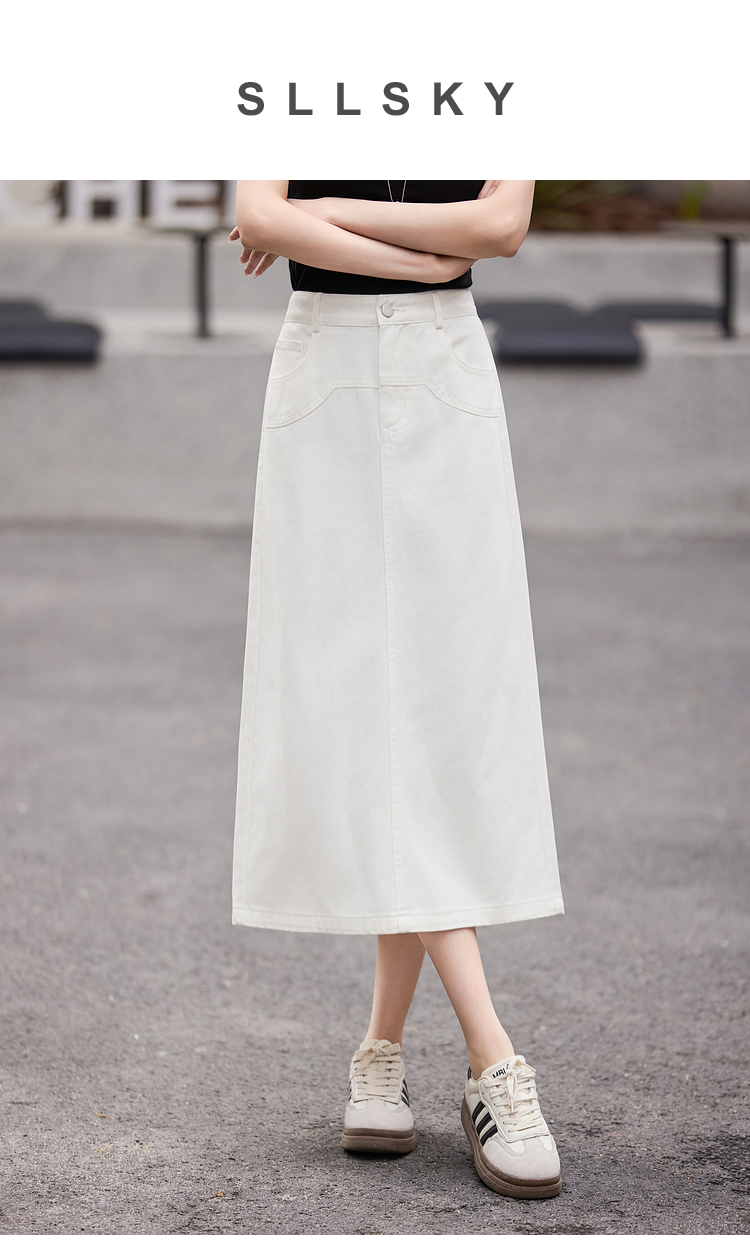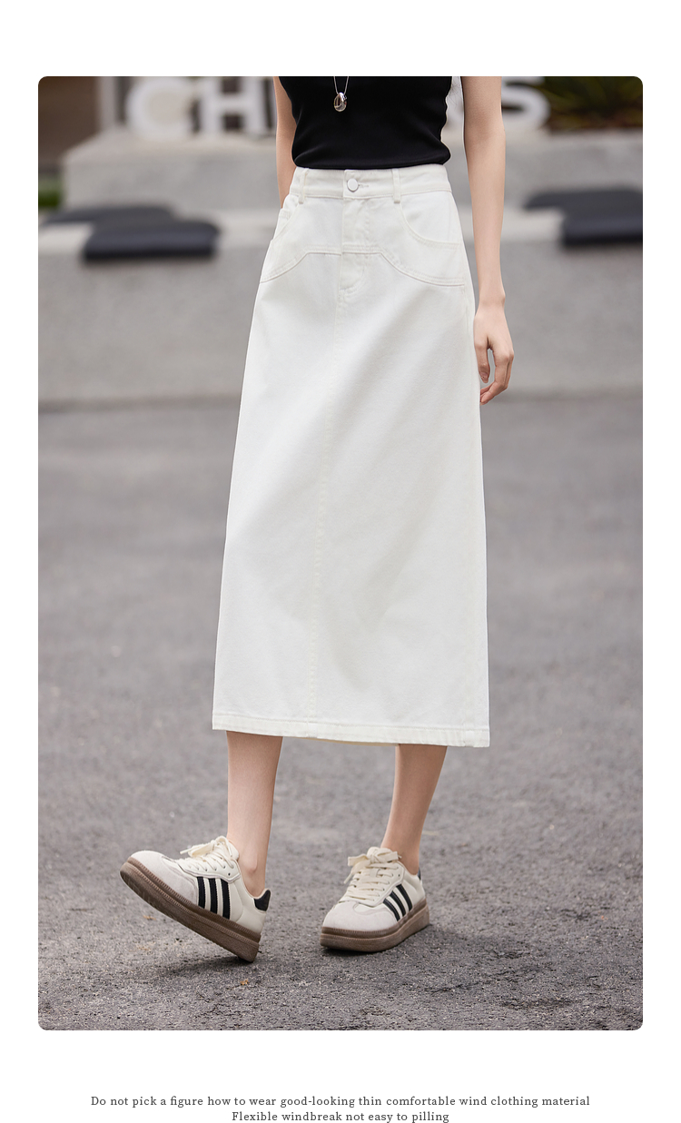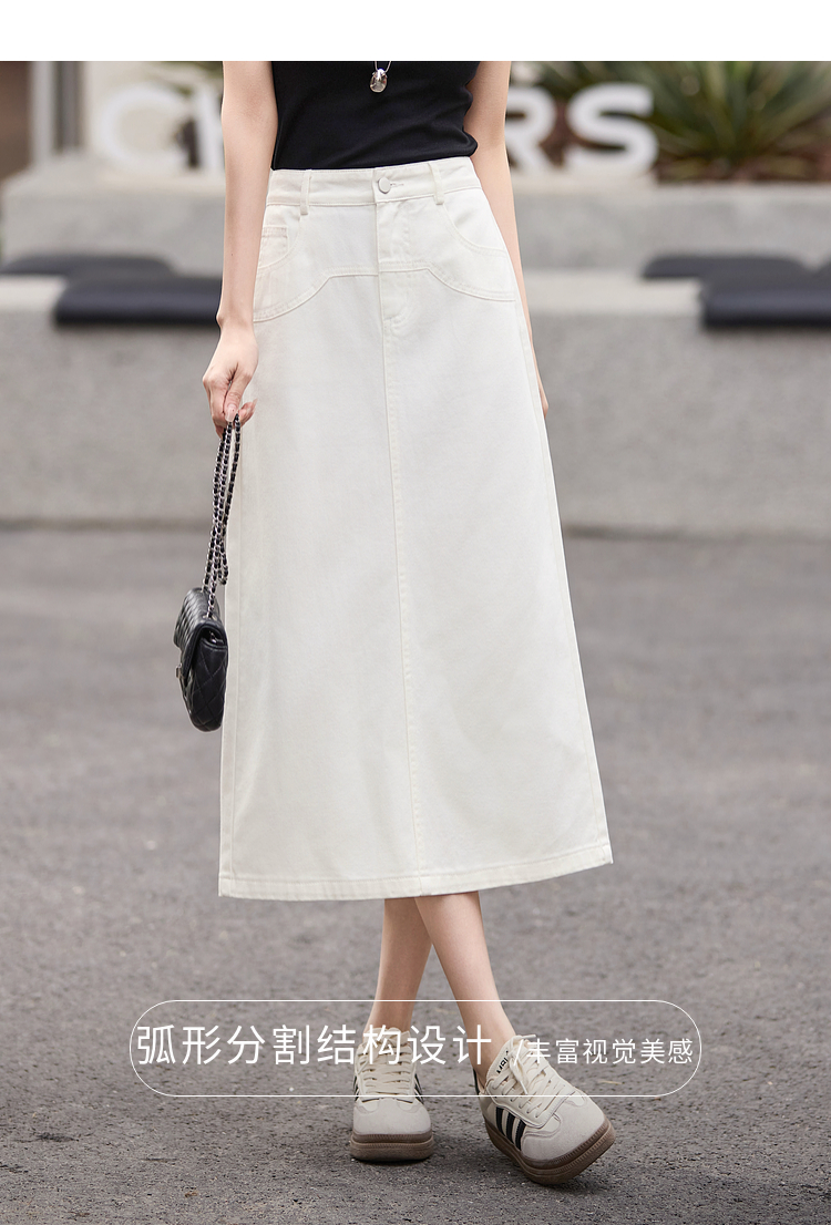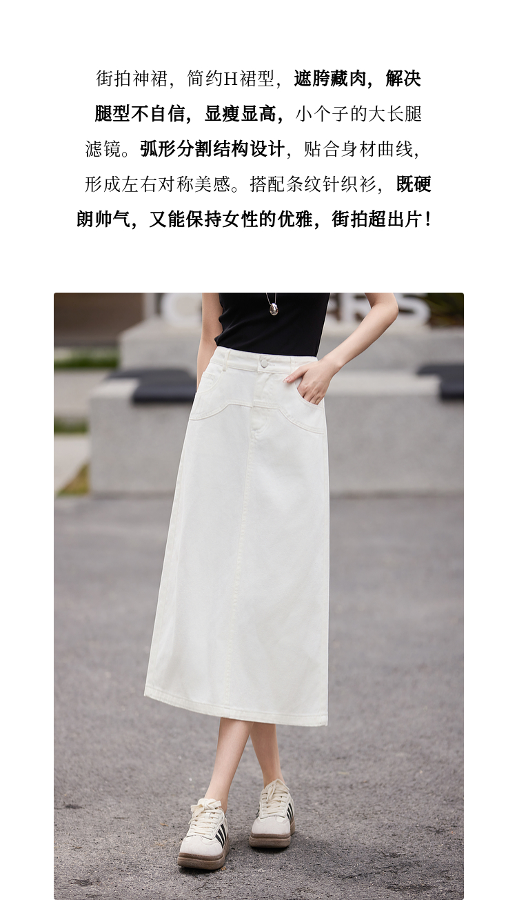 熙世界全棉白色牛仔半身裙女夏季薄款高腰显瘦包臀直筒裙a字裙子