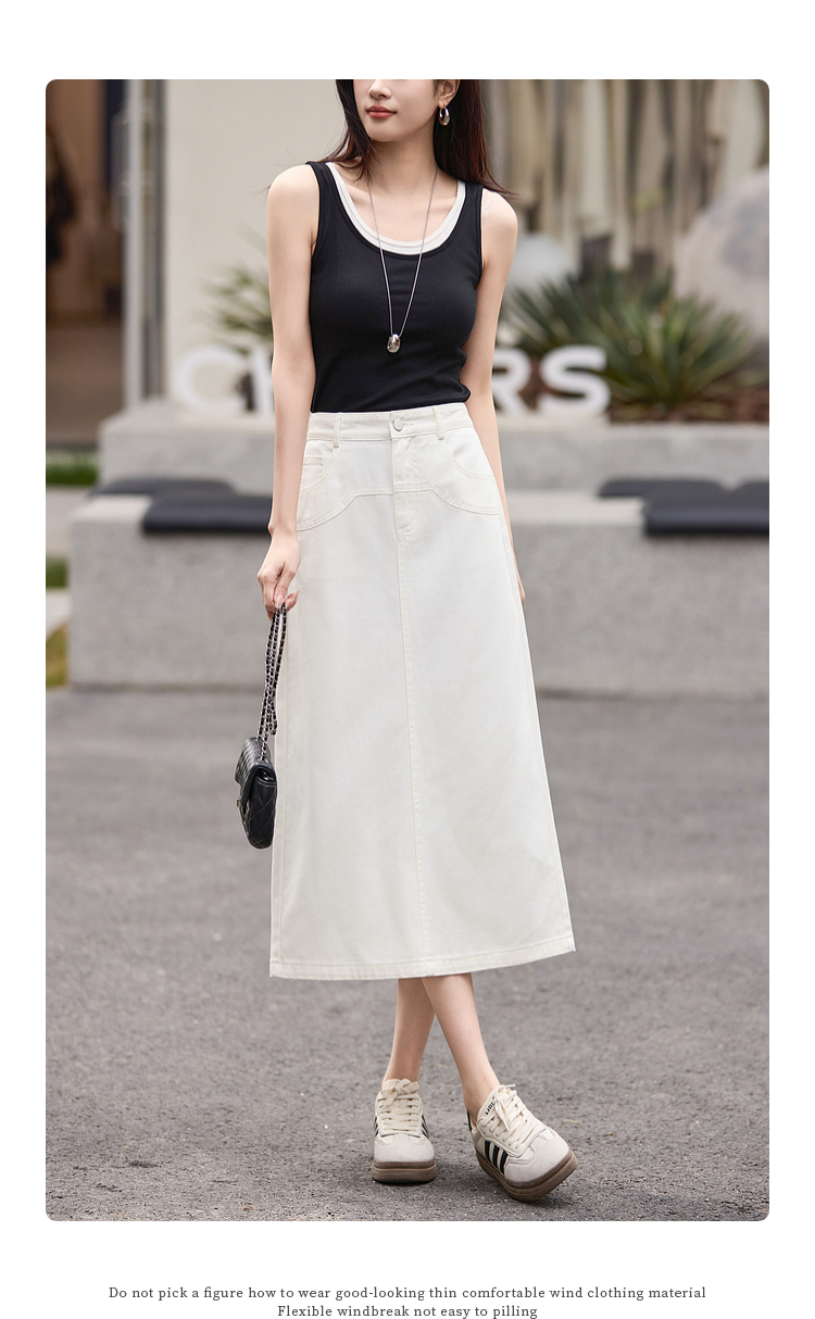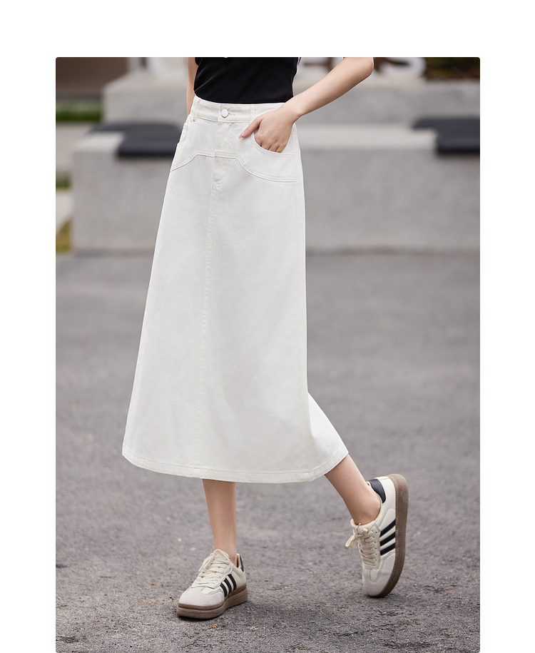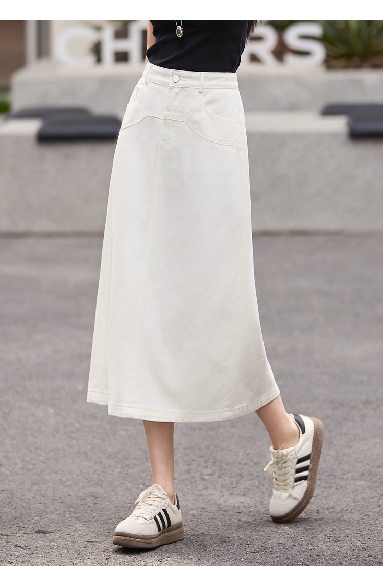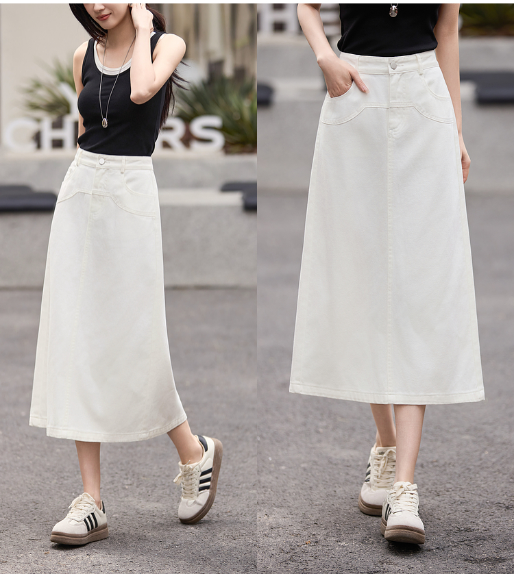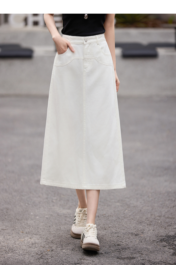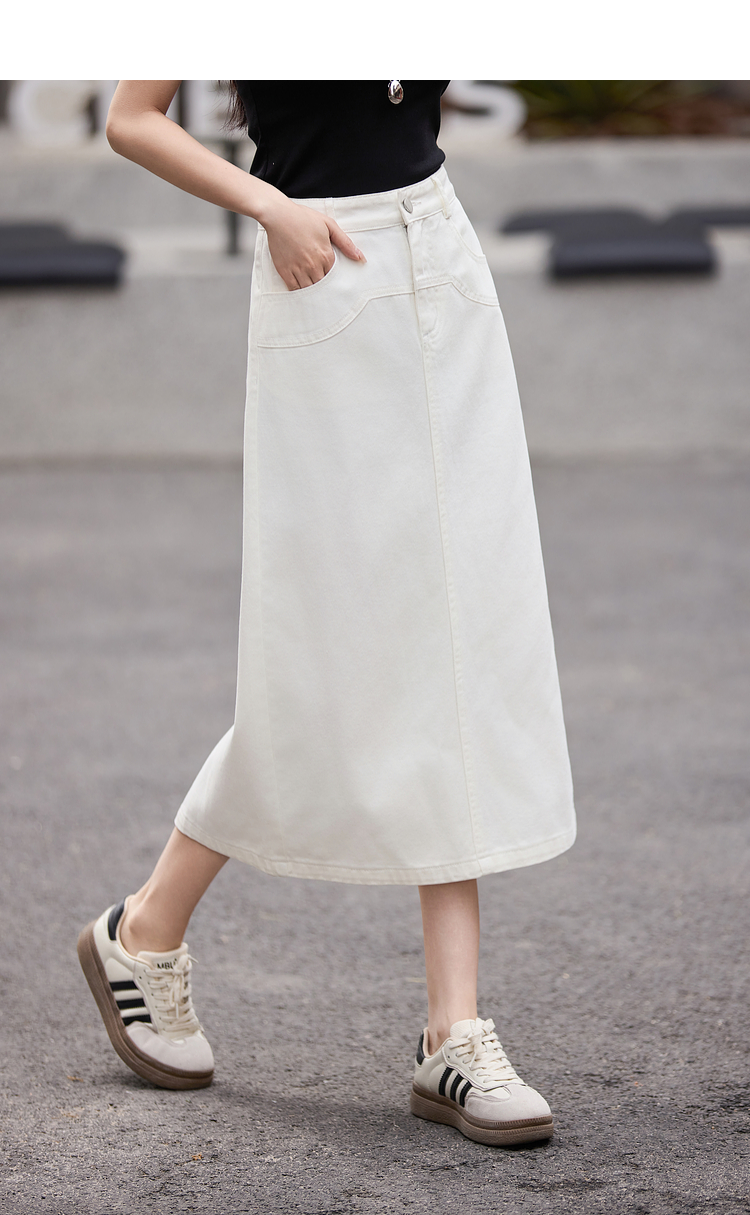 熙世界全棉白色牛仔半身裙女夏季薄款高腰显瘦包臀直筒裙a字裙子