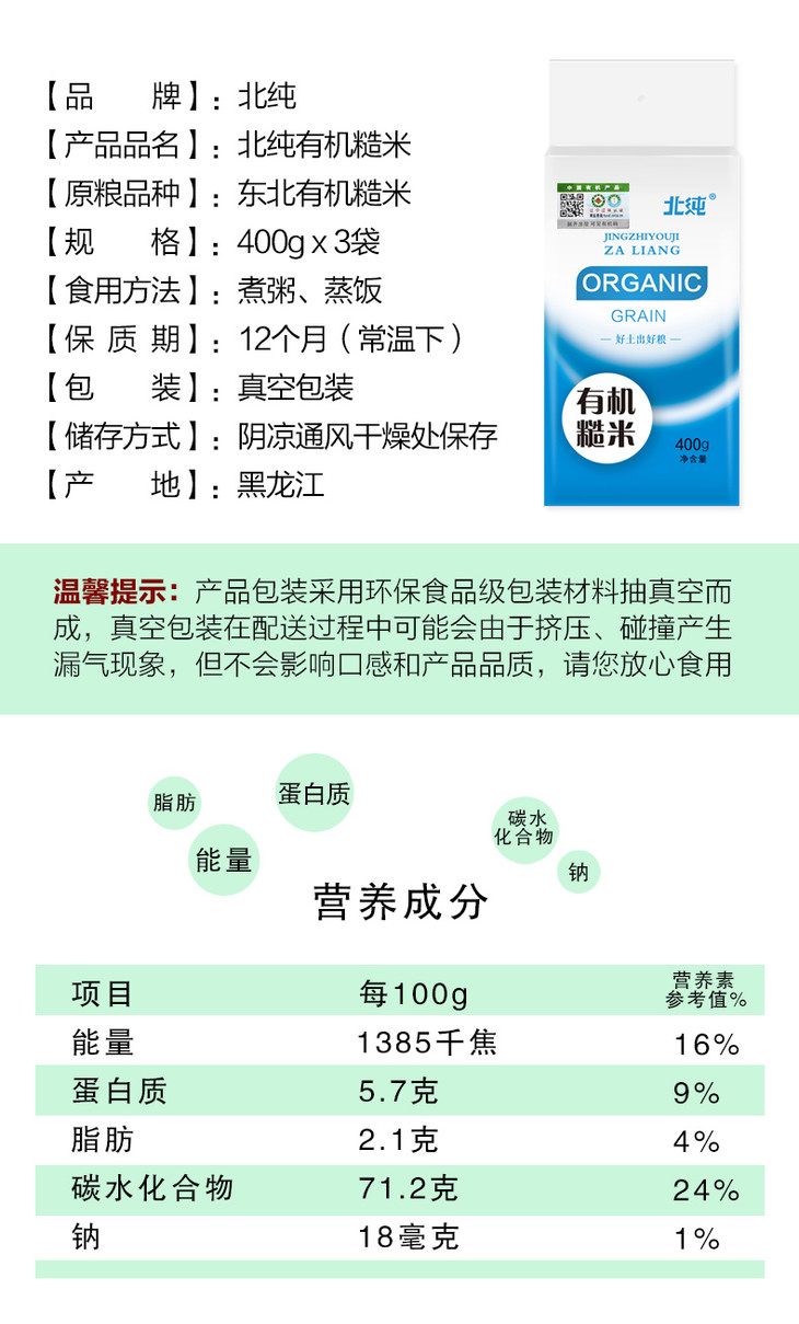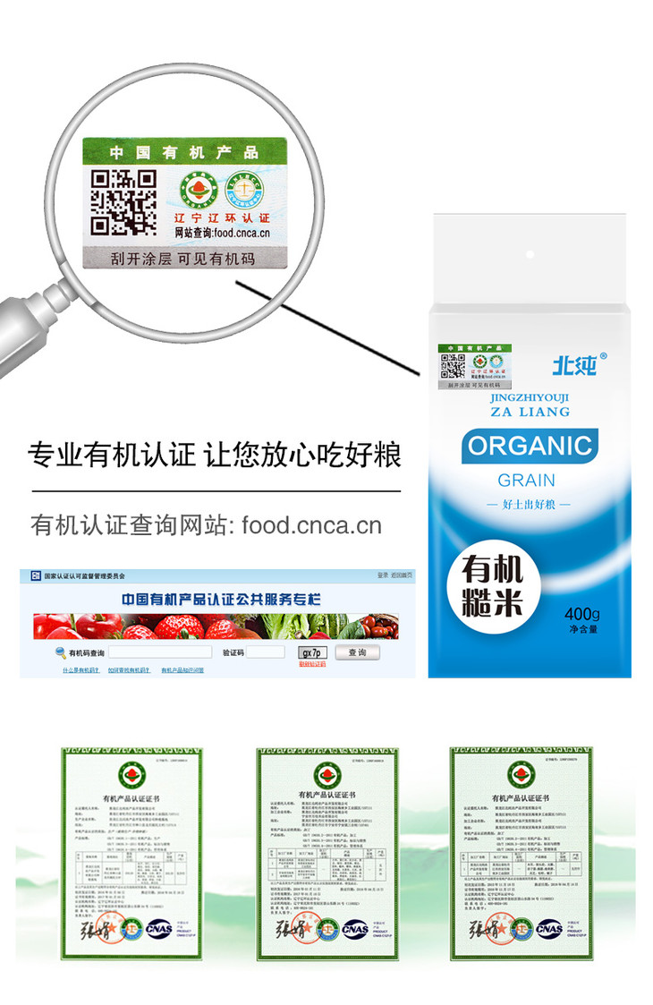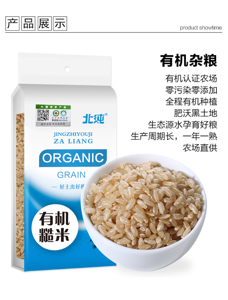 丨有机丨糙米 400g*3袋 北纯 东北粗粮 杂粮 冰箱冷藏