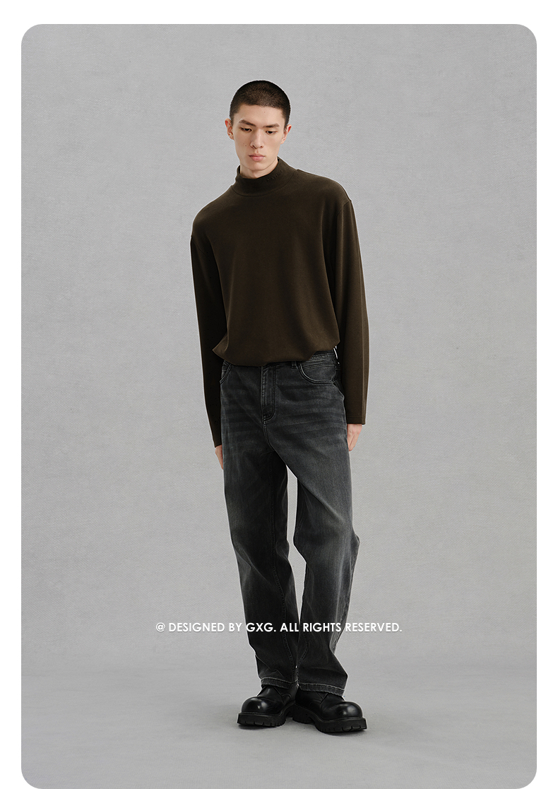 GXG男装 弹力保暖半高领通勤长袖T恤 内搭柔软舒适长袖 冬季热卖G24X344019