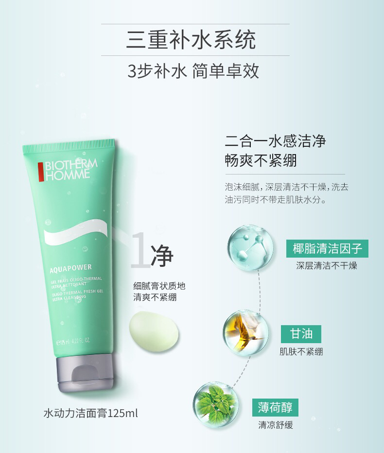 【海关保税直发】碧欧泉男士护肤套装-水动力洗面奶保湿乳清爽补水-会员5折