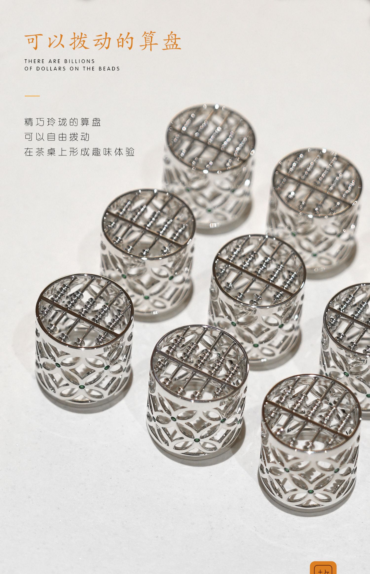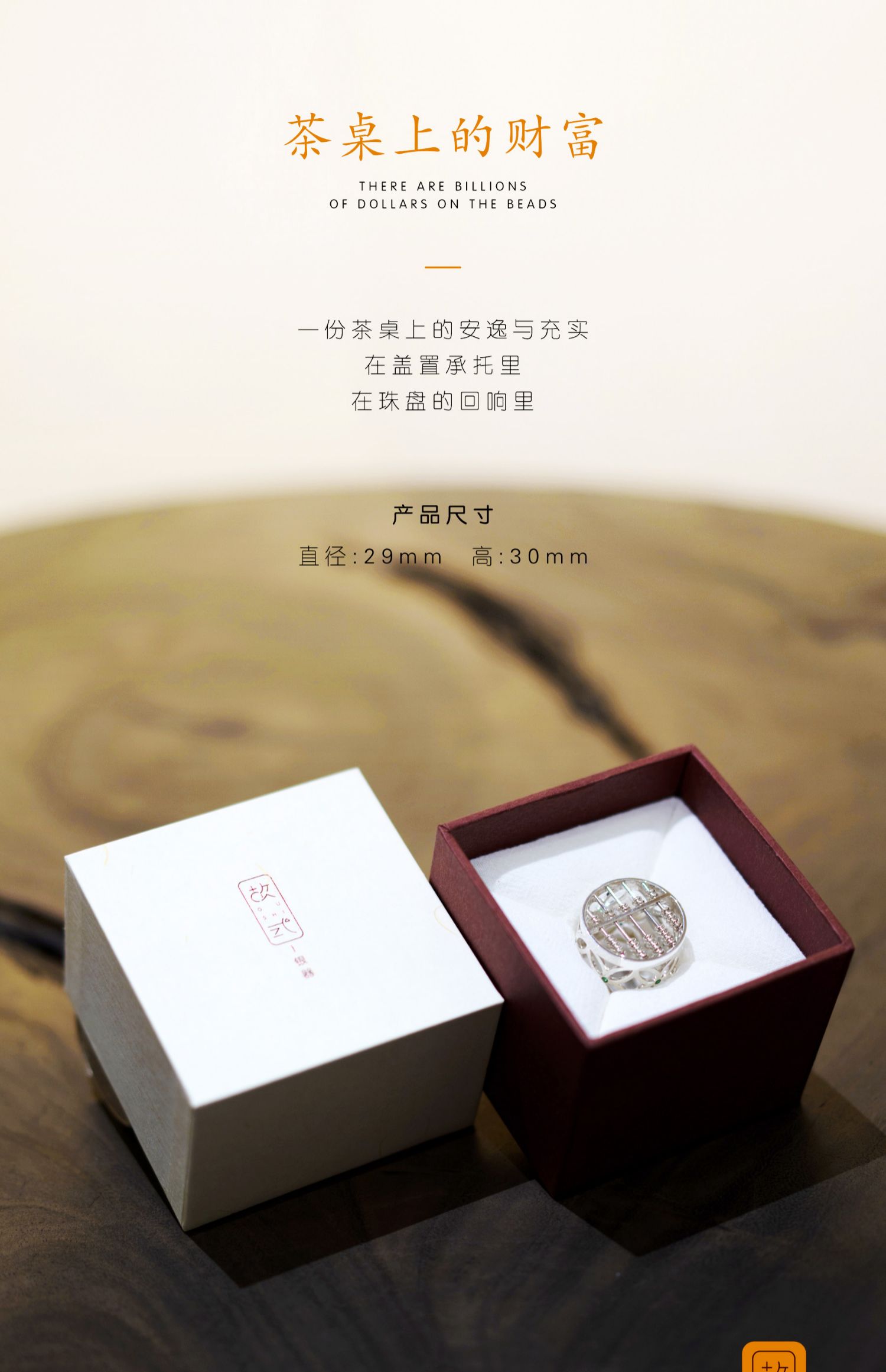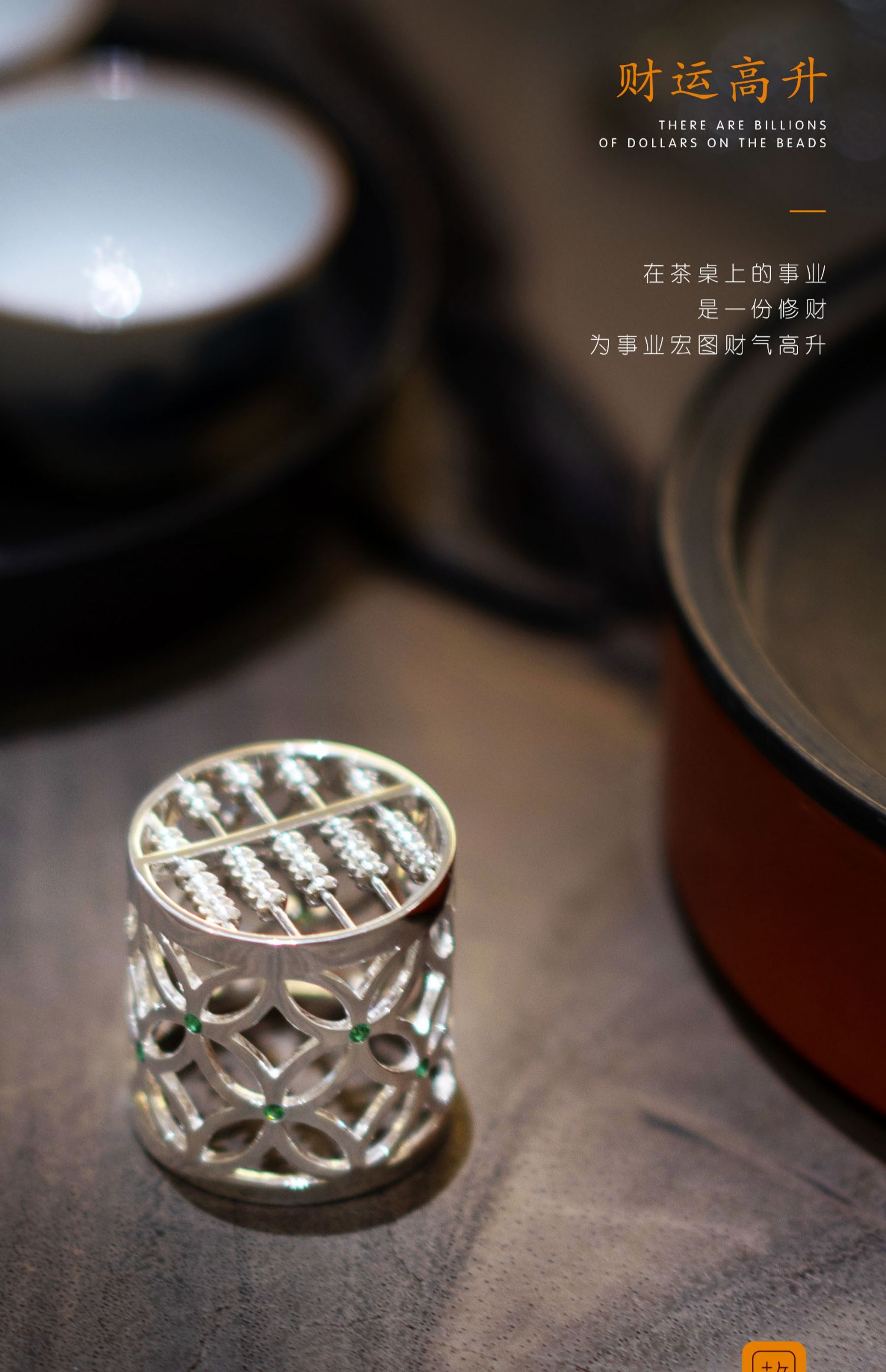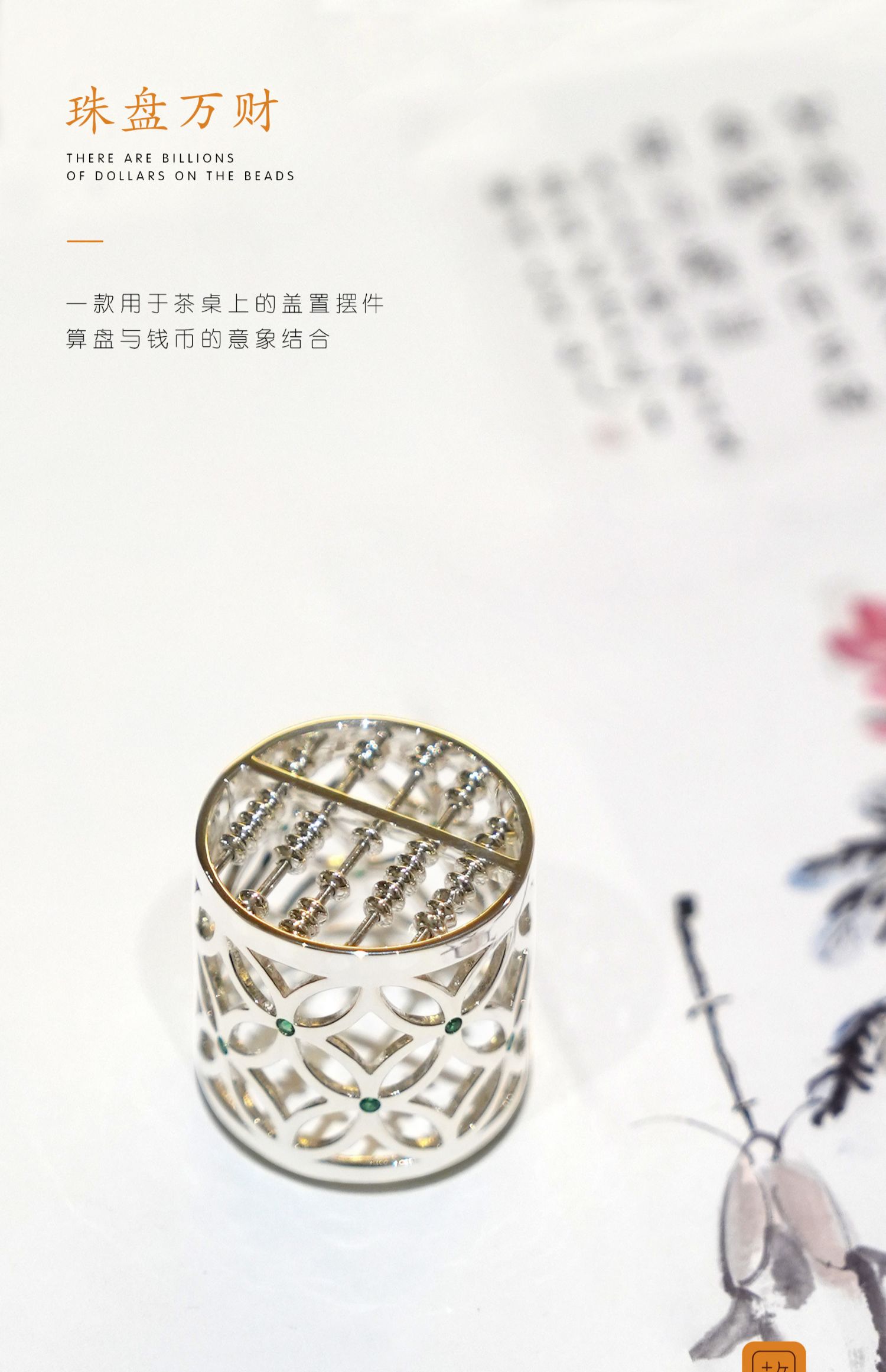 故式珠盘万财·算盘茶盖置·茶桌招财摆件·925银
