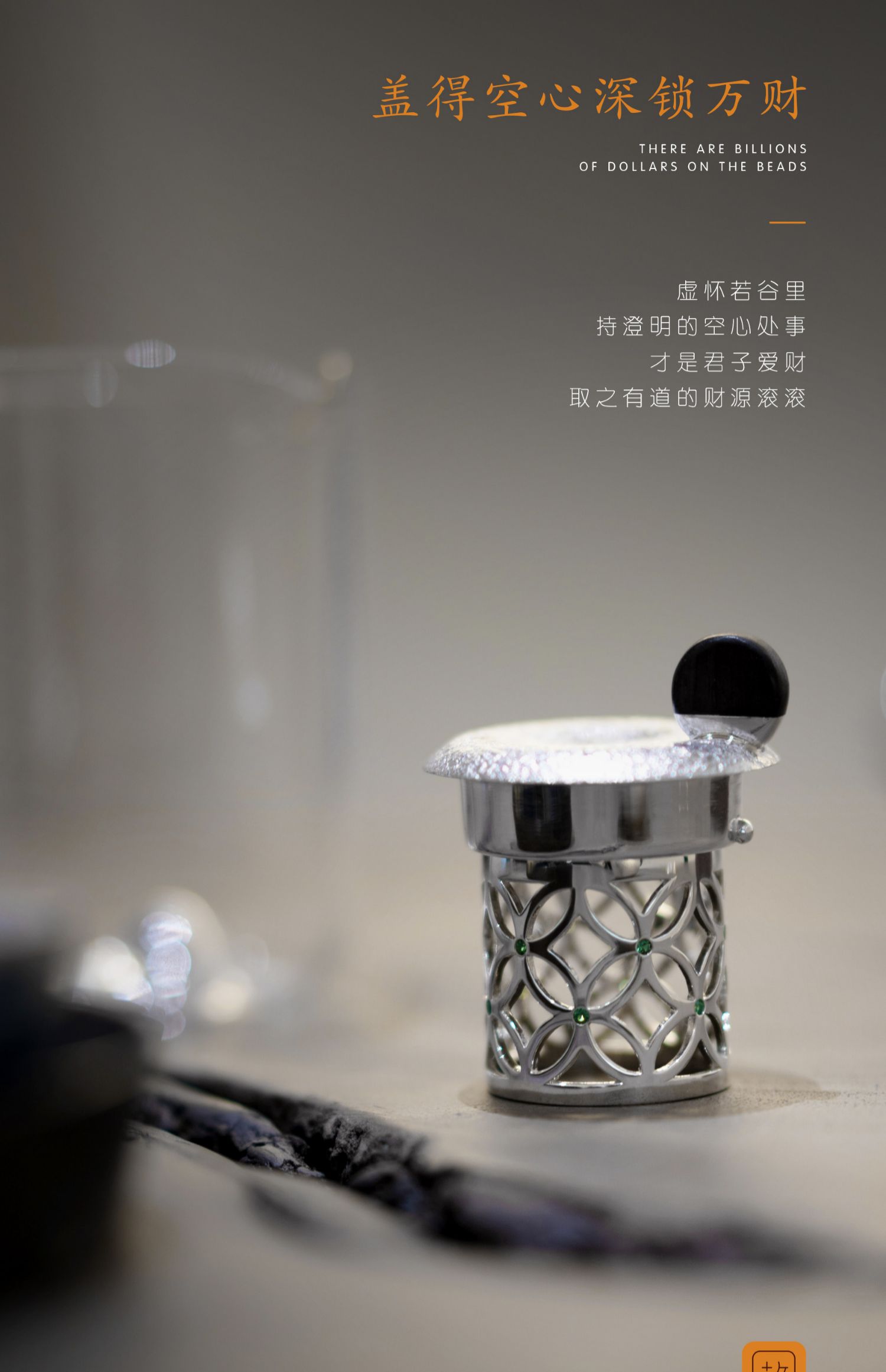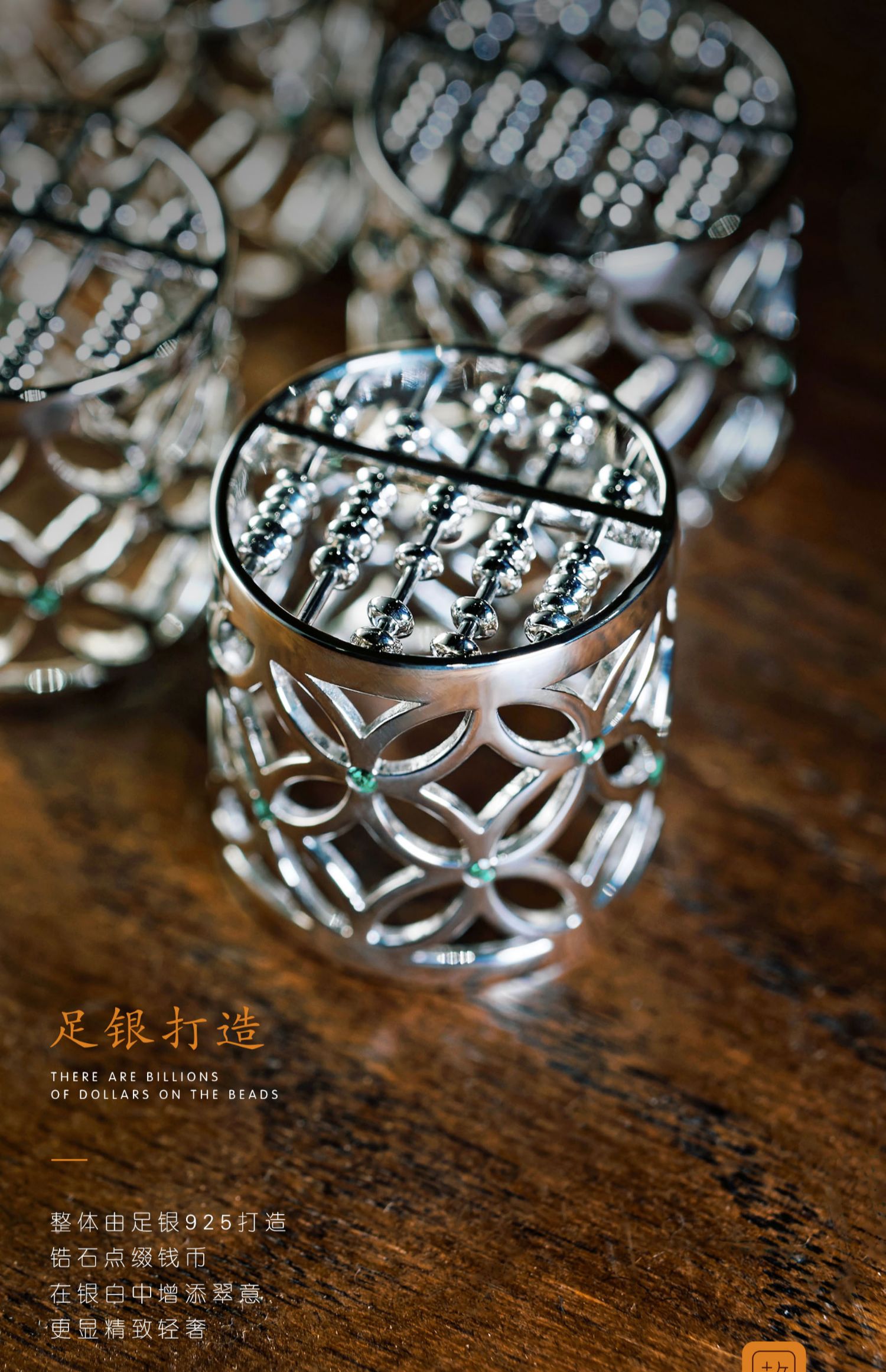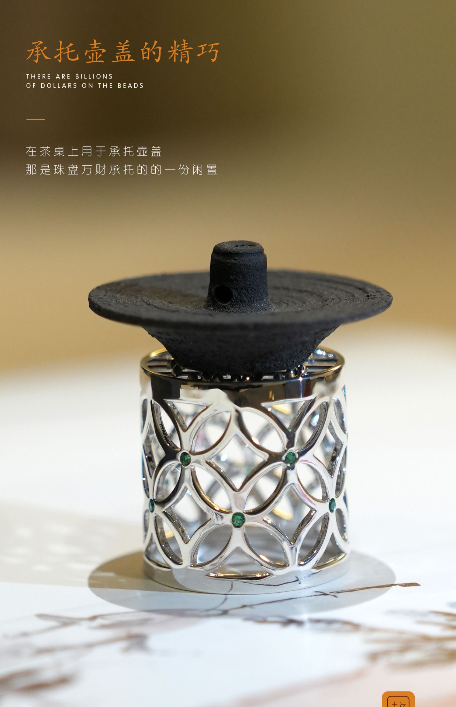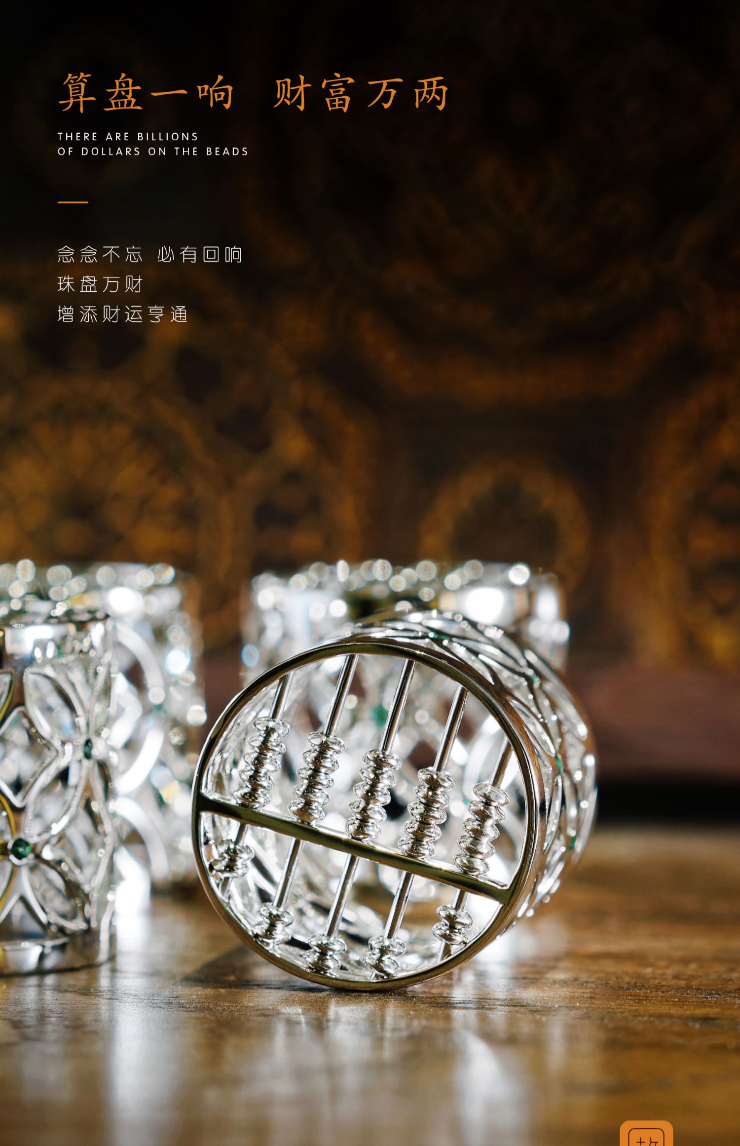 故式珠盘万财·算盘茶盖置·茶桌招财摆件·925银