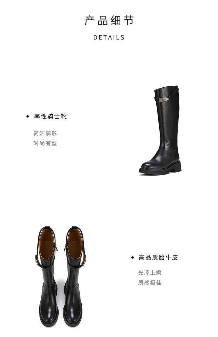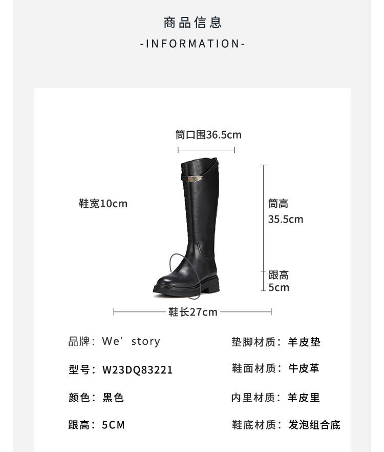 westory2023年新品法式复古时装靴方跟不过膝高筒长靴女W23DQ83221