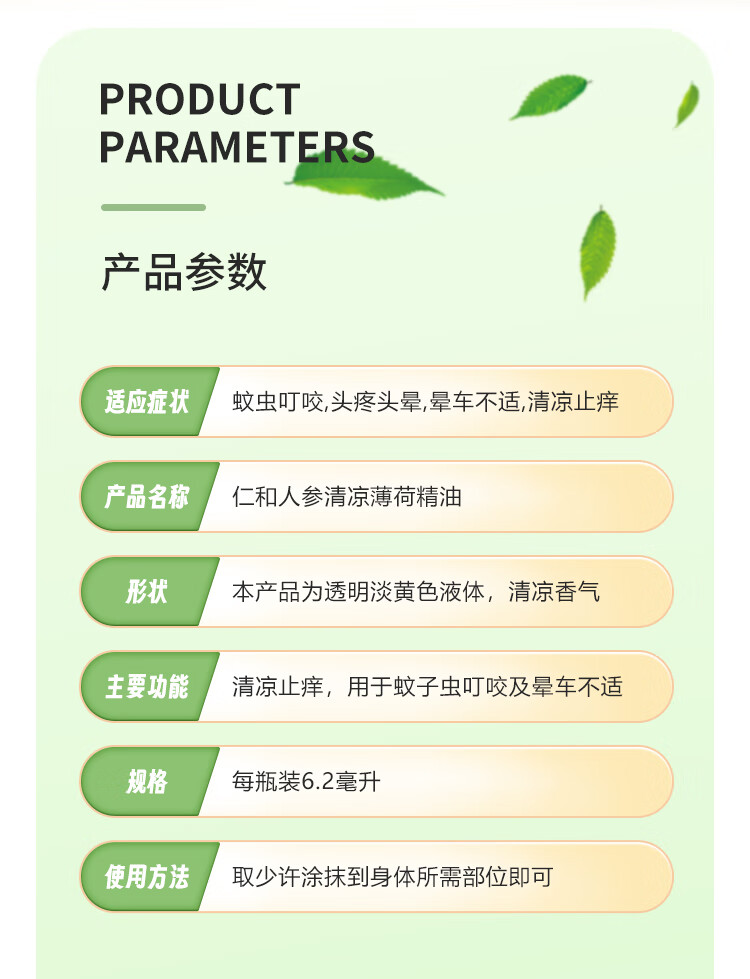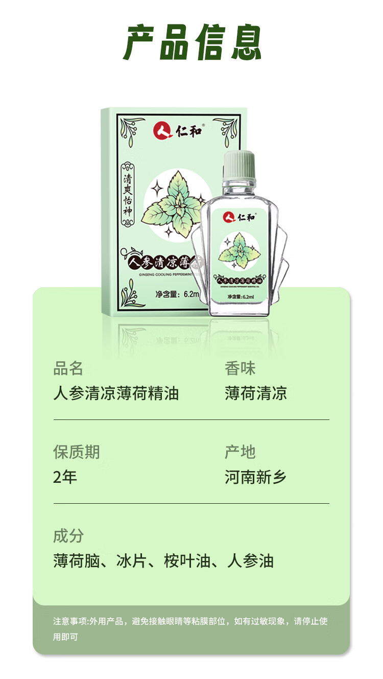 【分仓直发包邮】仁和人参清凉薄荷精油6.2ml