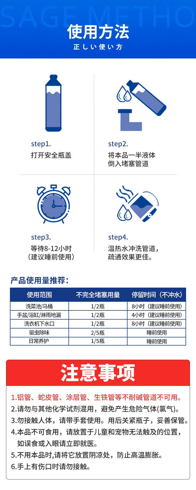*巨奇严选 管道疏通剂强力溶解厨房下水道油污厕所马桶疏通神器3瓶装