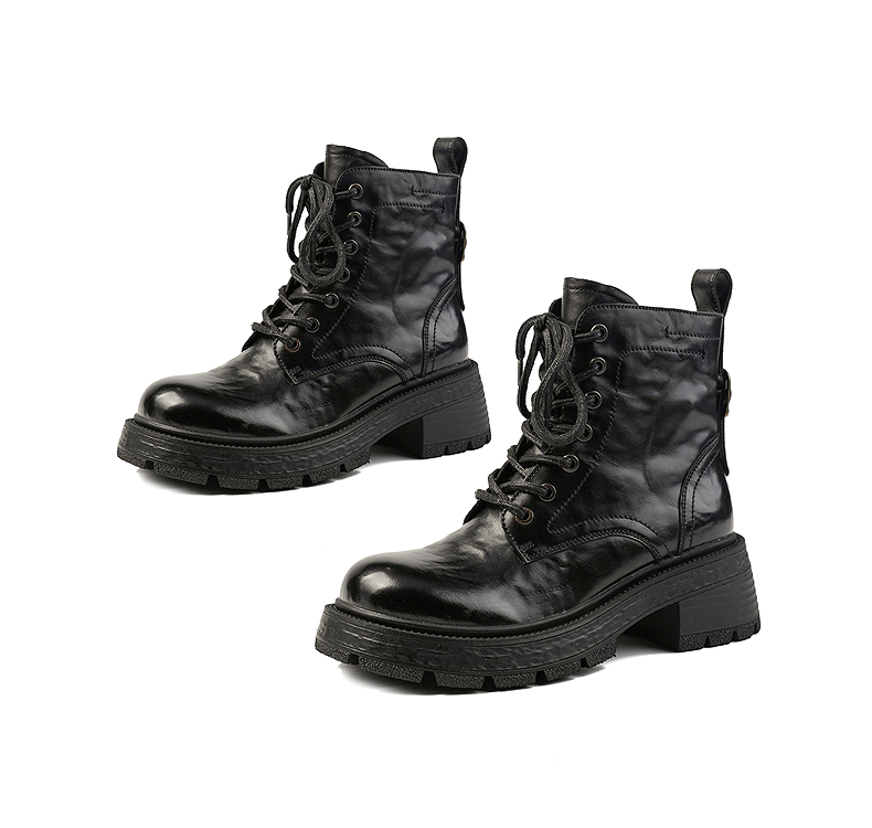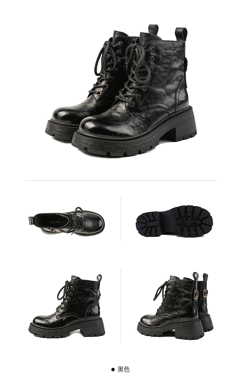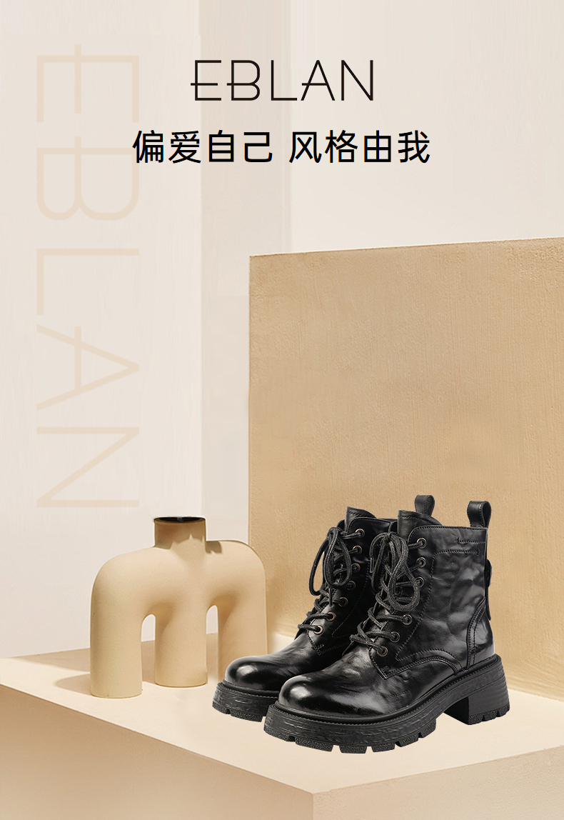伊伴冬季独特手抓花鞋面潮酷马丁靴女鞋B25580155