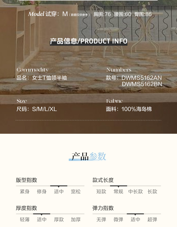 东黎 • 岛屿假日—微风渡海 海岛棉女士T恤领半袖 5162