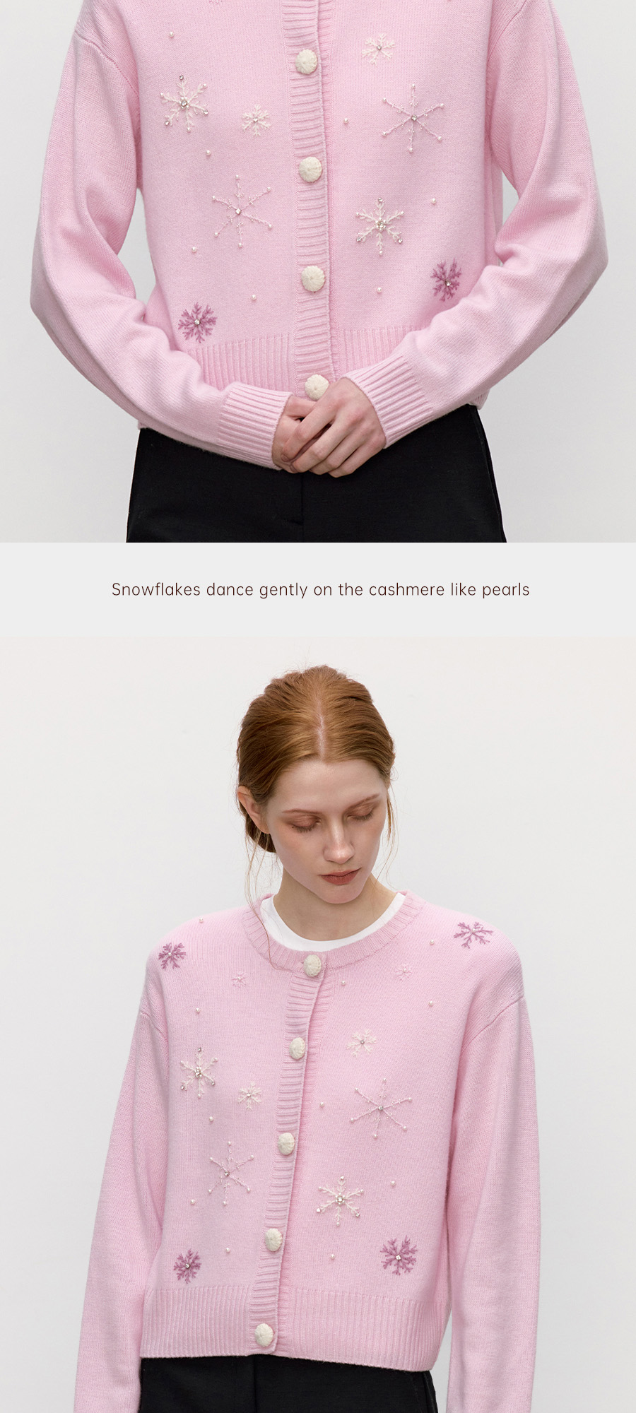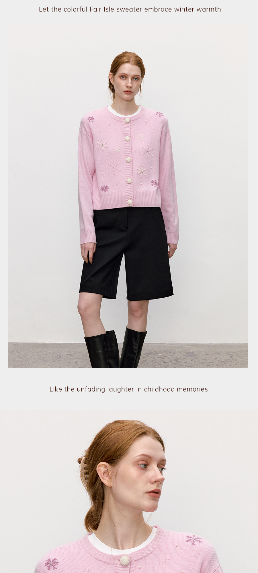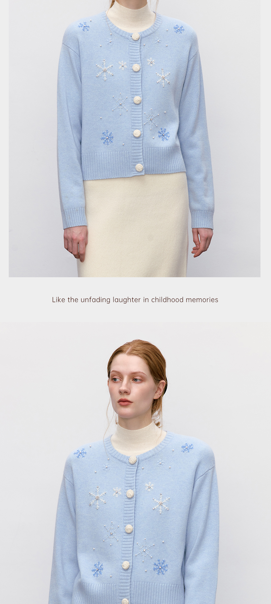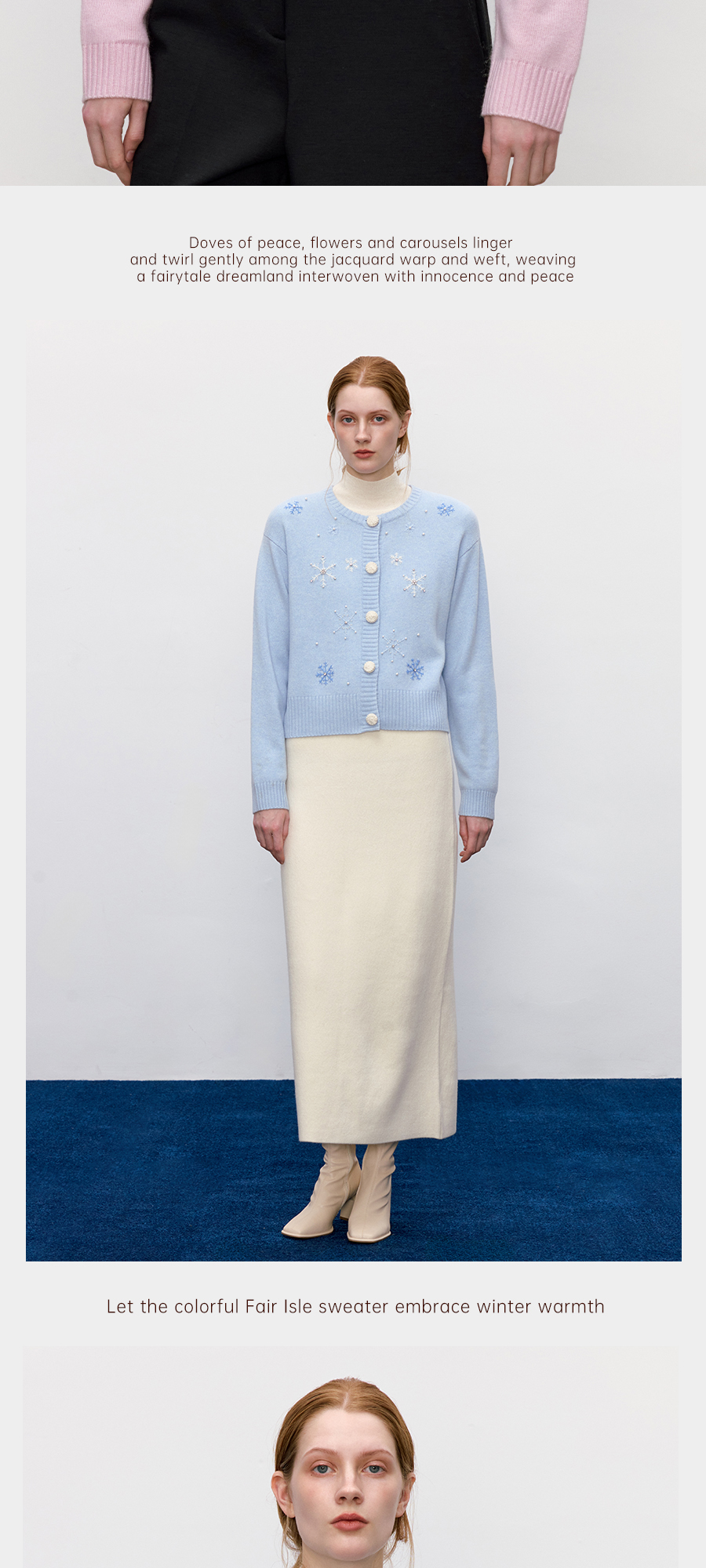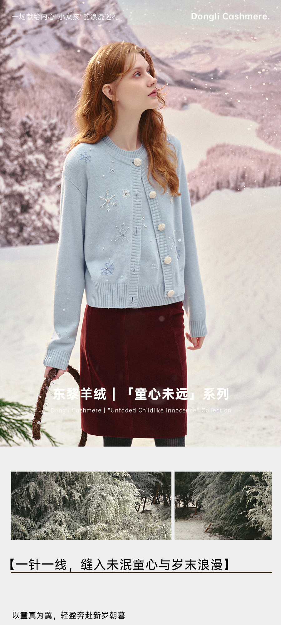 东黎 • 童心未远 初雪 山羊绒女士冬季提花圆领开衫 5556