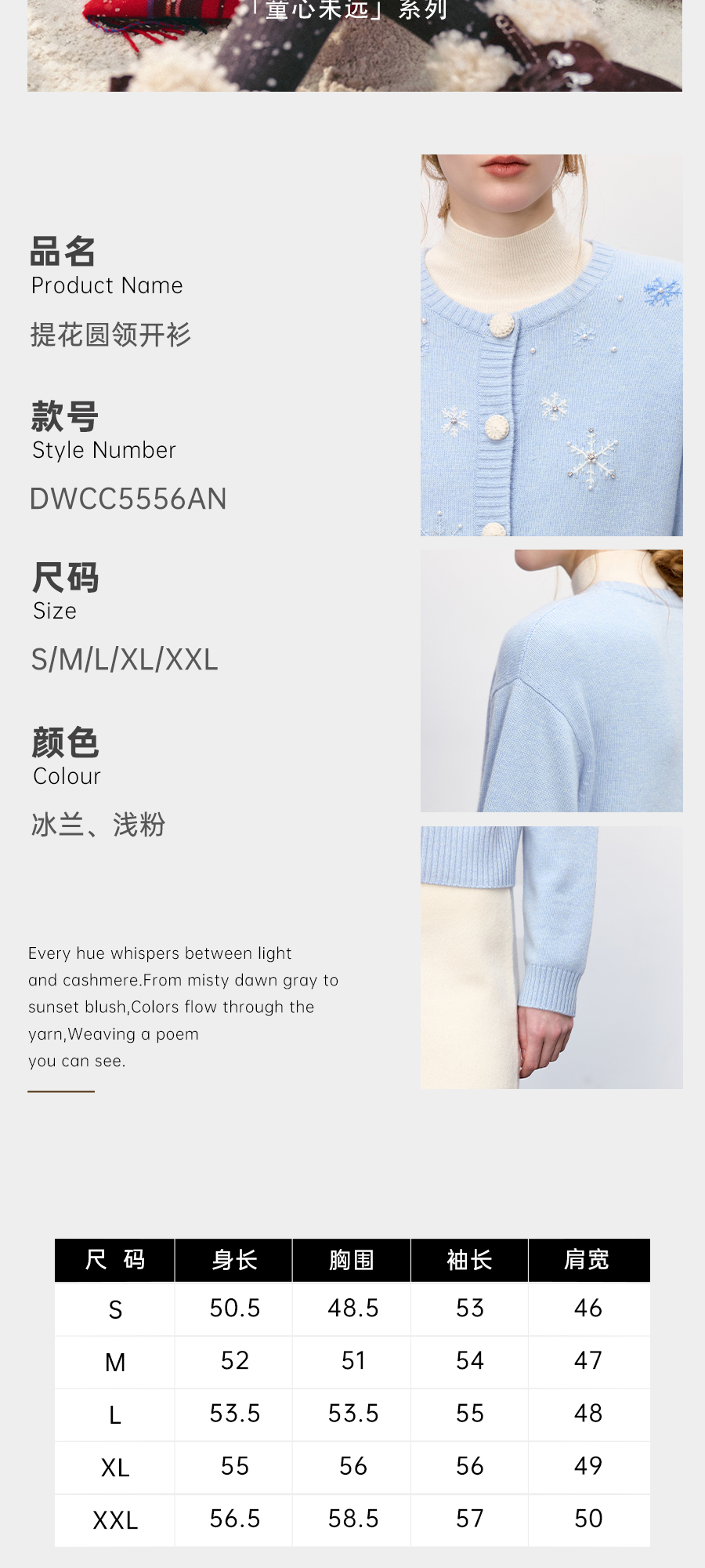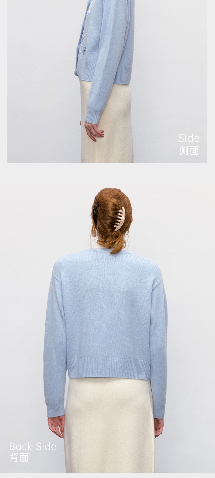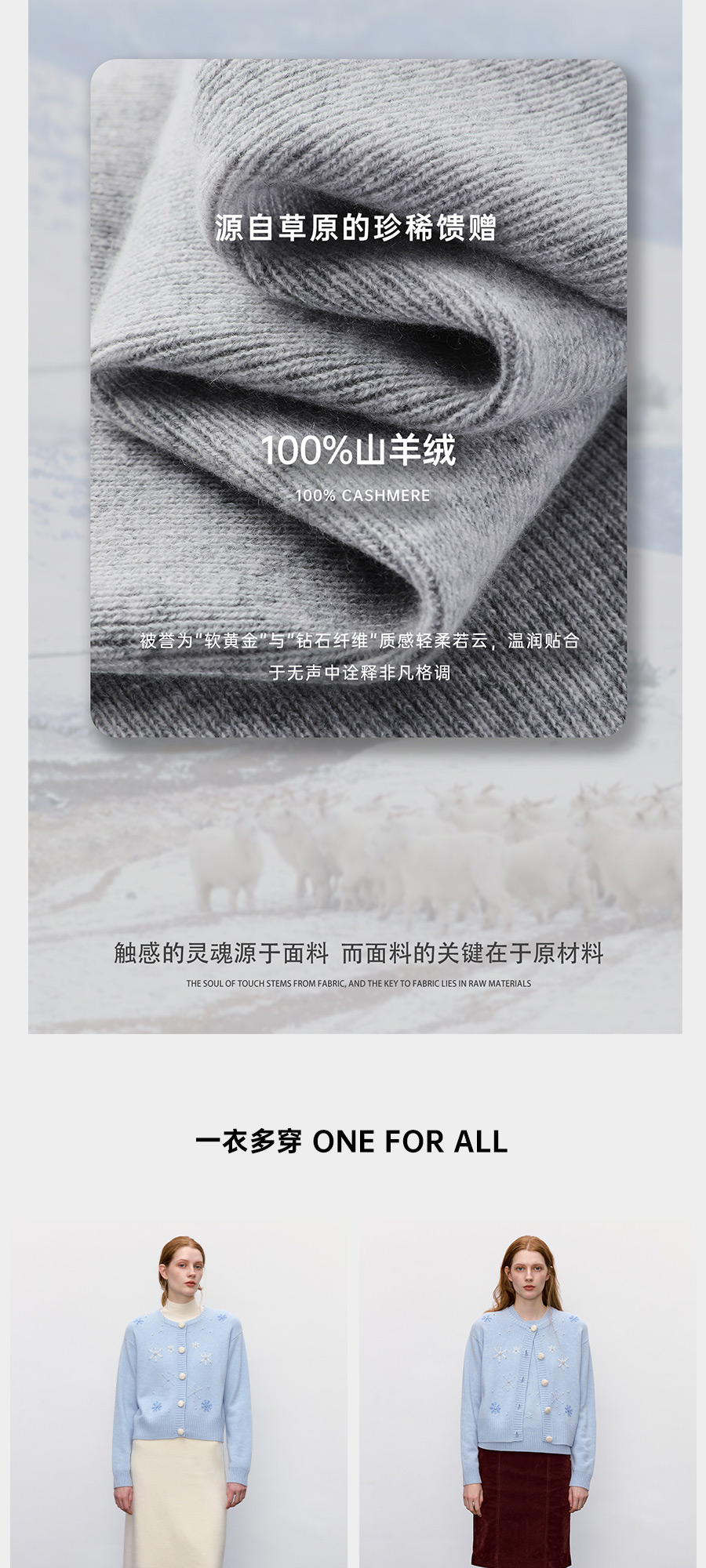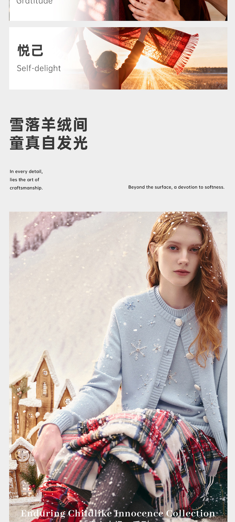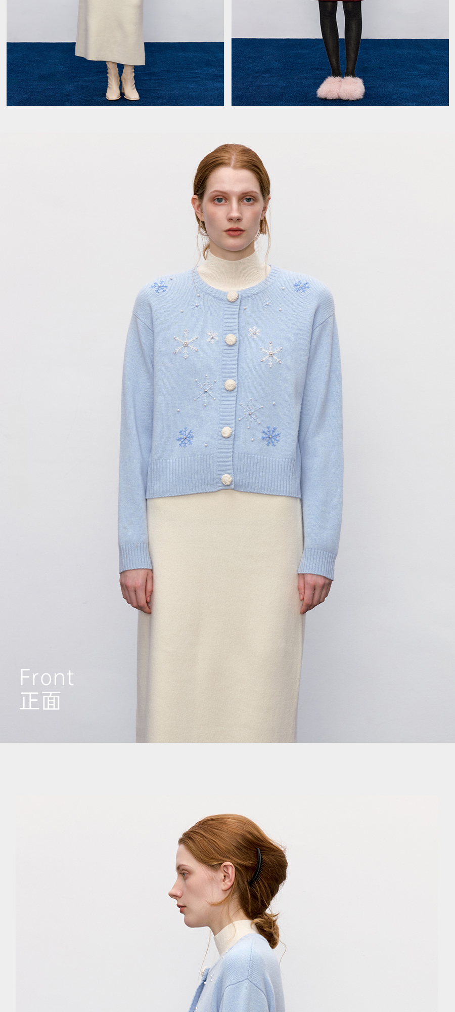 东黎 • 童心未远 初雪 山羊绒女士冬季提花圆领开衫 5556