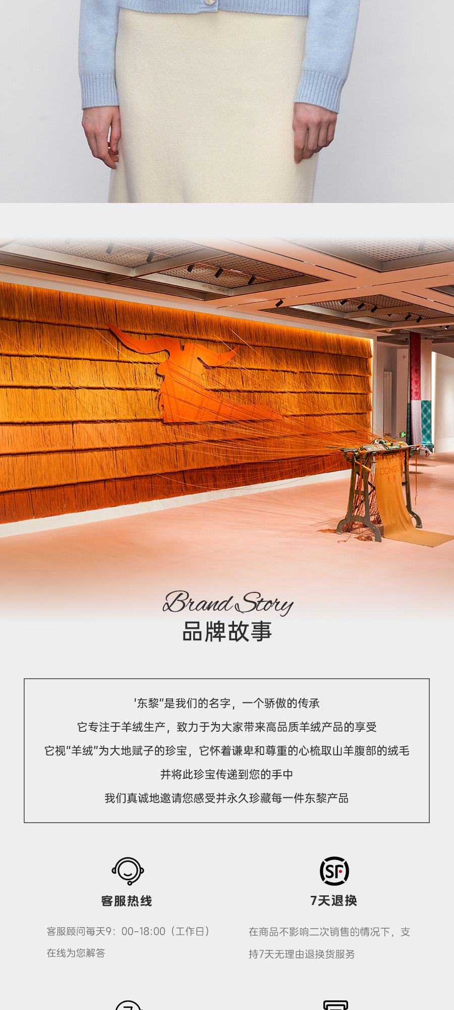 东黎羊绒是赤峰东荣集团自主品牌,自有牧场/羊绒制品全产业链优势,实现了羊绒从“牧场”到“商场”的华丽转变。