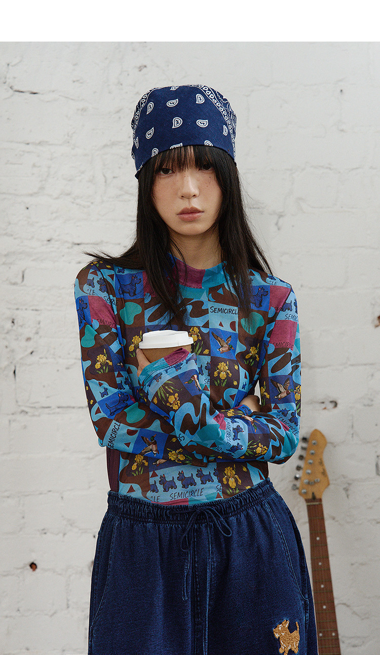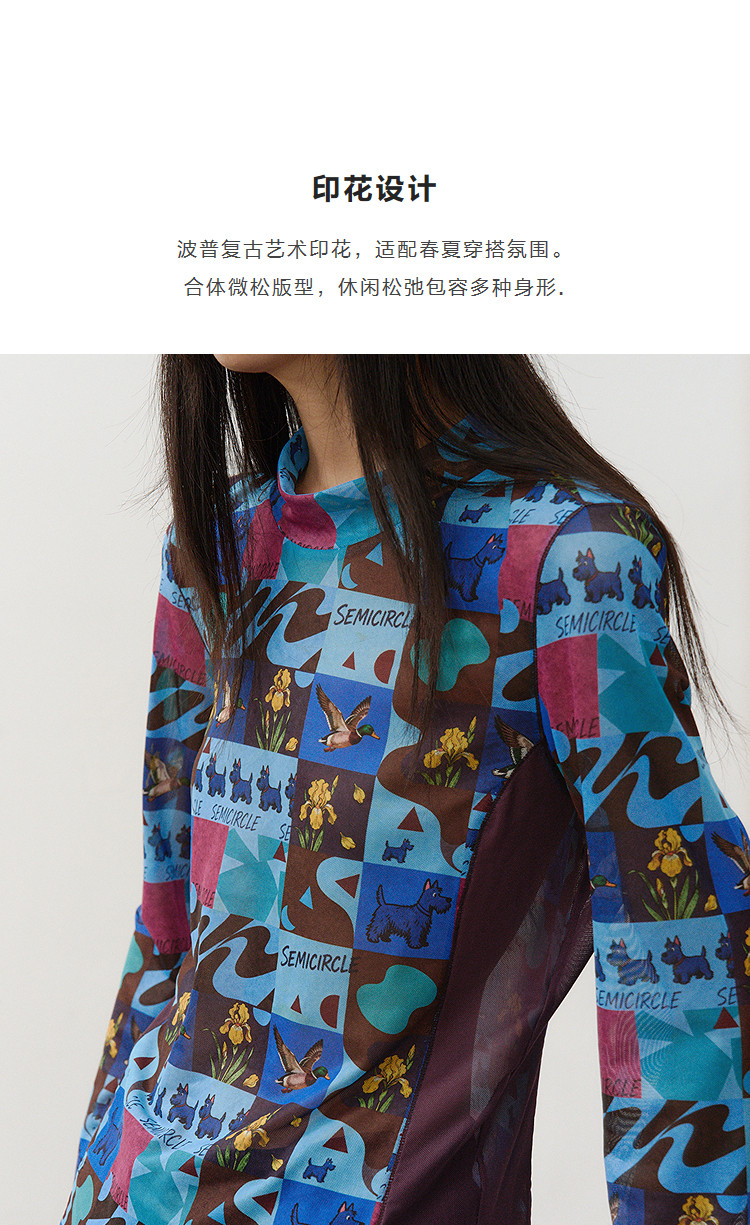 半圆/C66370110/修身休闲小立领波普印花T恤