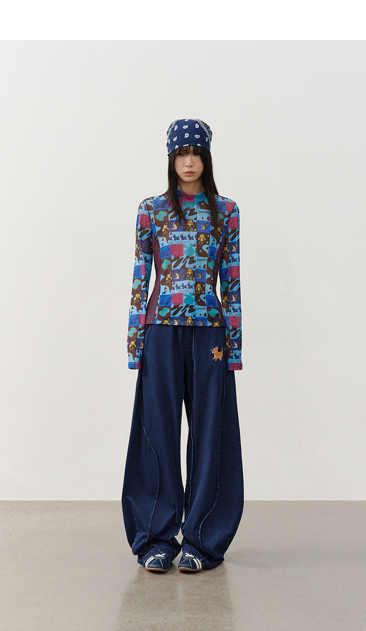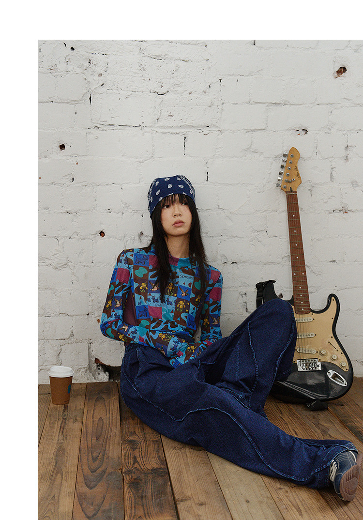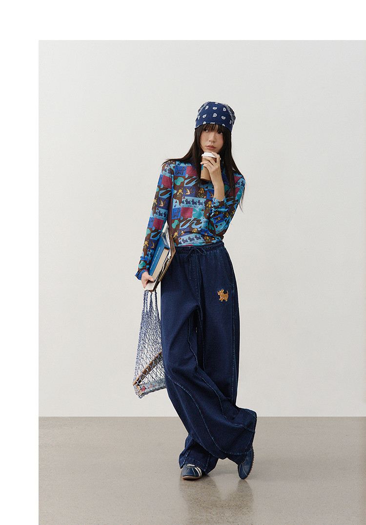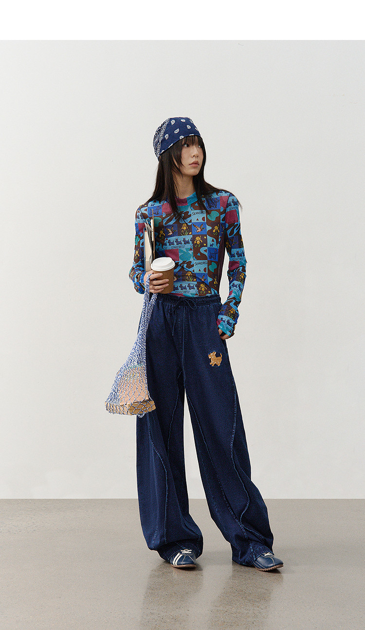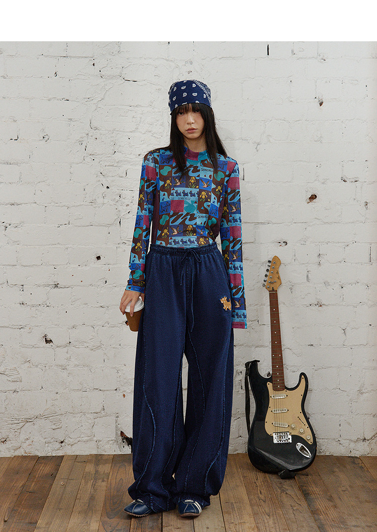SUPERTOFU(SPTF)/新墨洗水牛仔阔身背带裤