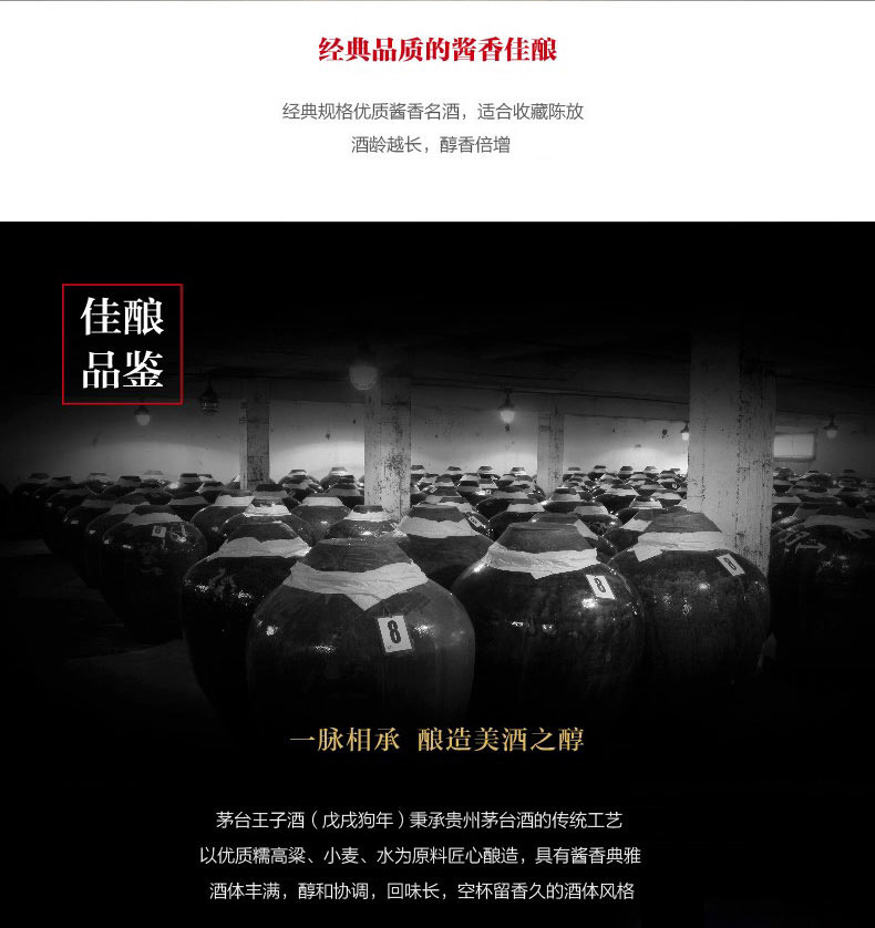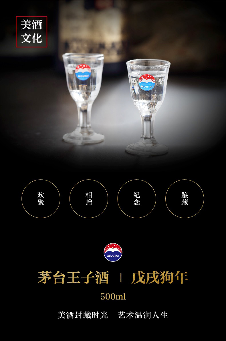 茅台王子生肖纪念酒 53度 酱香型白酒 500ml 2018年份 戊戌狗年