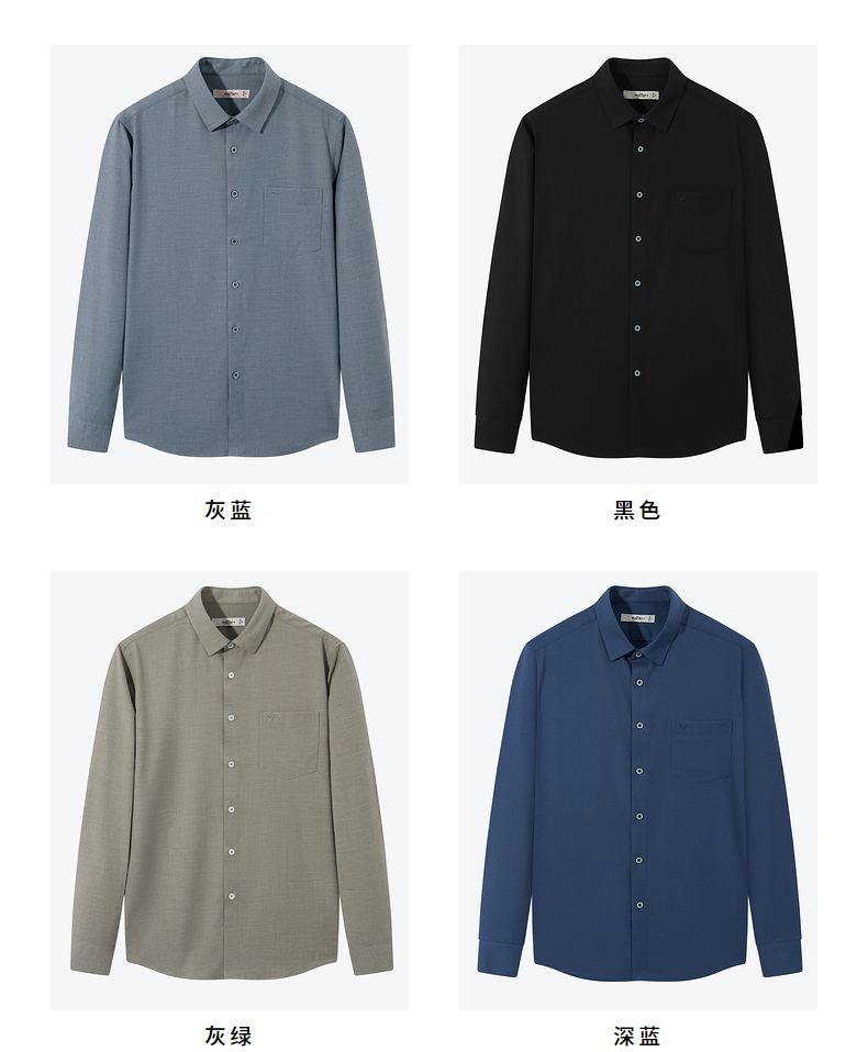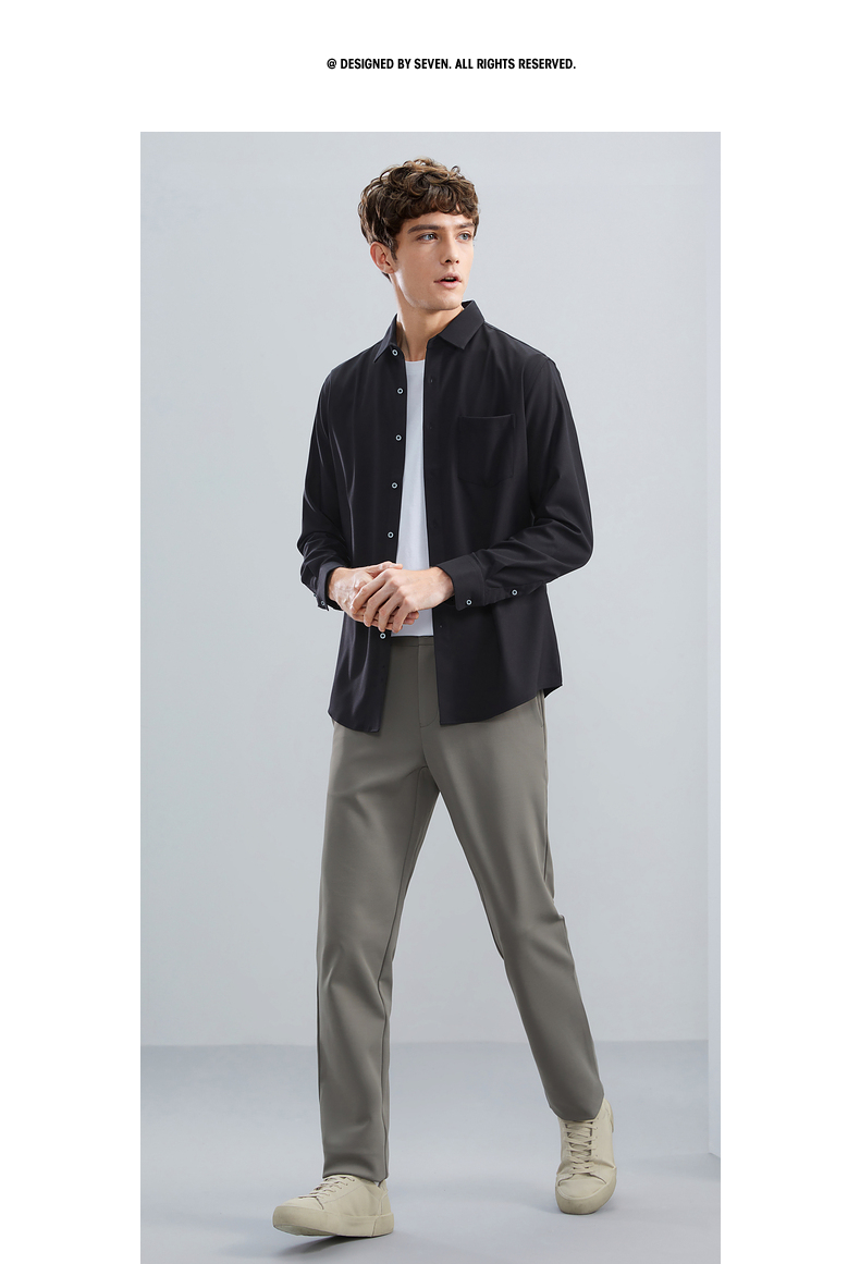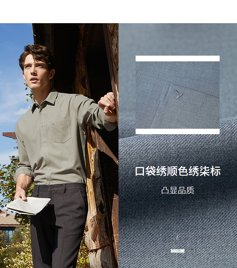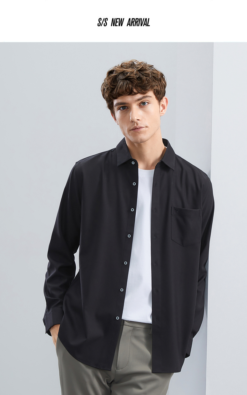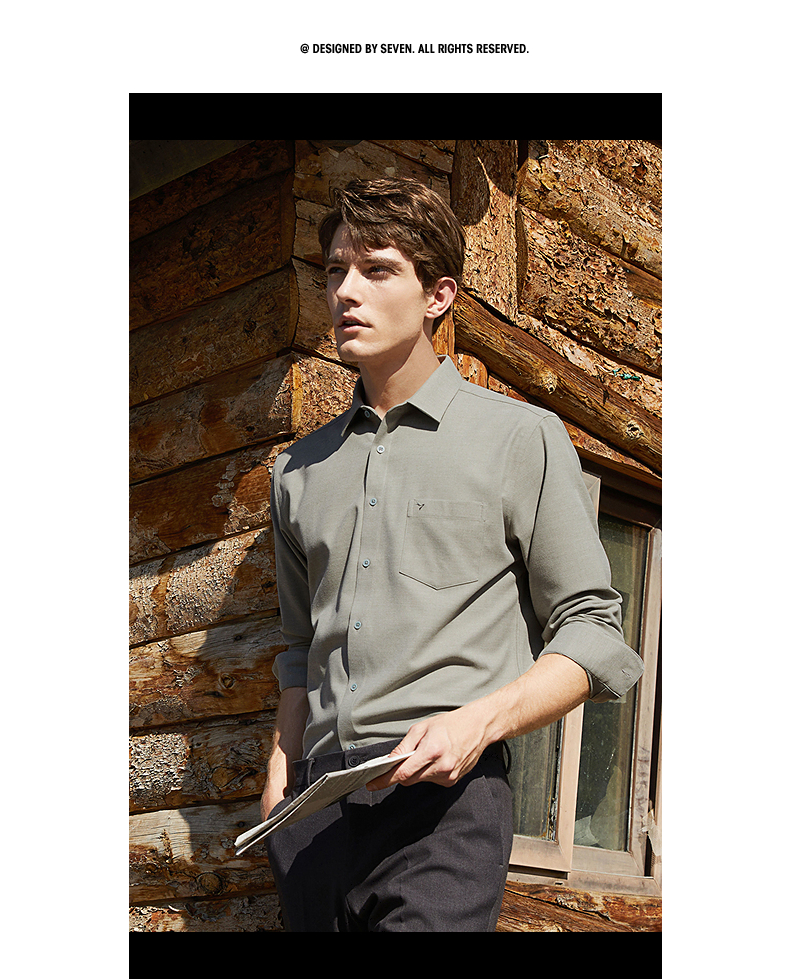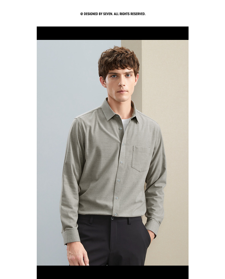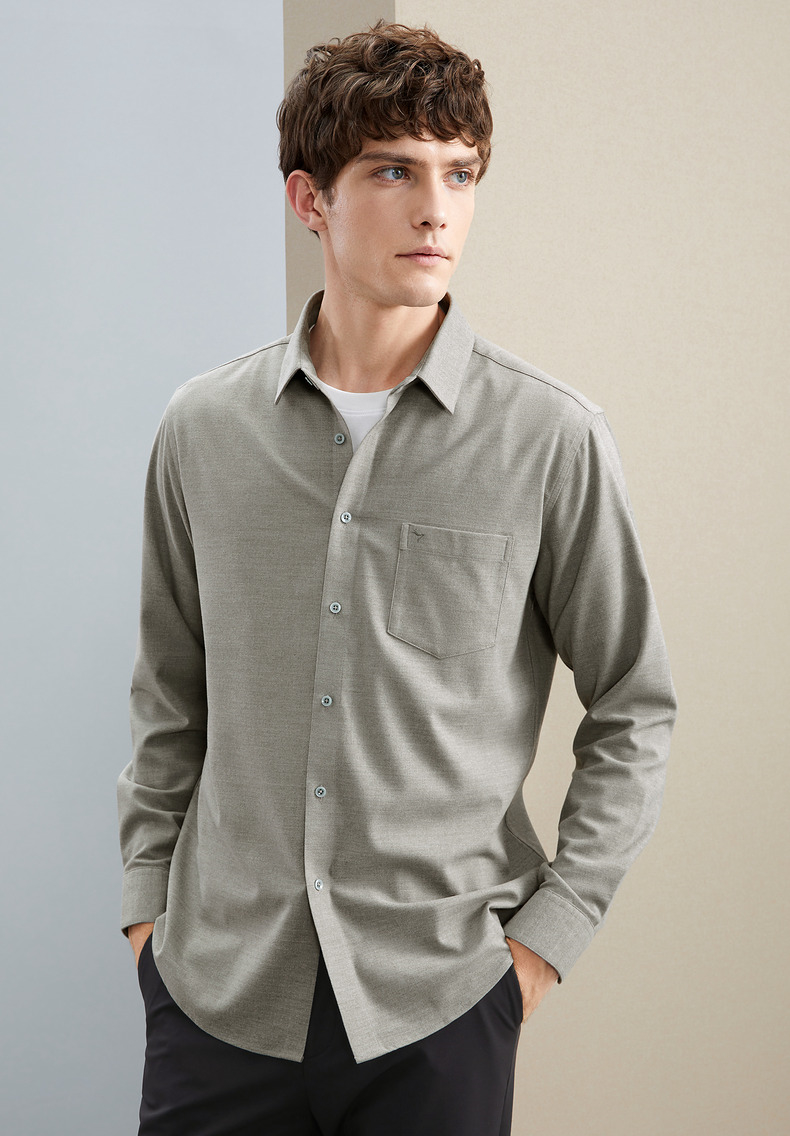 柒牌衬衫男士秋冬新款时尚休闲含莫代尔抗菌保暖翻领口袋长袖衬衣 125A70540