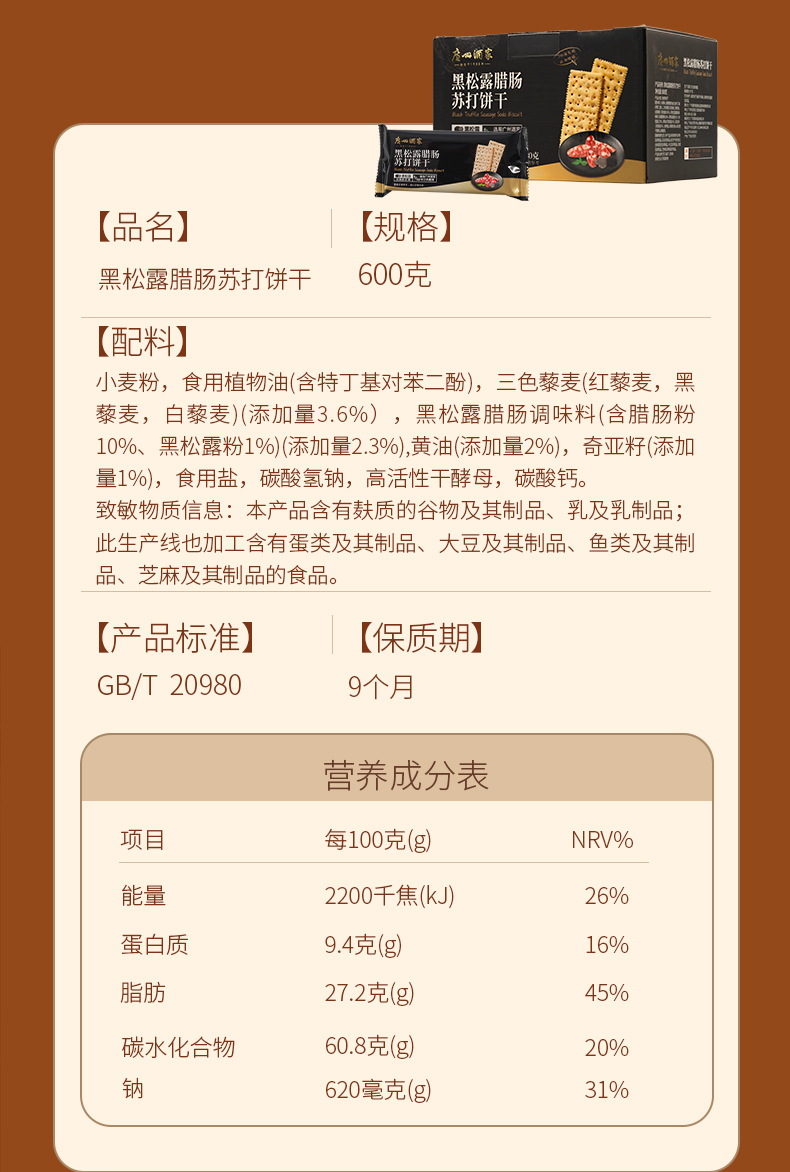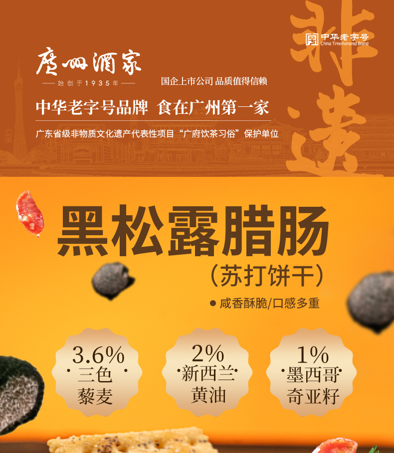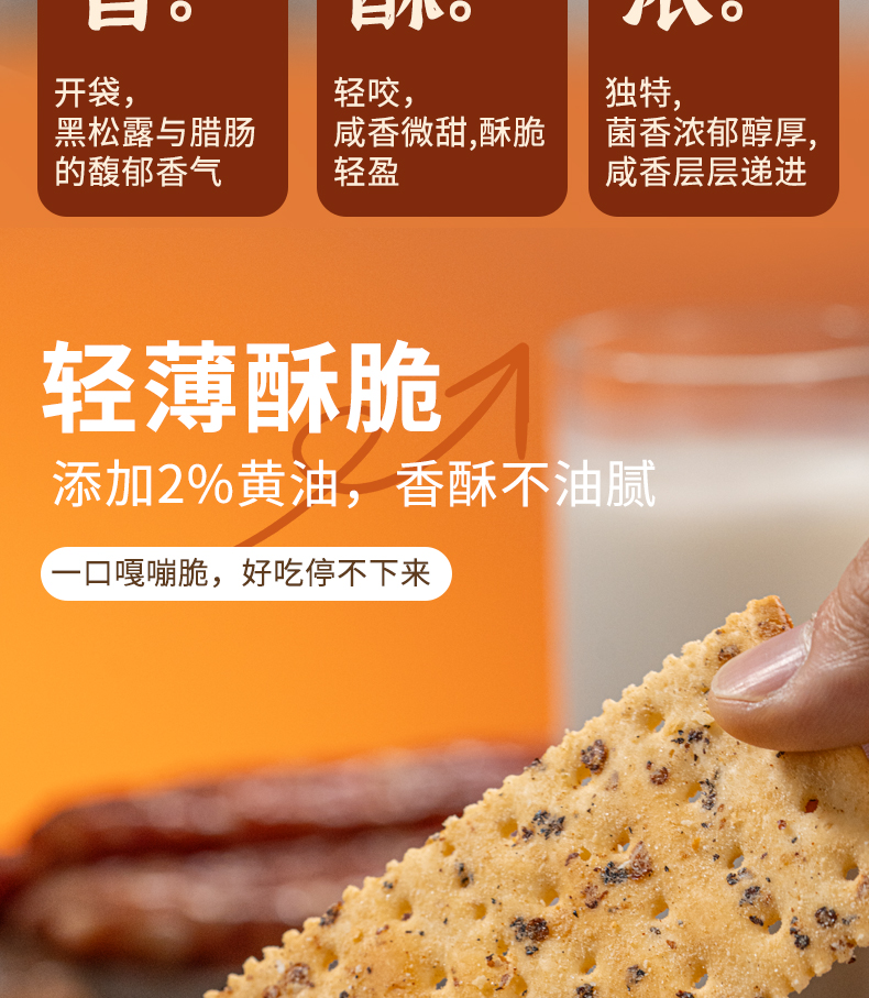 广州酒家 黑松露培根腊肠苏打饼干咸味休闲零食小吃早餐办公室下午茶