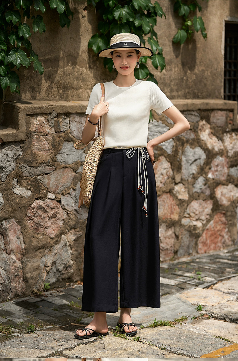 【下单配赠模特同款编织腰带】姹弥Charming·亚麻混纺 | 垂坠透气肌理感 直筒阔腿 藏肉显瘦文艺百搭高级感休闲裤(爆单3-5天内发货)