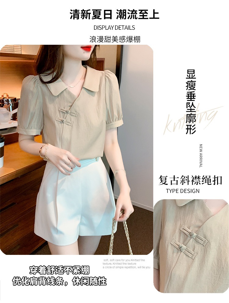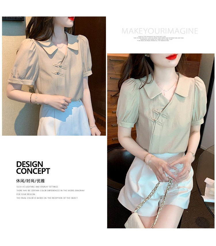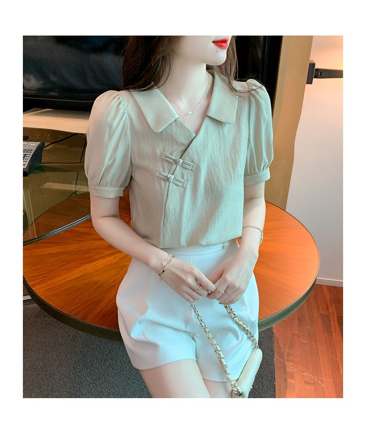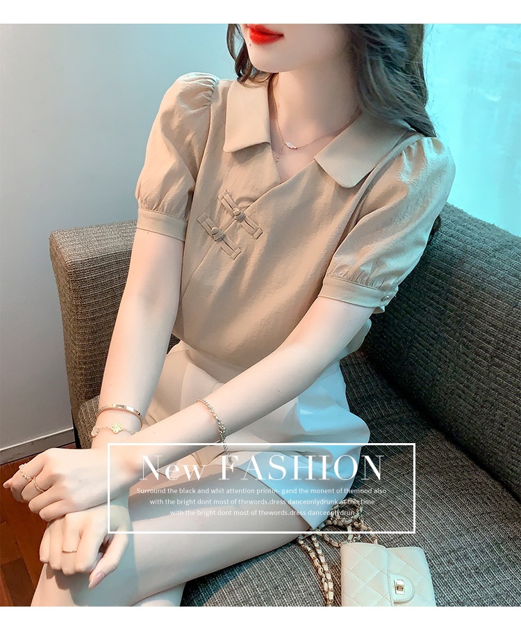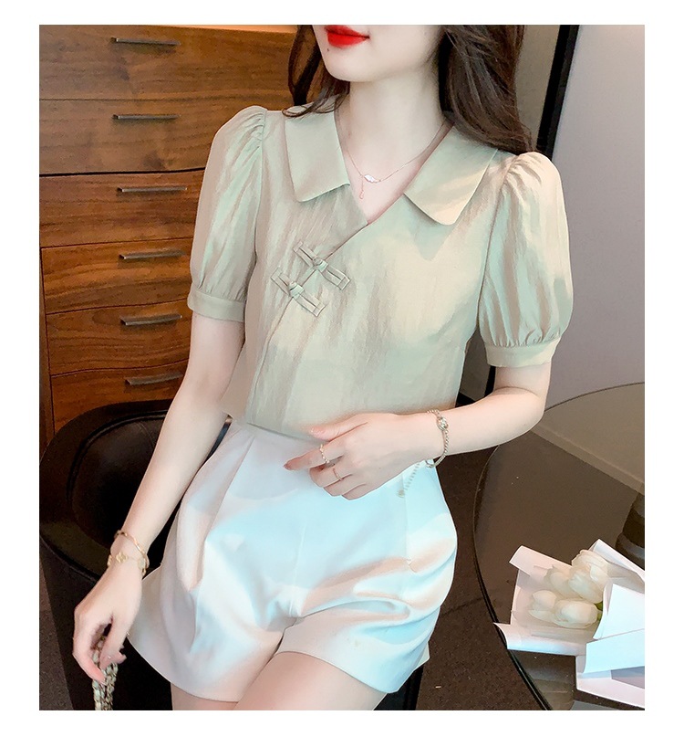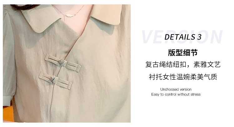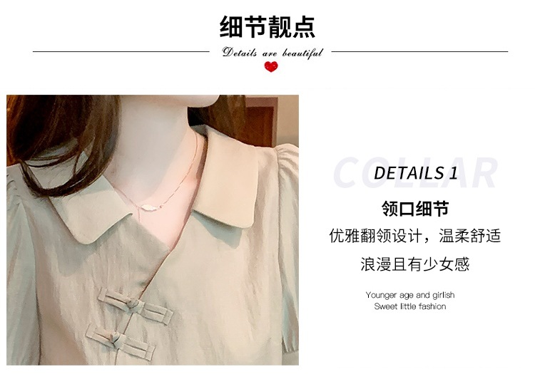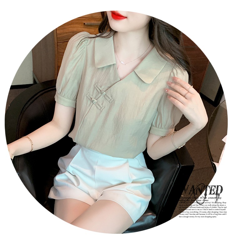 2022年夏款新中式盘扣衬衫女短袖薄款设计感小众翻领衬衣 KQL6179