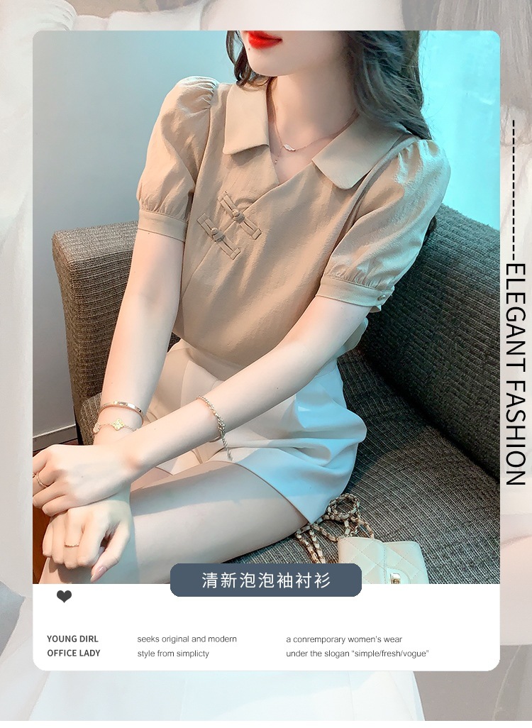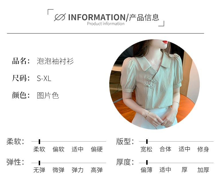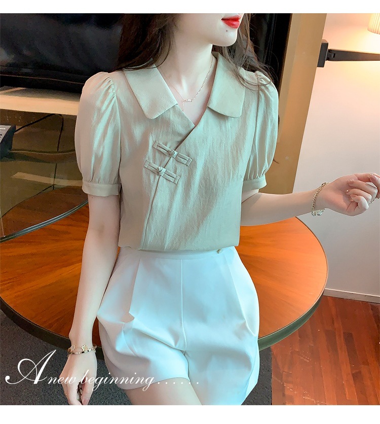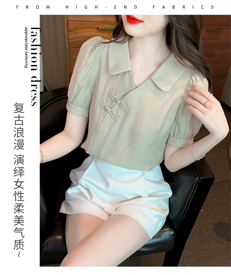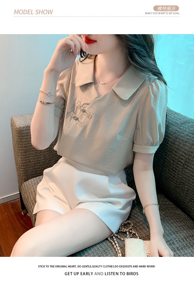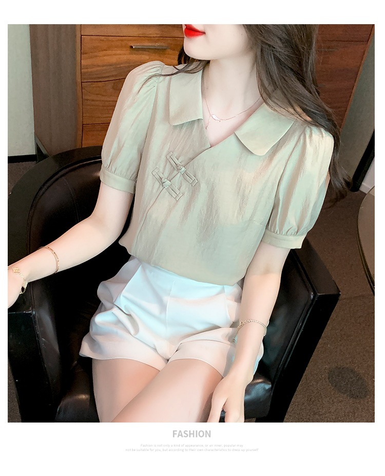 2022年夏款新中式盘扣衬衫女短袖薄款设计感小众翻领衬衣 KQL6179