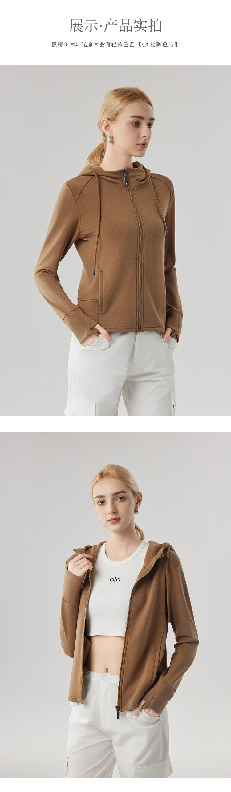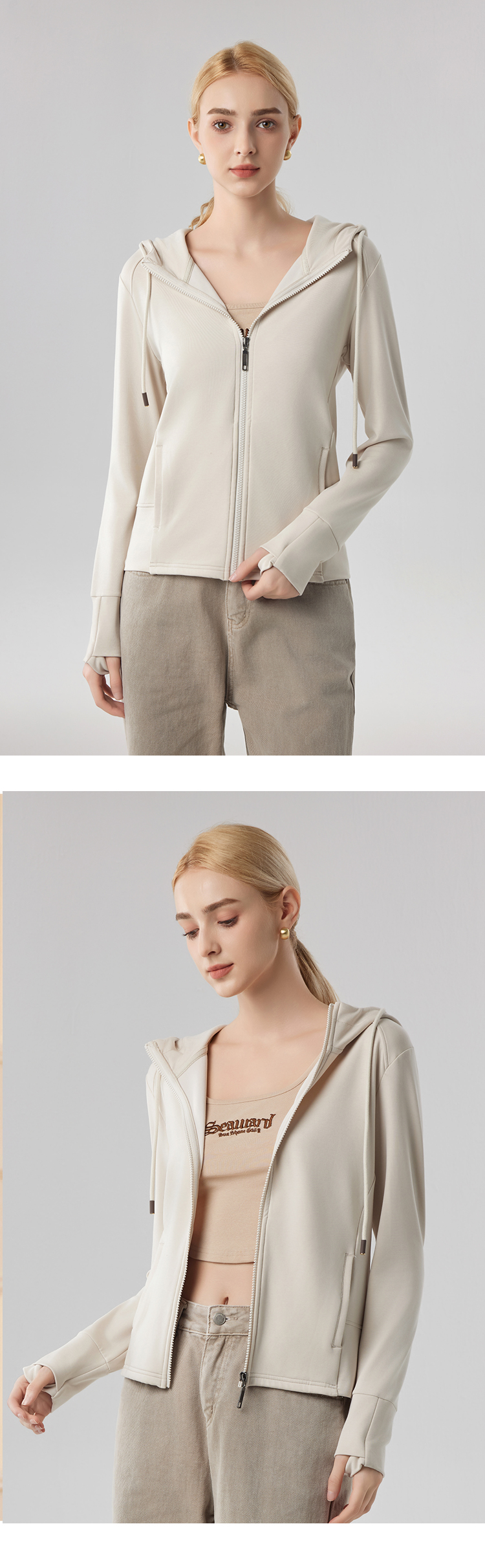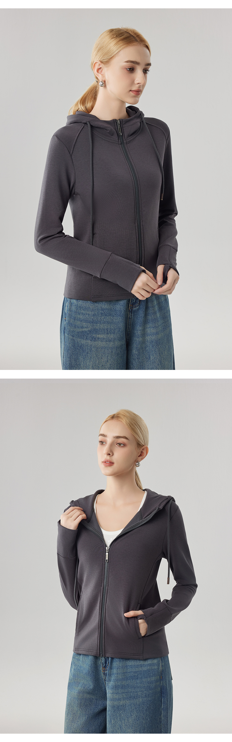 【砂洗空气层系列】女砂洗全拉链帽衫