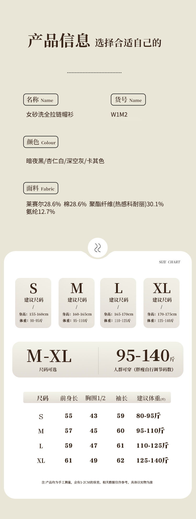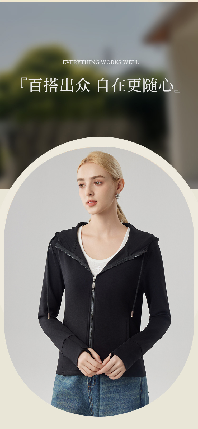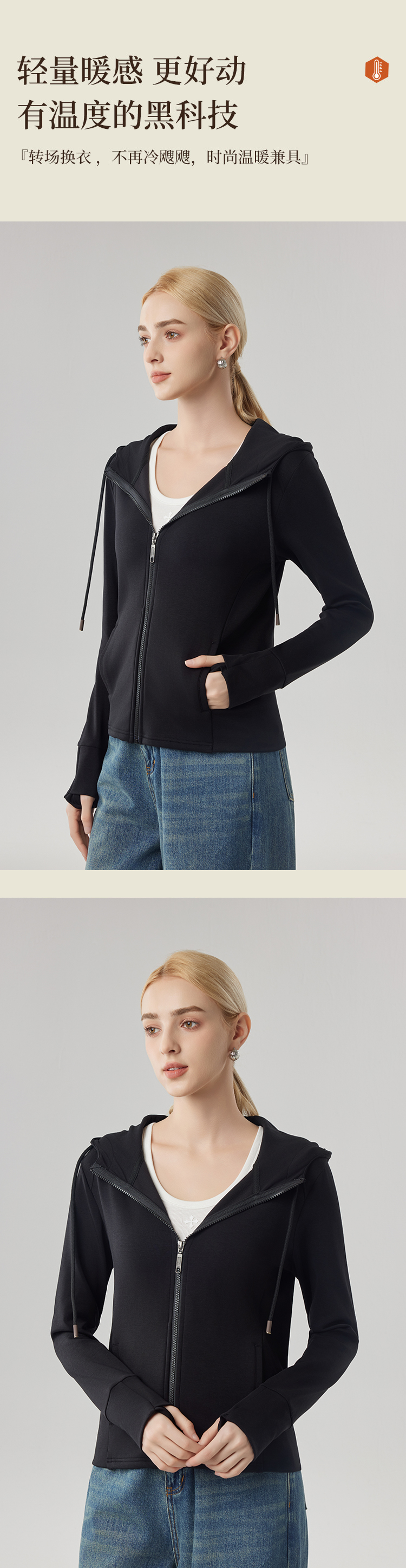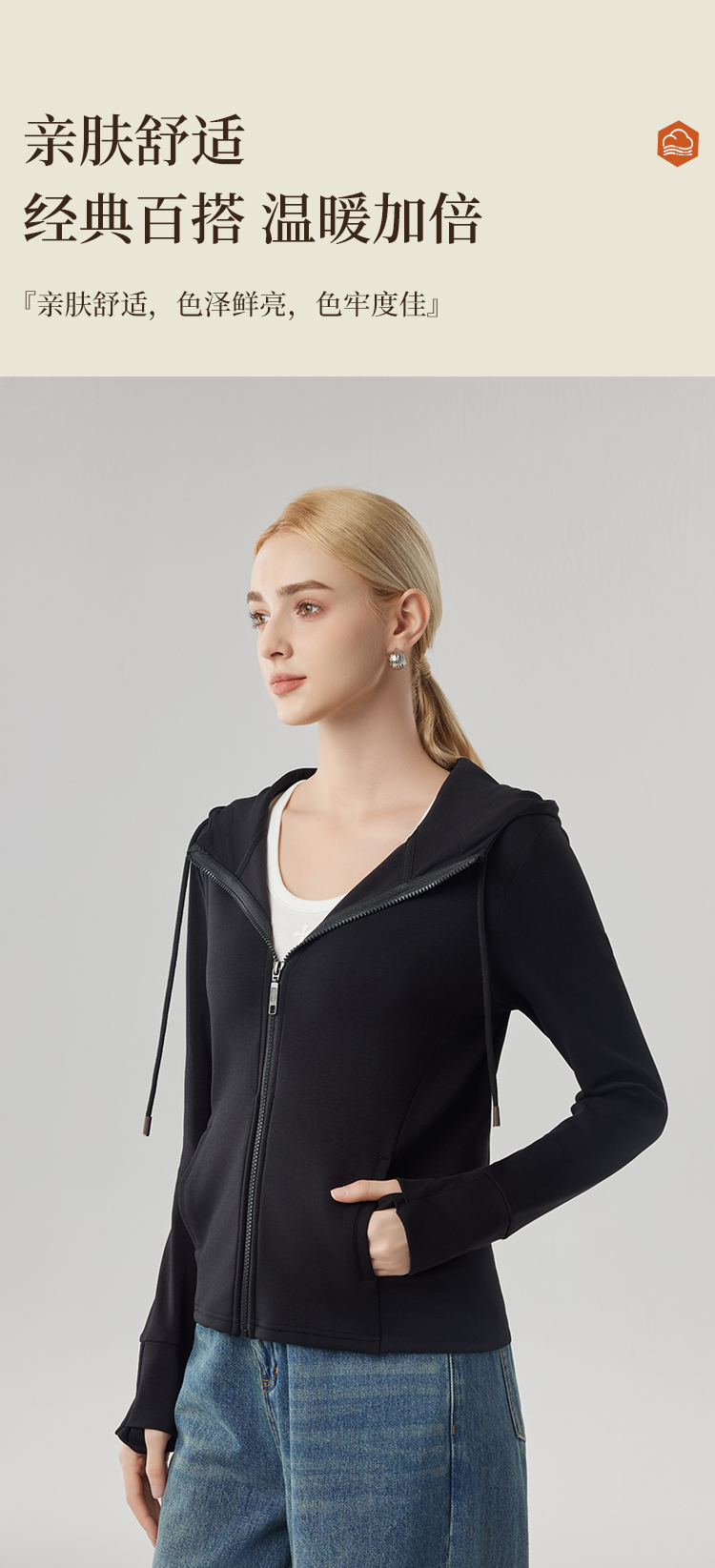 【砂洗空气层系列】女砂洗全拉链帽衫