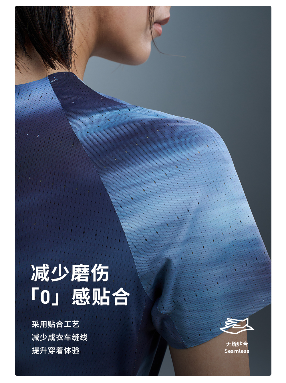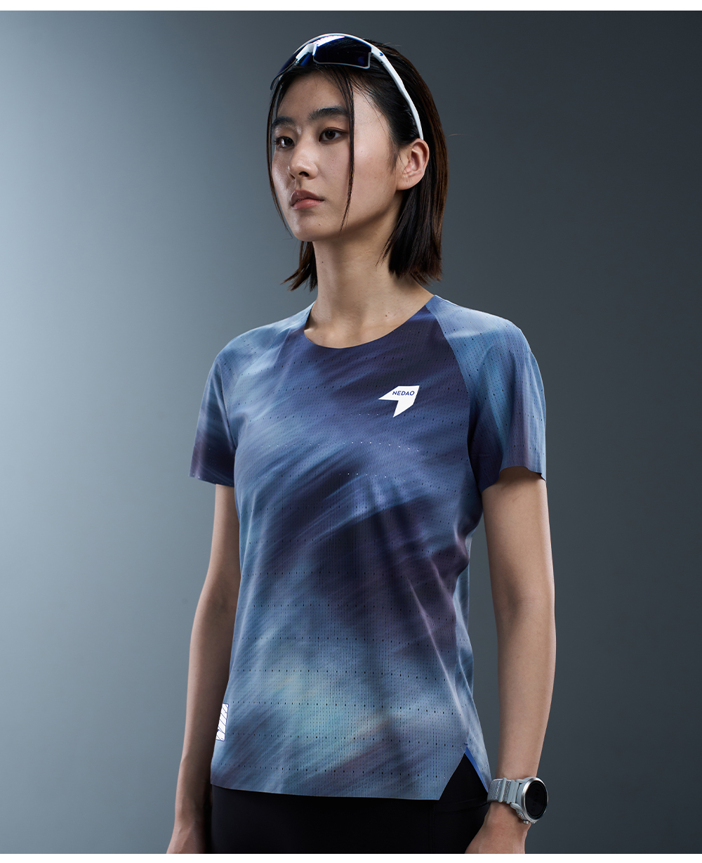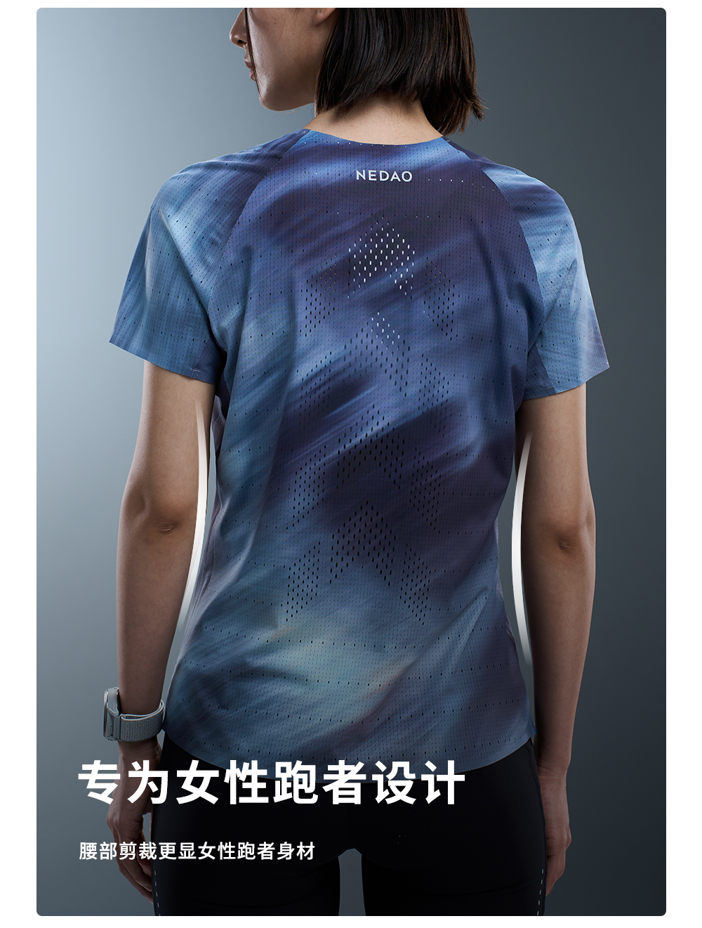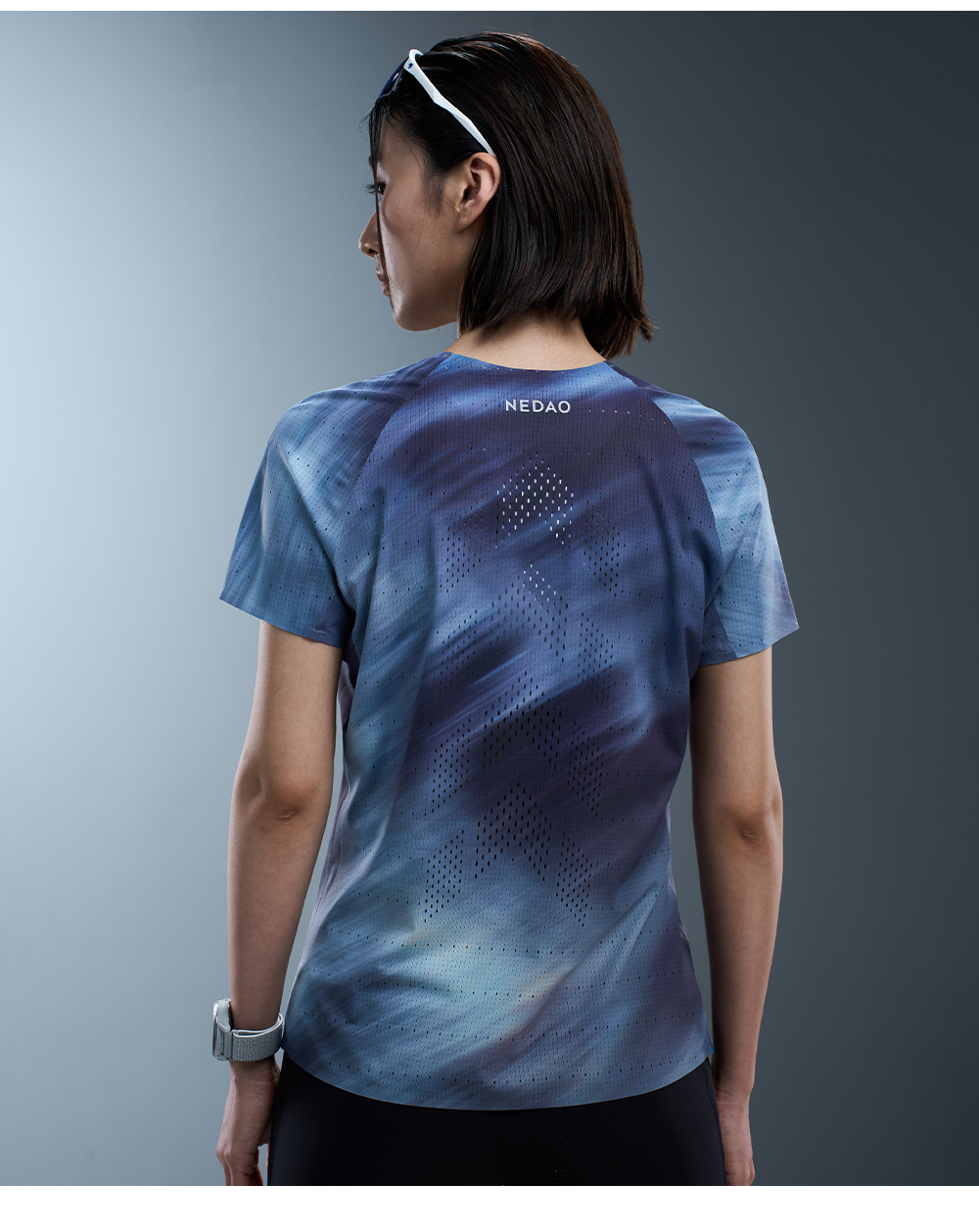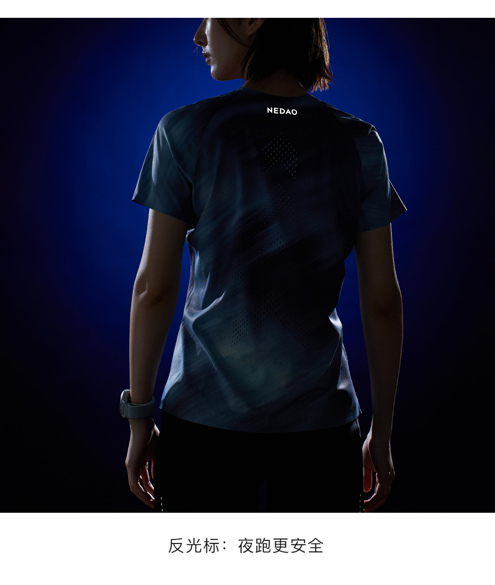 内道极光印花风洞短袖T恤马拉松跑步比赛女款新款透气风洞短袖T