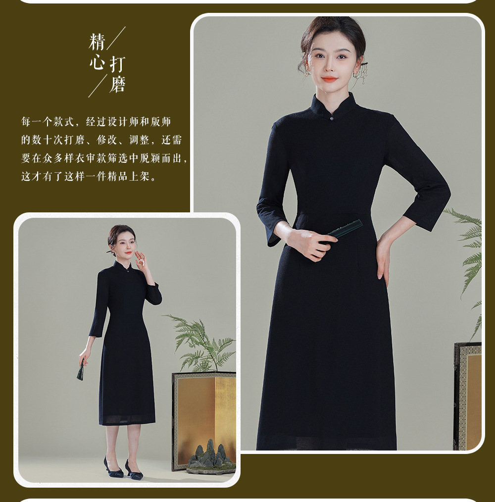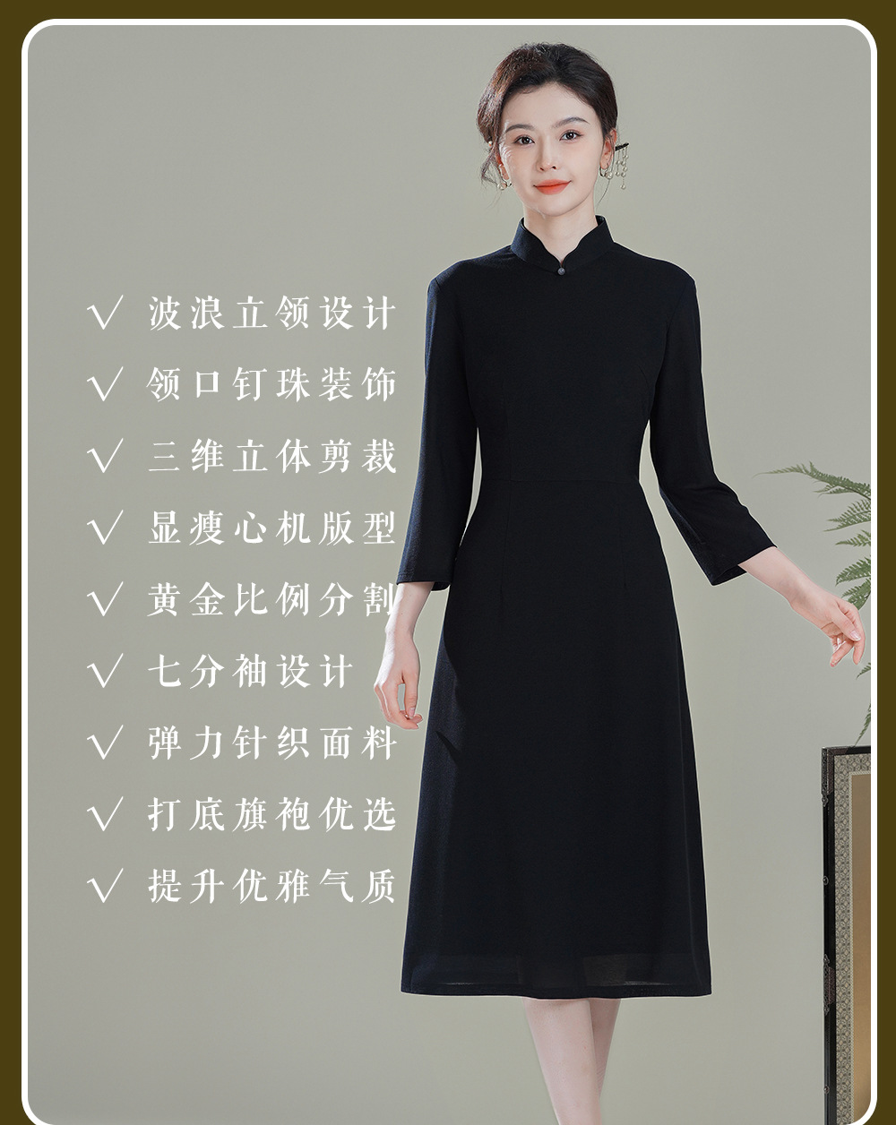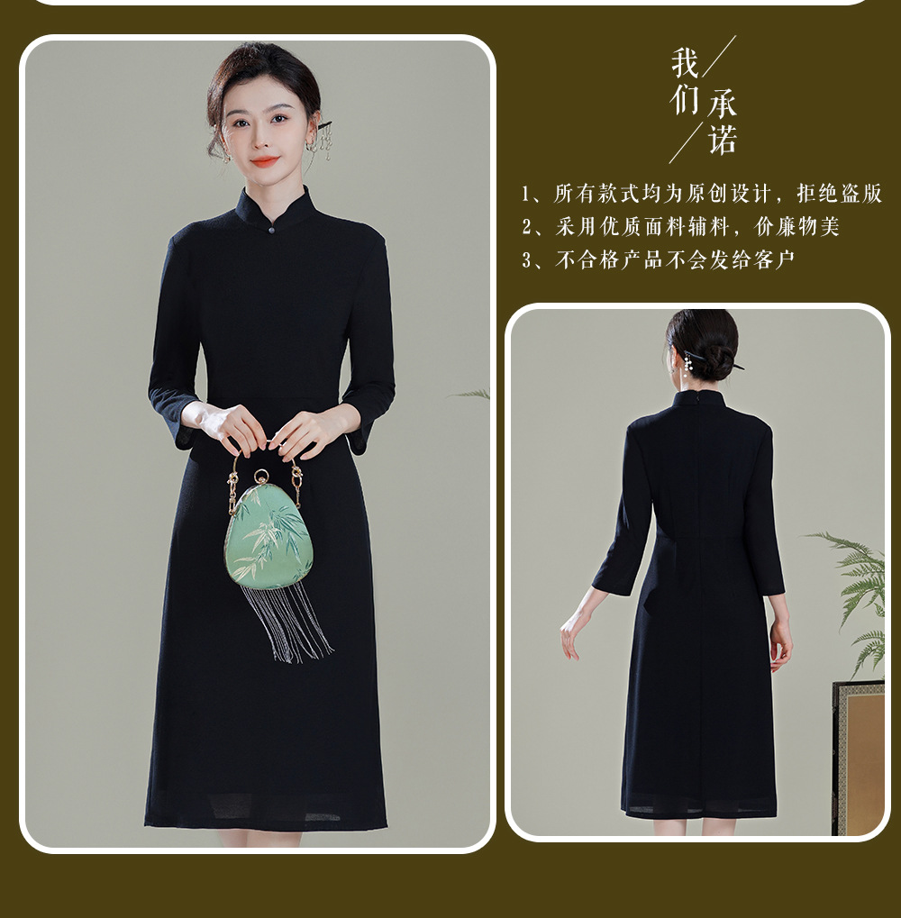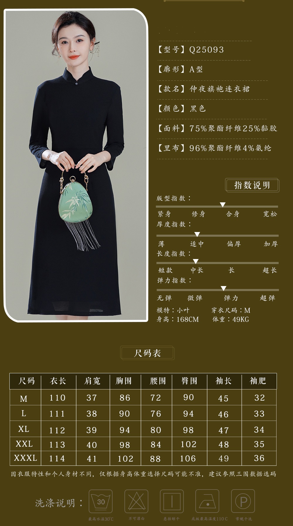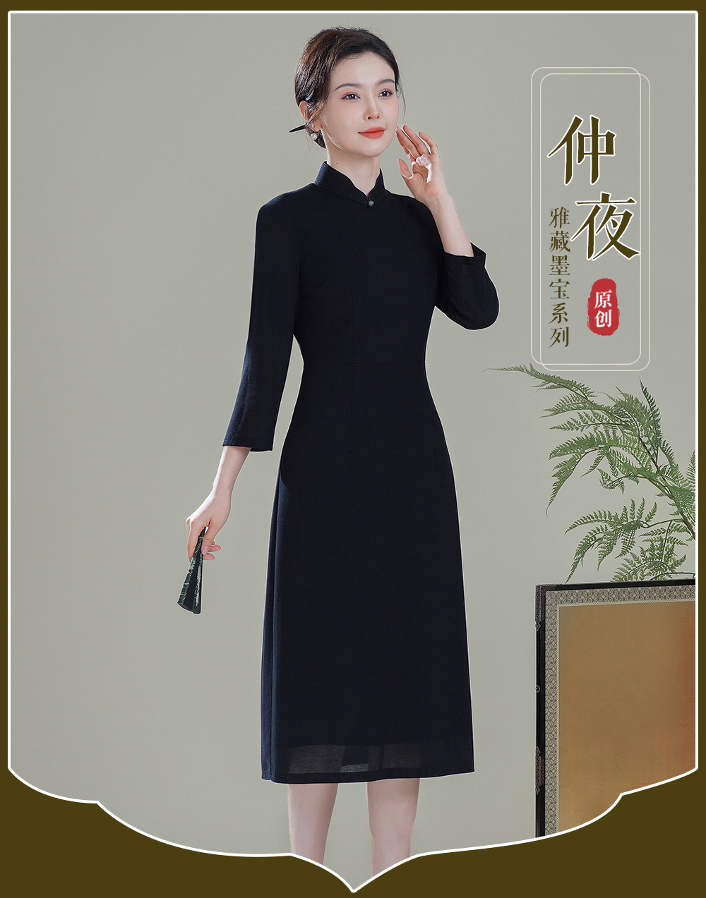 【仲夜】改良中国风中袖,修身日常纯色打底旗袍裙XGT-Q25093