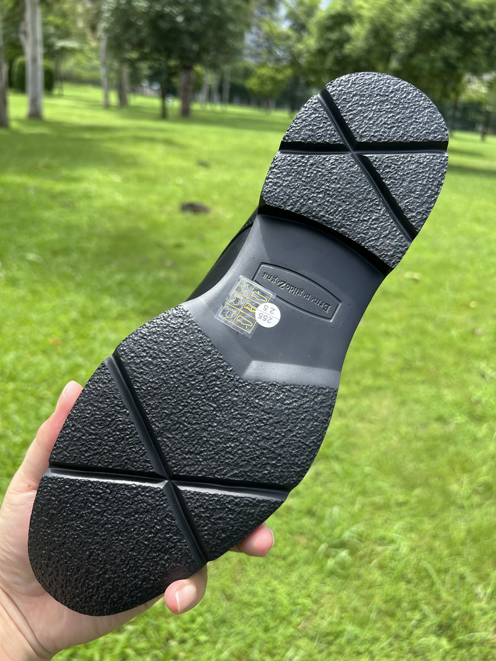 版型和产品细节:小牛皮面料,手工抛双色效果。确保每双鞋都是独一无二存在。三接头设计,小牛皮内裡,垫脚。轻盈的注塑橡胶发泡大底,记忆海绵垫脚。穿着舒适不凡,后跟饰有缝线,更显匠心十足。