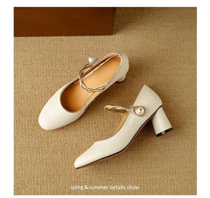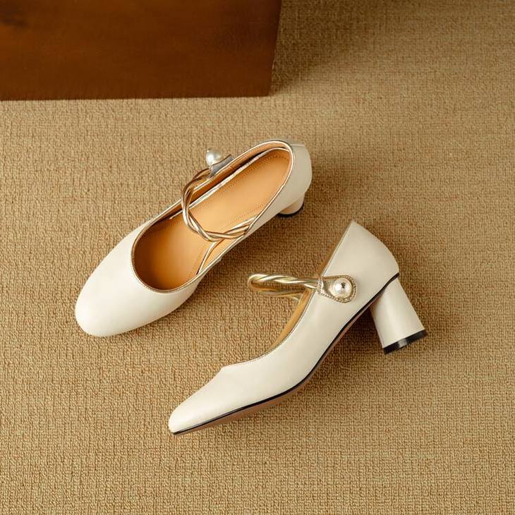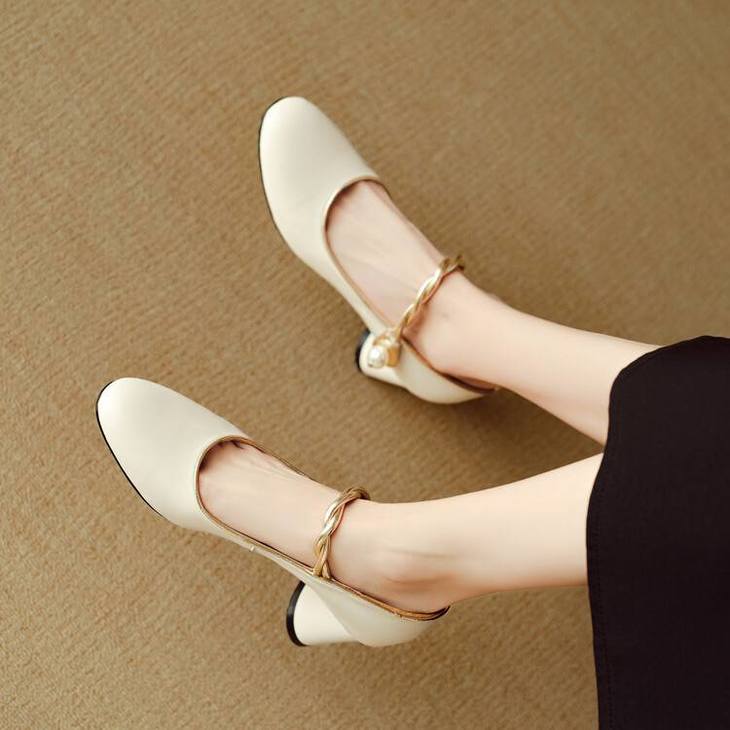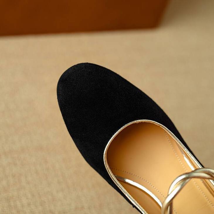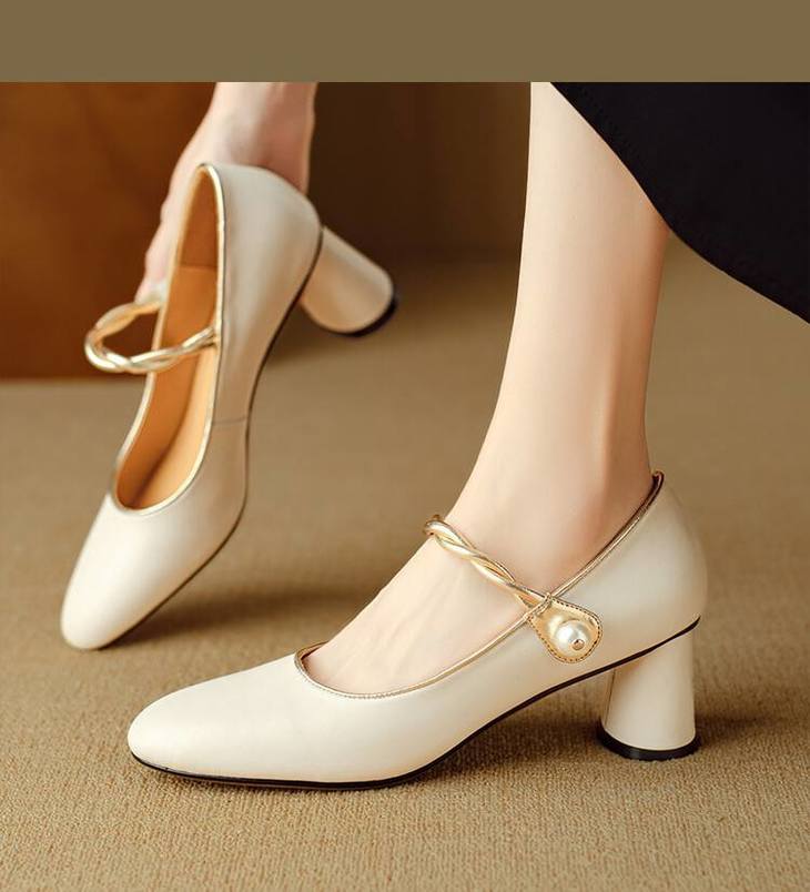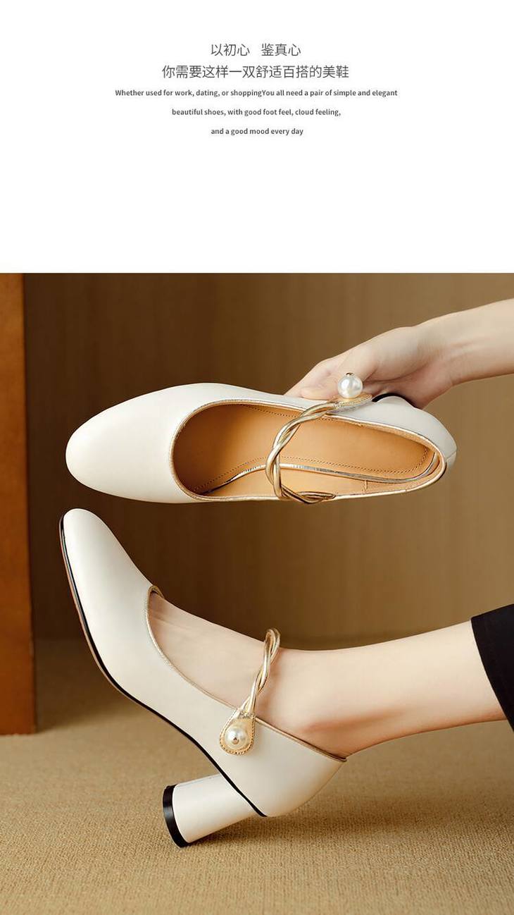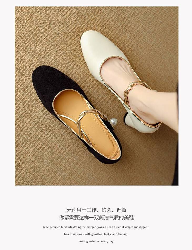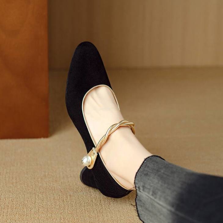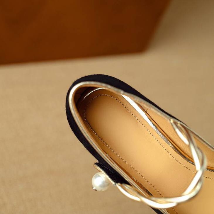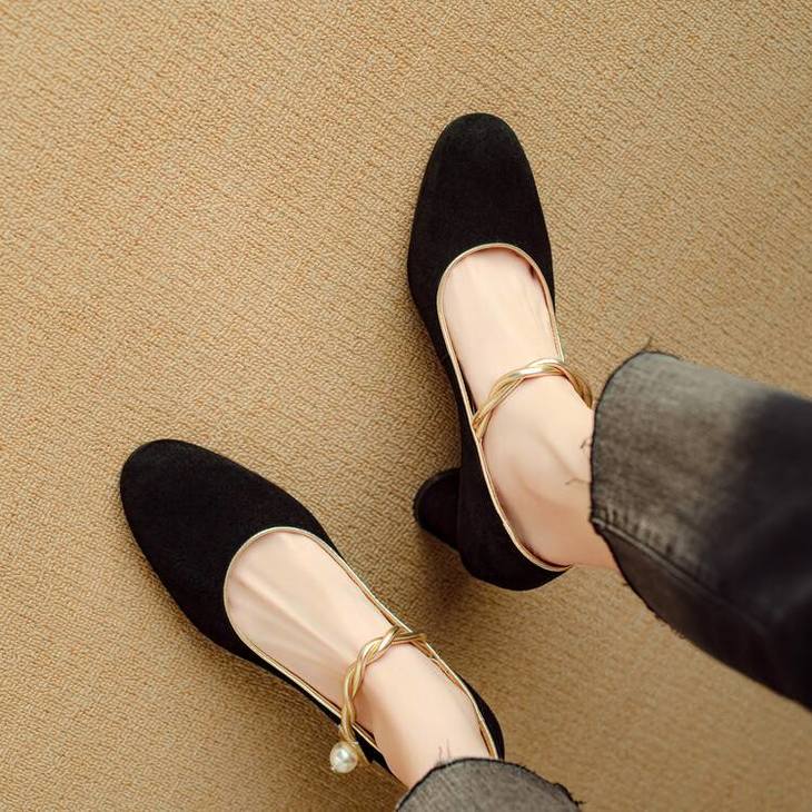 【预售5天】赫本风气质高跟鞋新品黑色羊翻皮粗跟珍珠一字带浅口玛丽珍女鞋DB&M5998