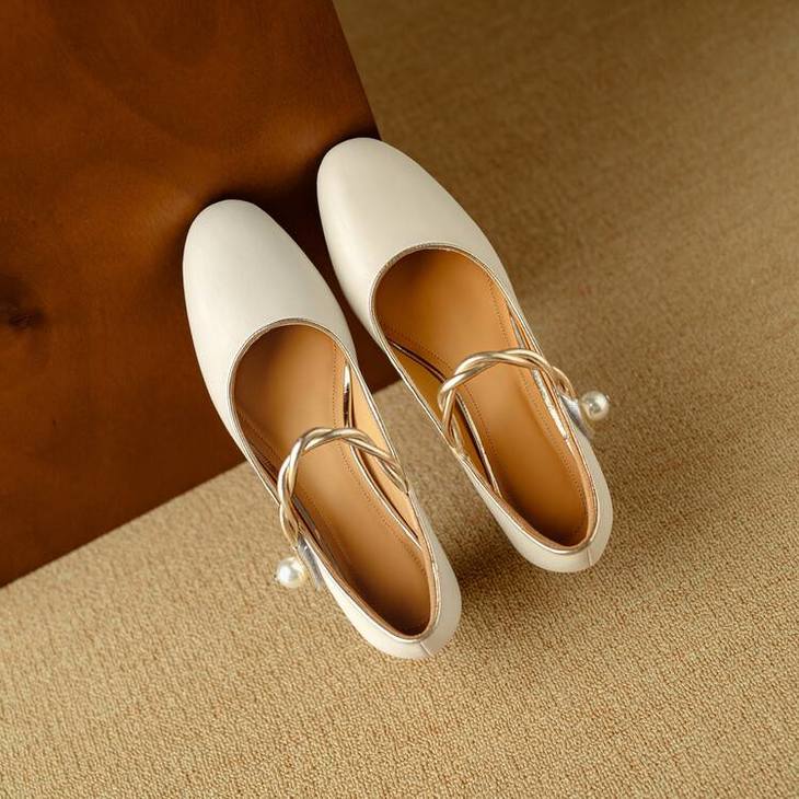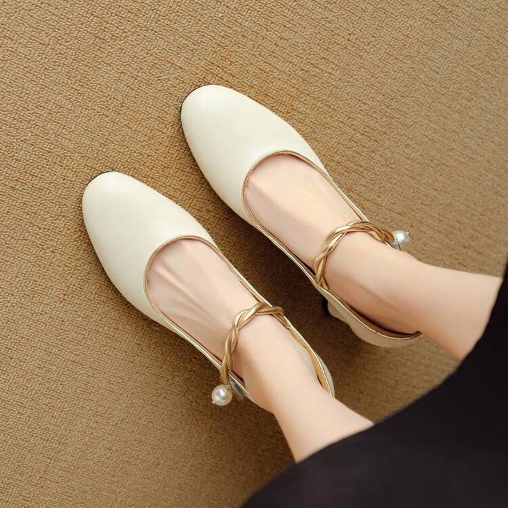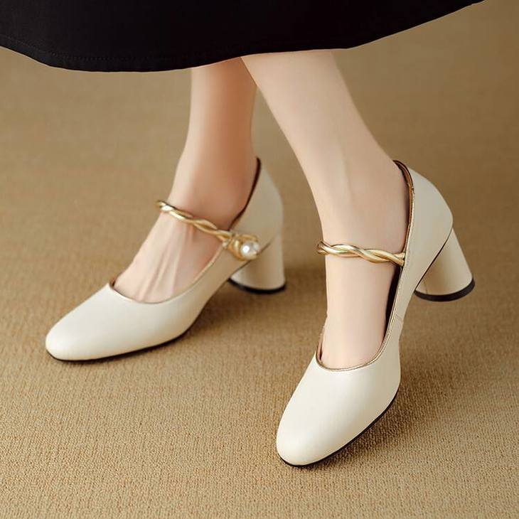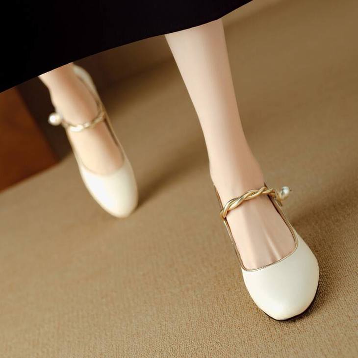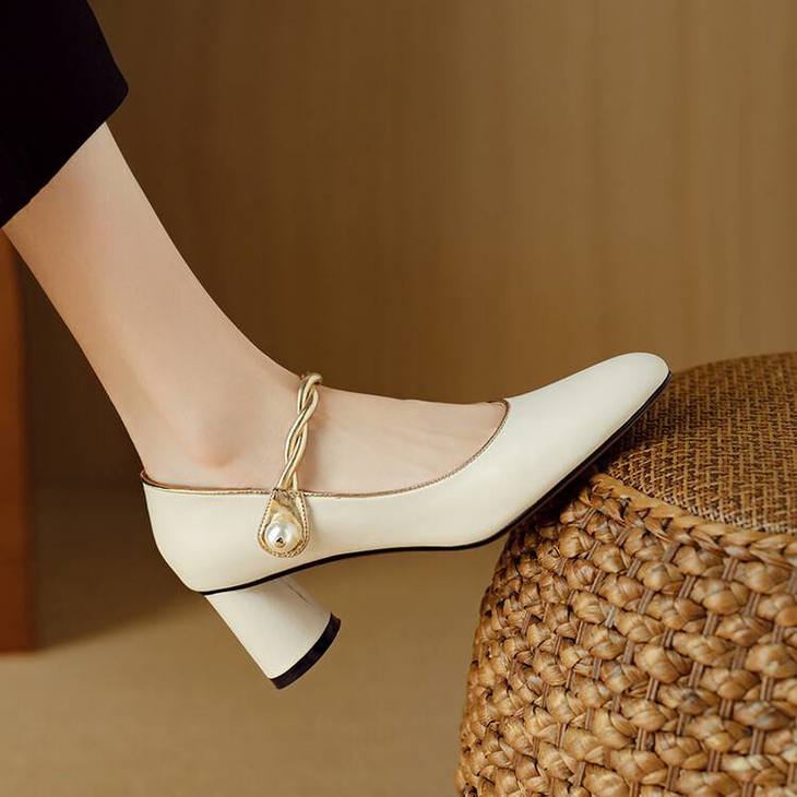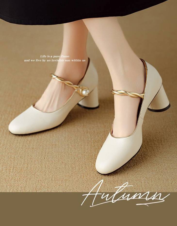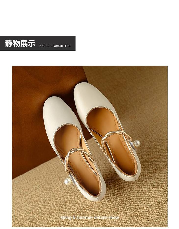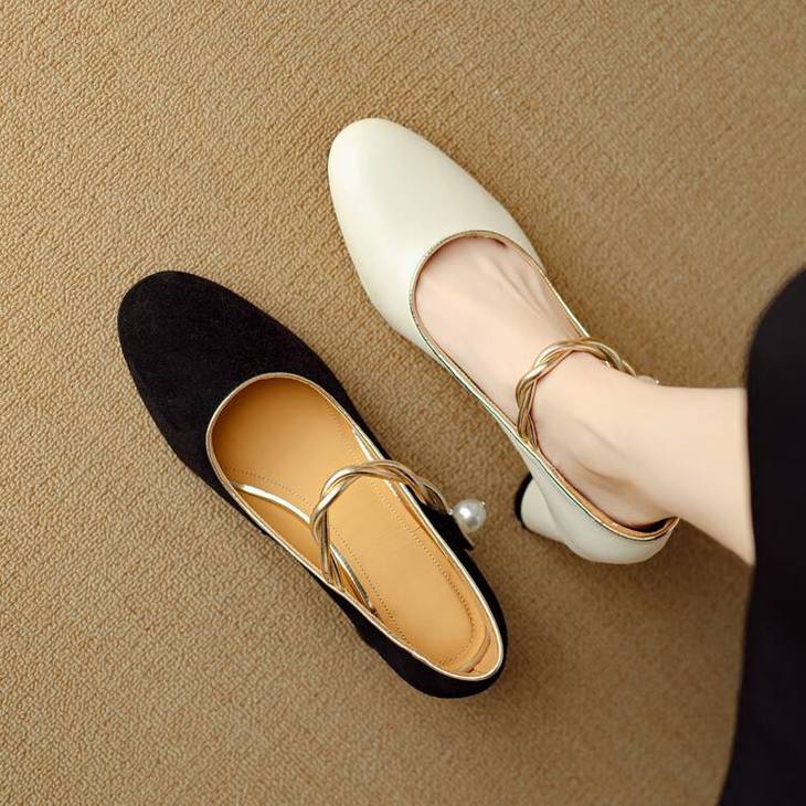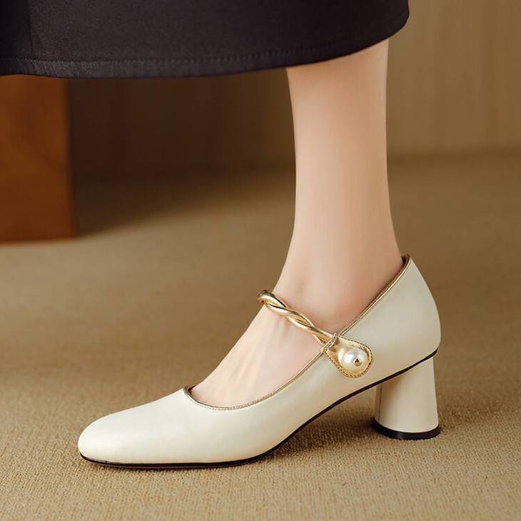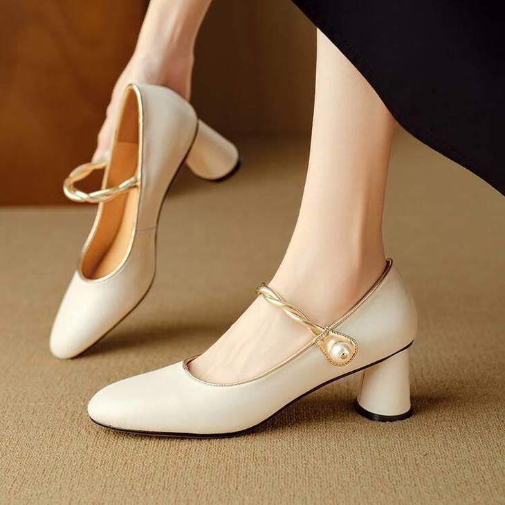 【预售5天】赫本风气质高跟鞋新品黑色羊翻皮粗跟珍珠一字带浅口玛丽珍女鞋DB&M5998