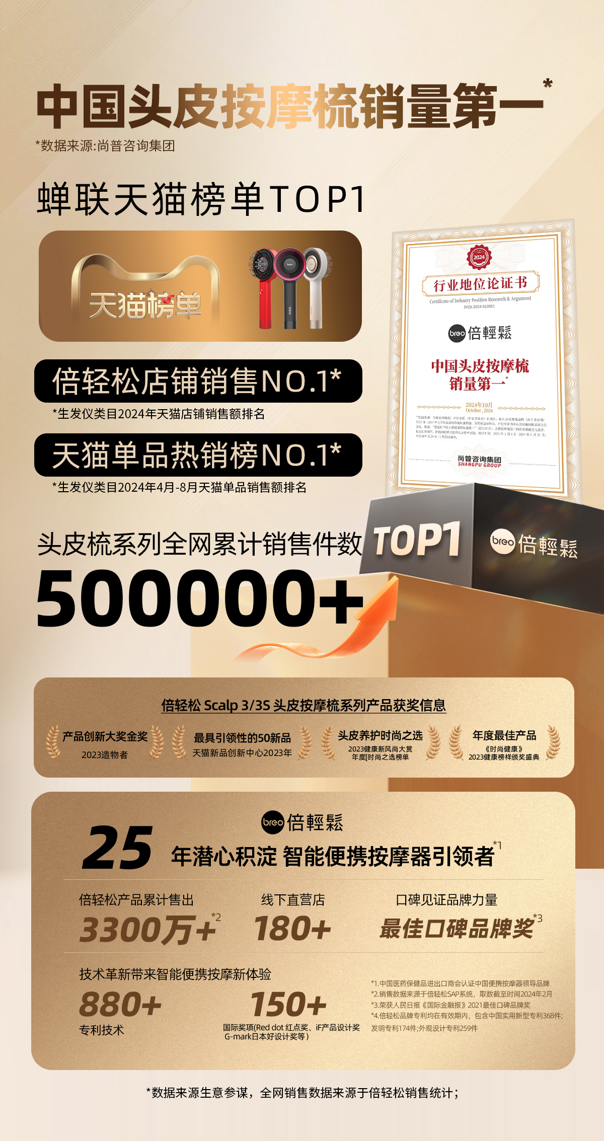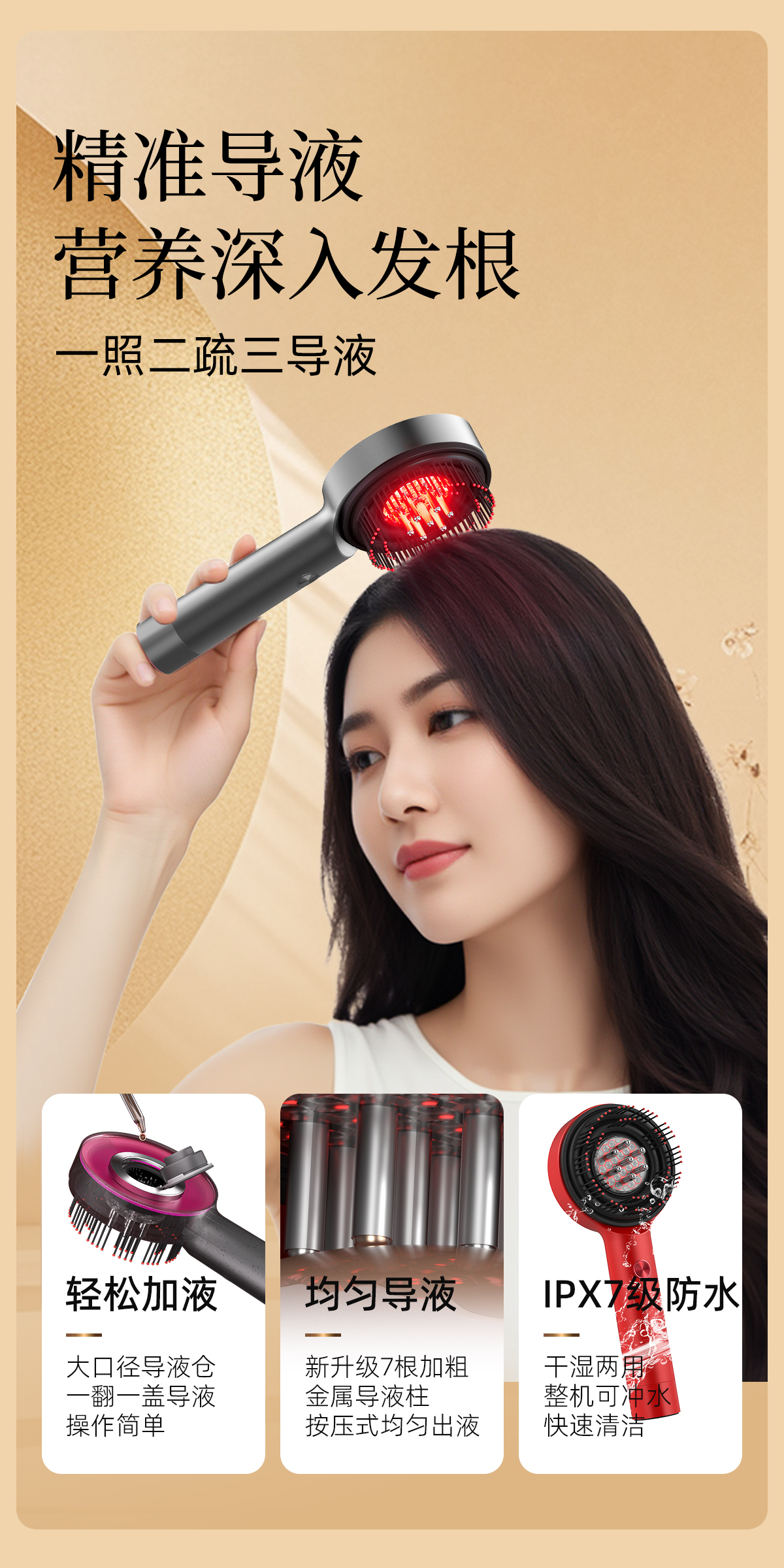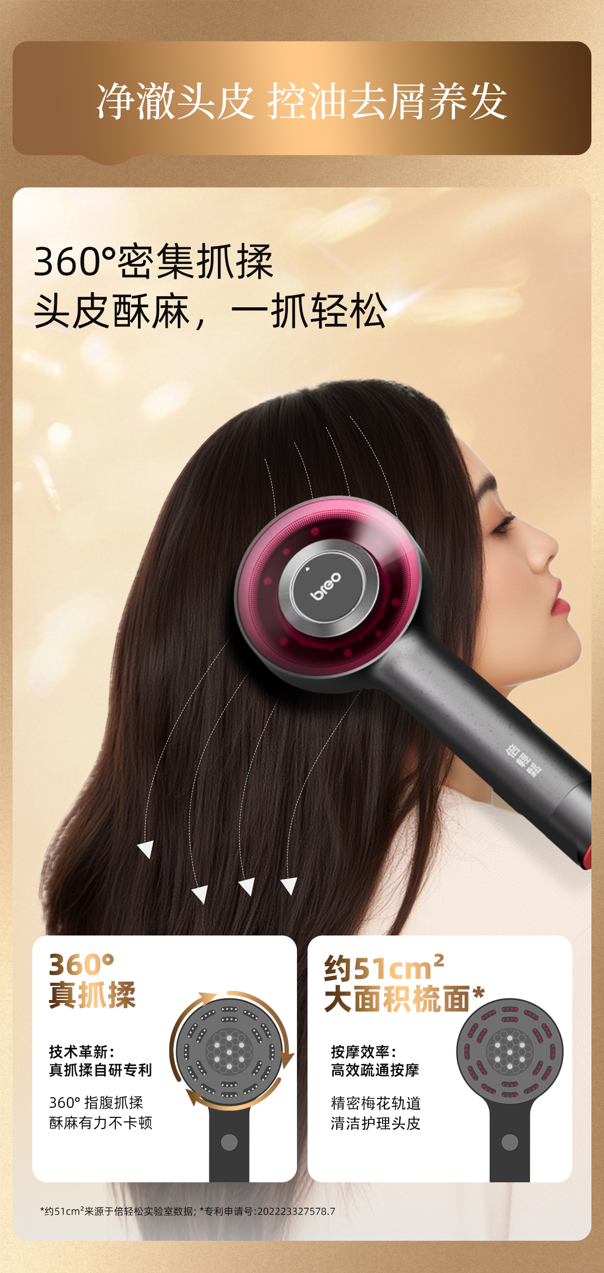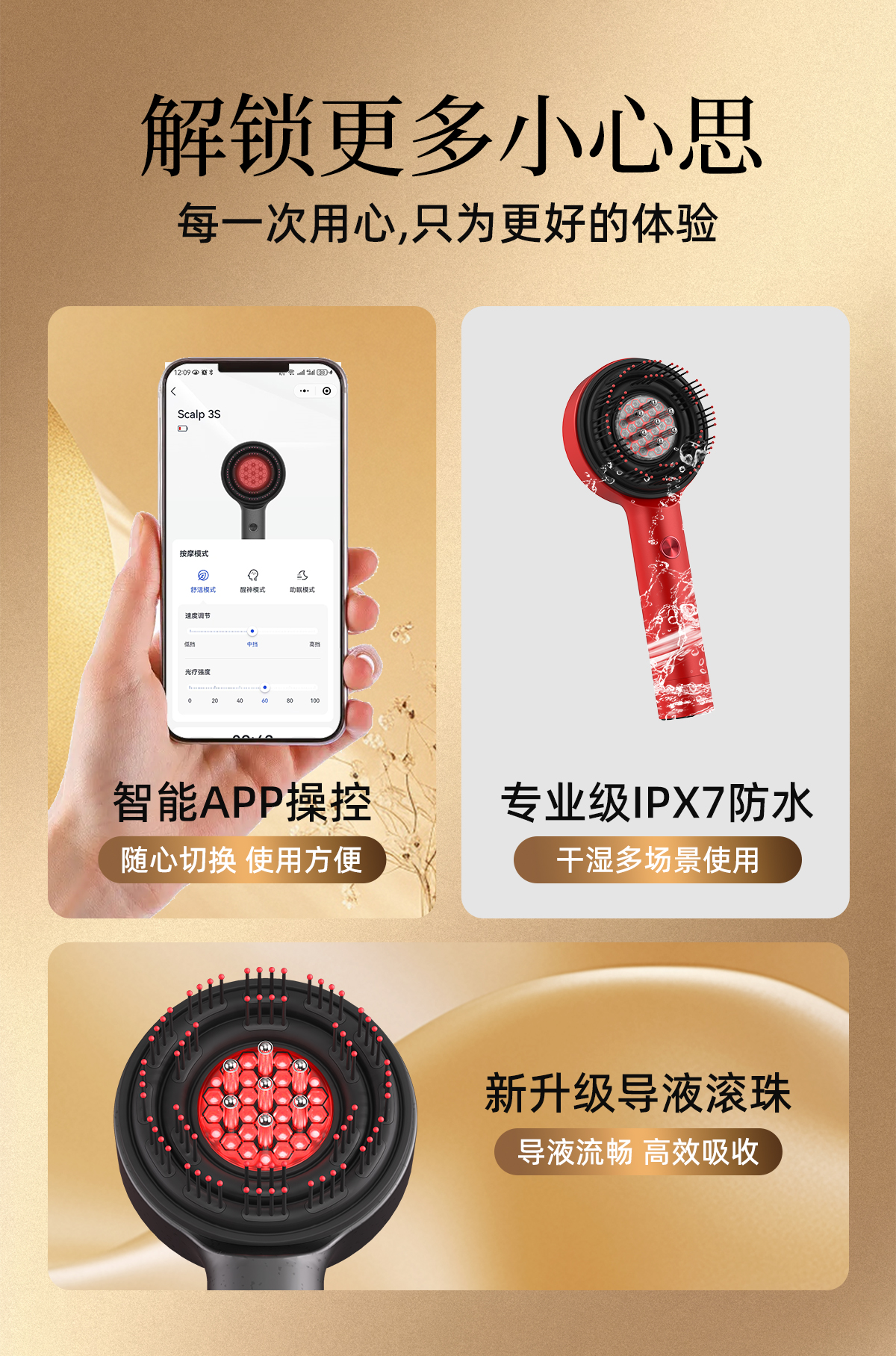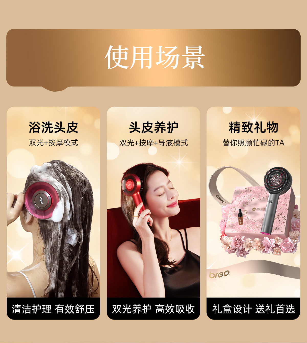 breo倍轻松头皮按摩仪升级版二代scalp3s 鎏金礼盒按摩导液红光三效合一
