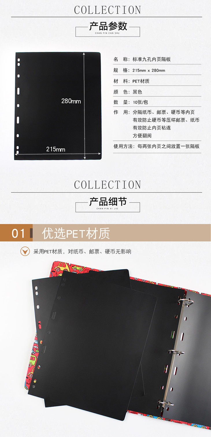标准九孔内页隔页(内页隔板)(含10张)