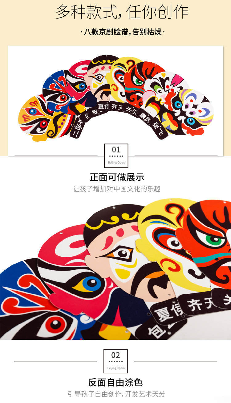 新年春节儿童元旦京剧脸谱幼儿国粹表演手工DIY中国风自制小挂饰