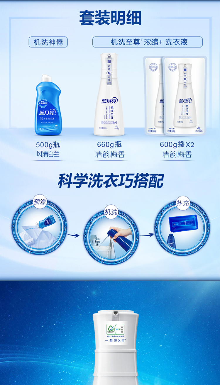 蓝月亮 至尊浓缩洗衣液4件套礼盒装 泵头式 清韵梅香味 660g瓶+600g补充装×2+500g预涂神器