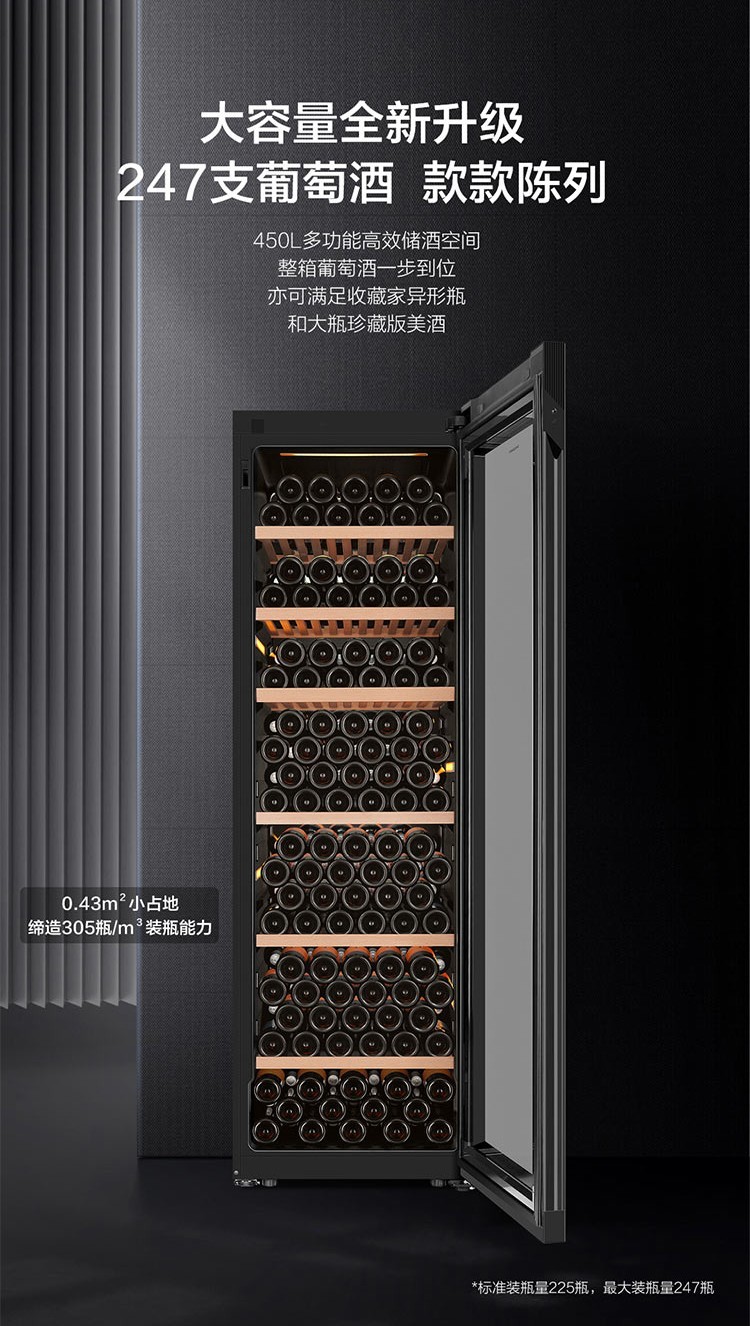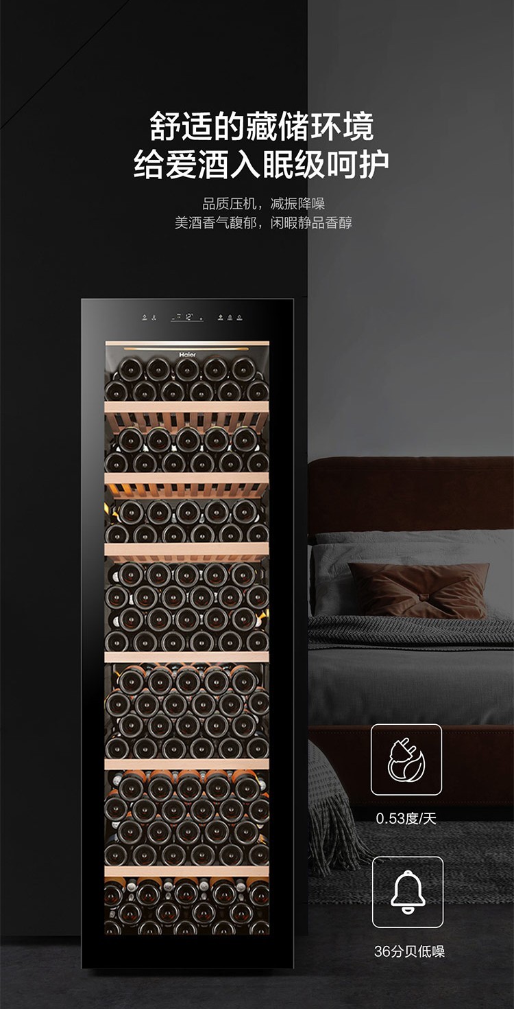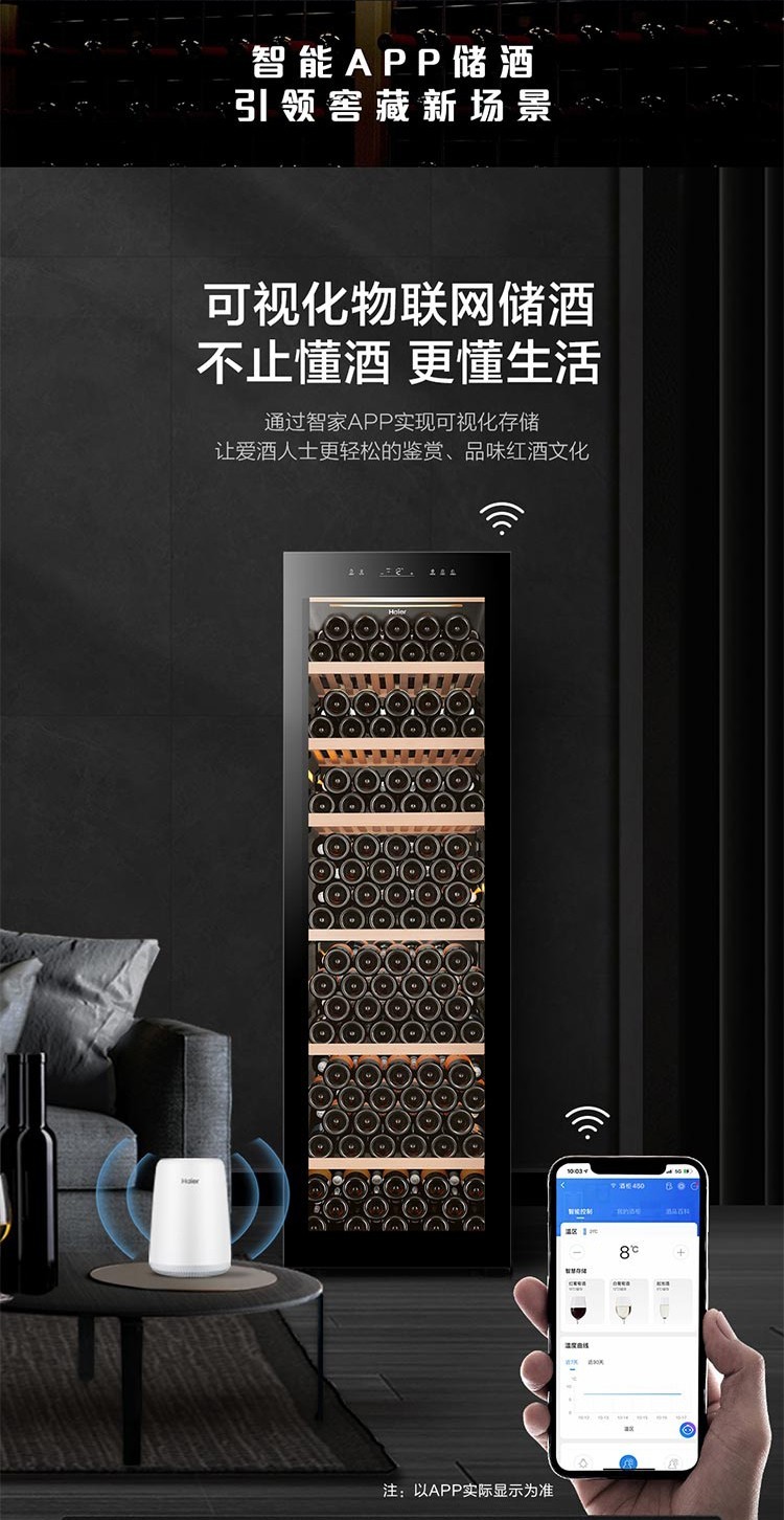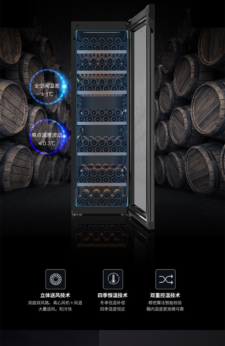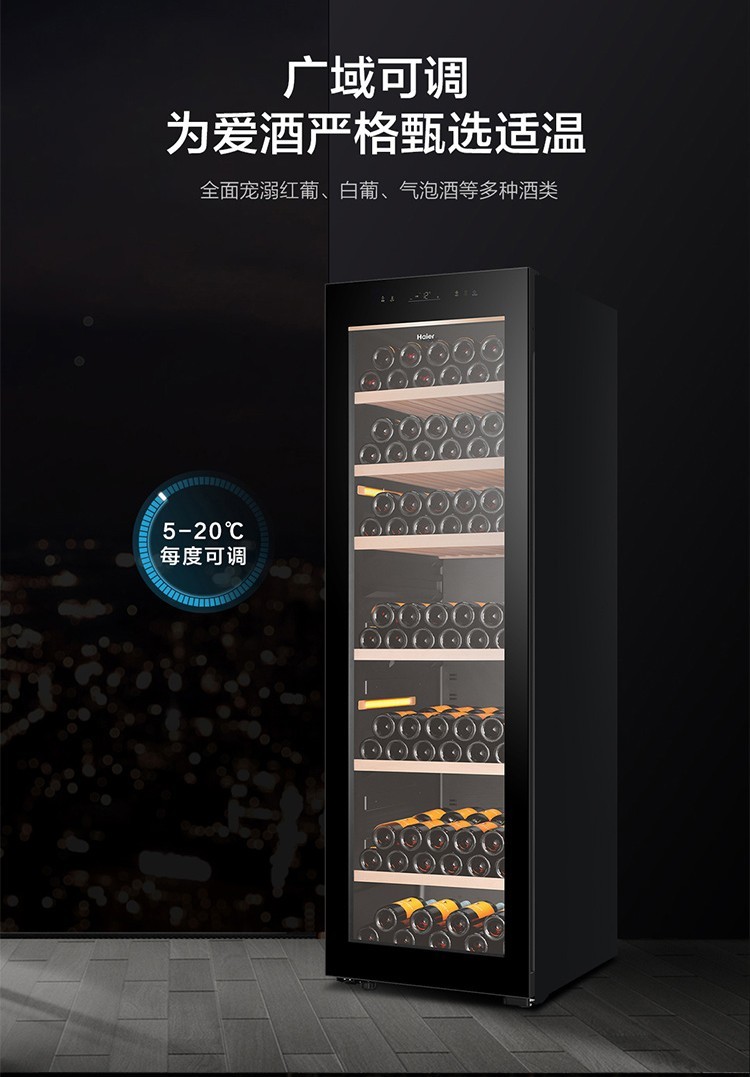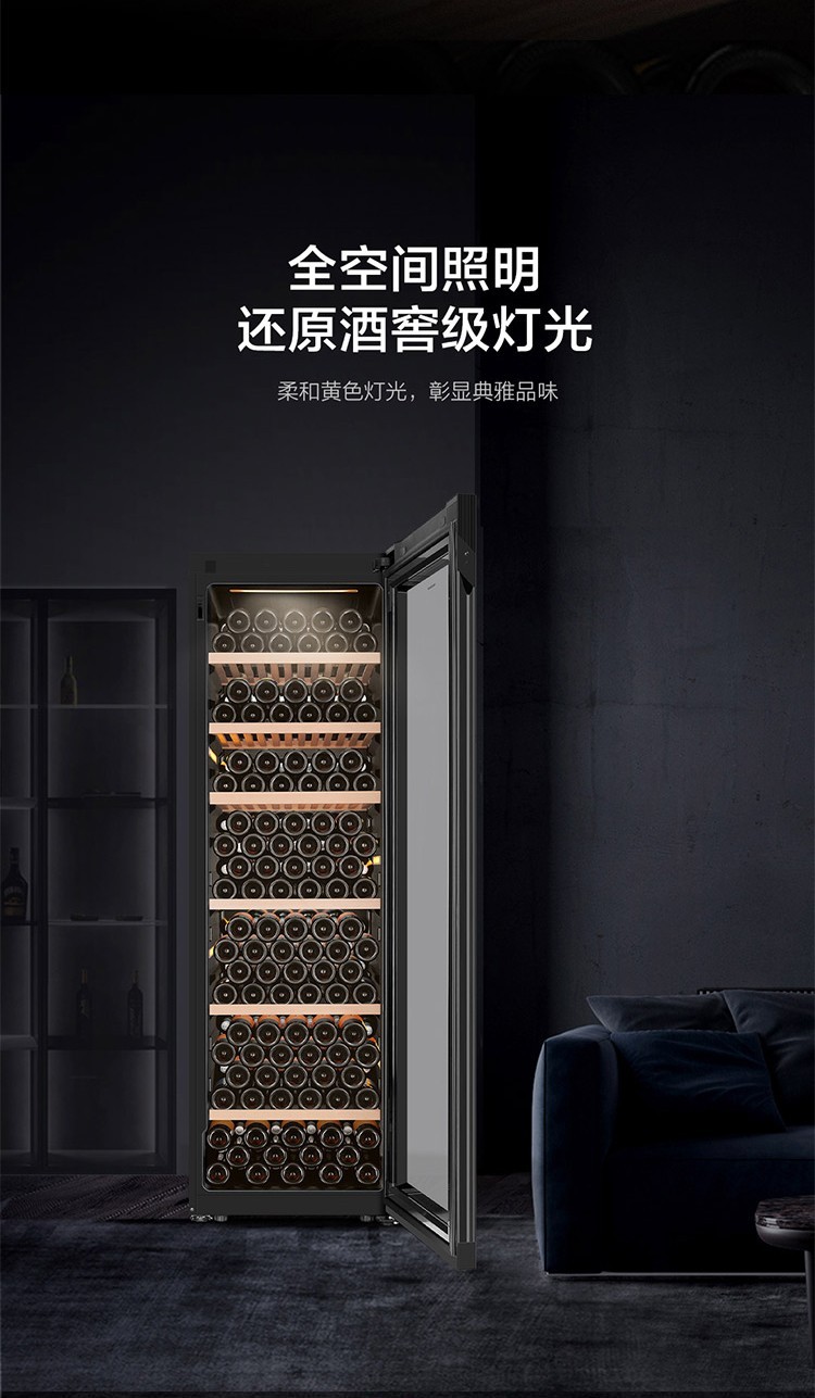 海尔(Haier)红酒柜恒温恒湿立式家用大容量冷藏保鲜冷柜榉木酒架窖藏葡萄酒茶叶雪茄展示柜 247瓶 恒温恒湿 JC-450WGHU1