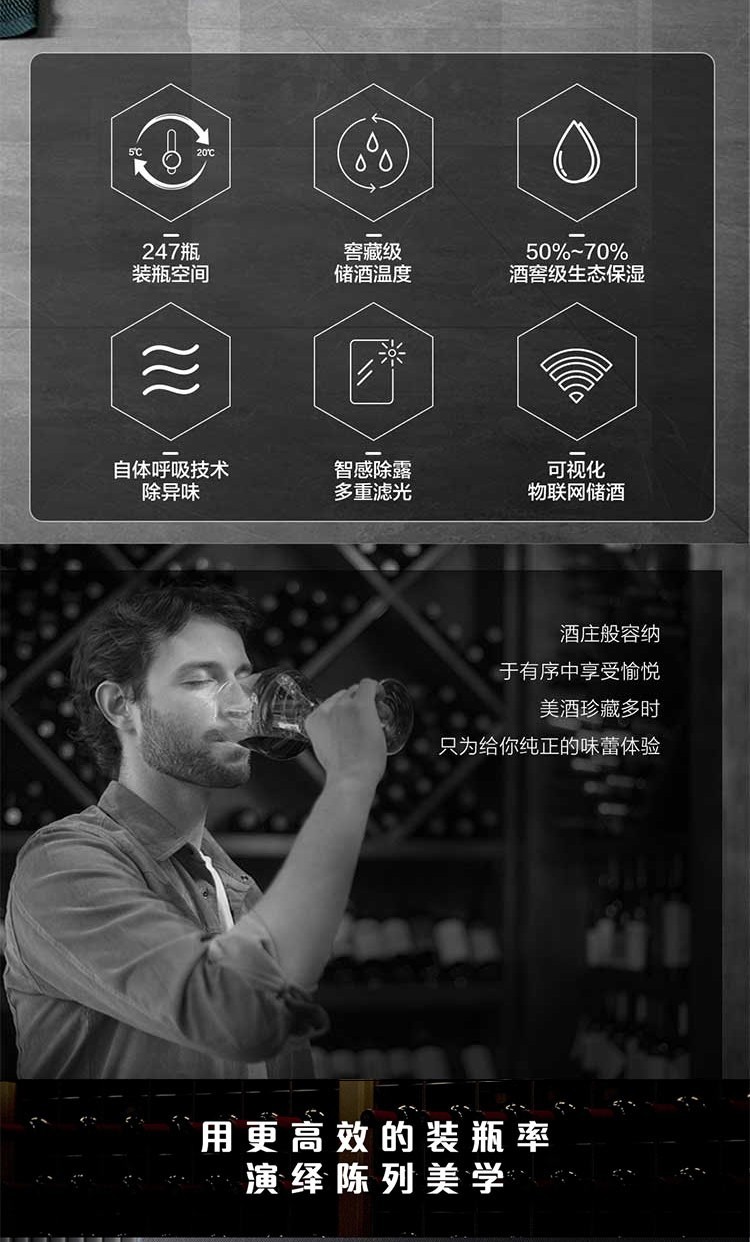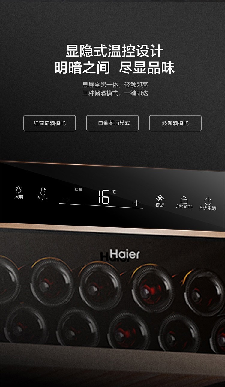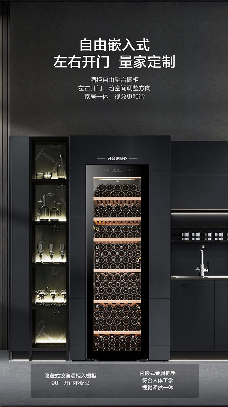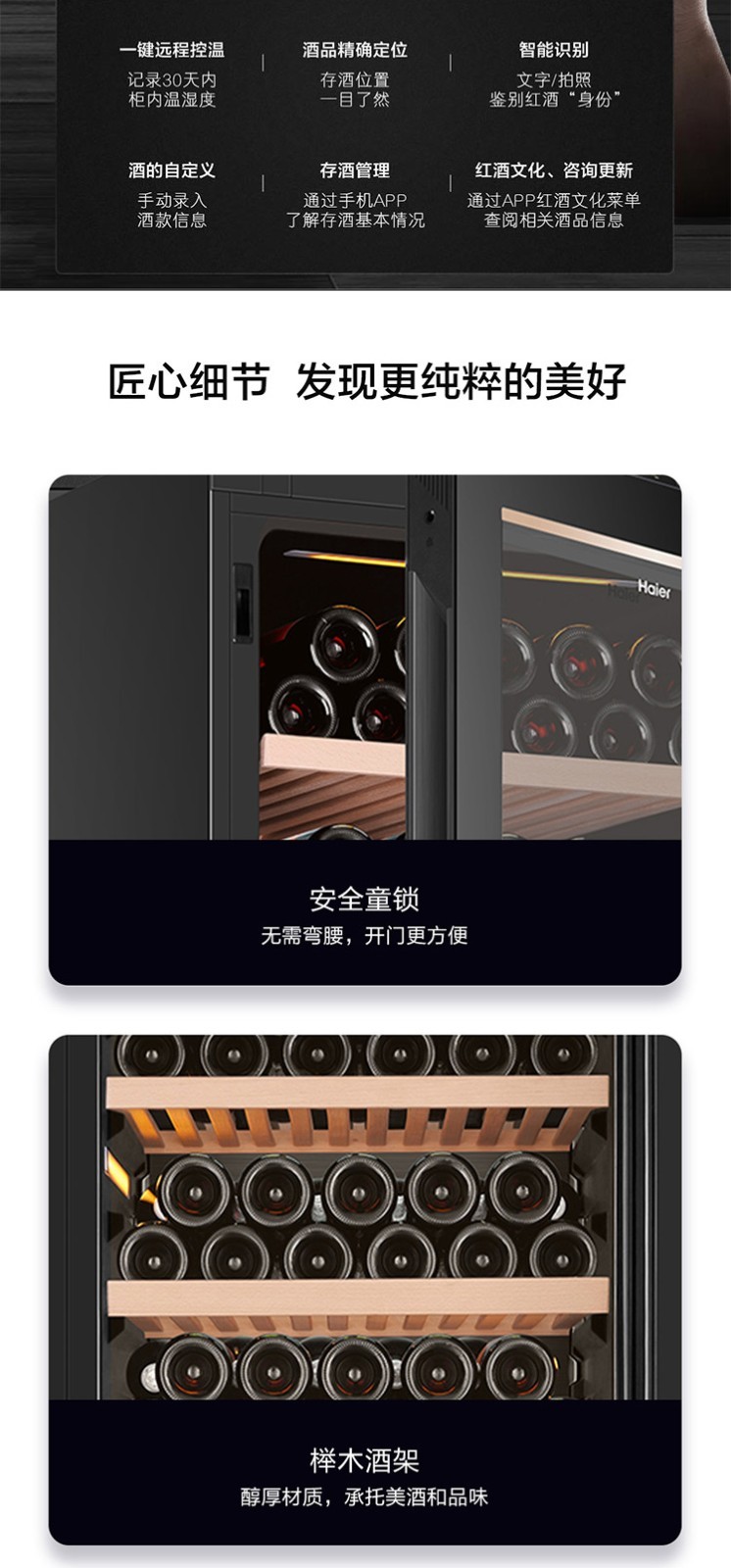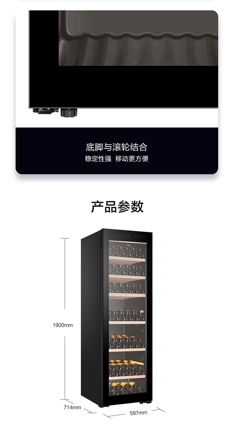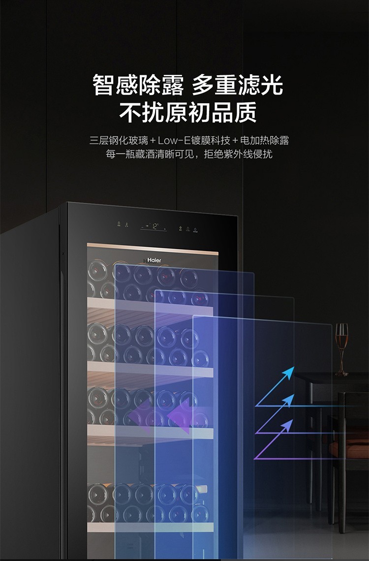 海尔(Haier)红酒柜恒温恒湿立式家用大容量冷藏保鲜冷柜榉木酒架窖藏葡萄酒茶叶雪茄展示柜 247瓶 恒温恒湿 JC-450WGHU1