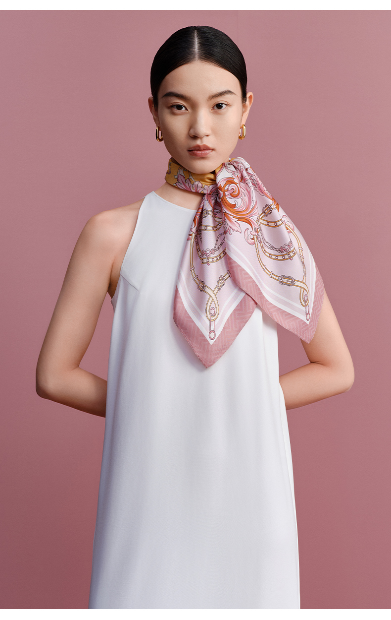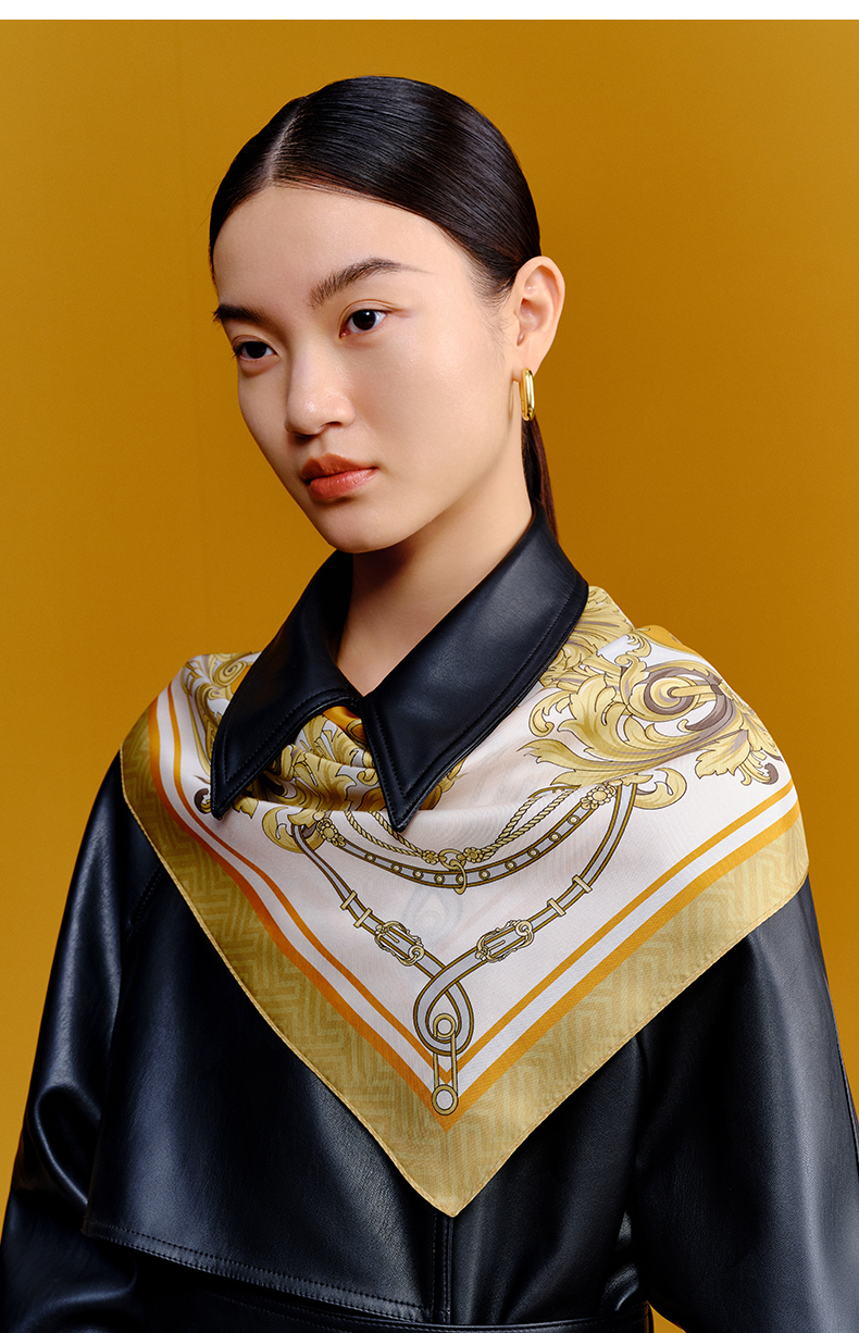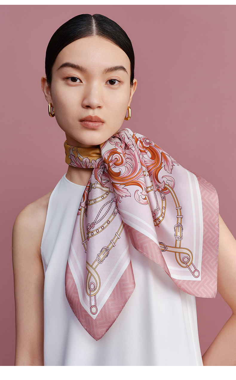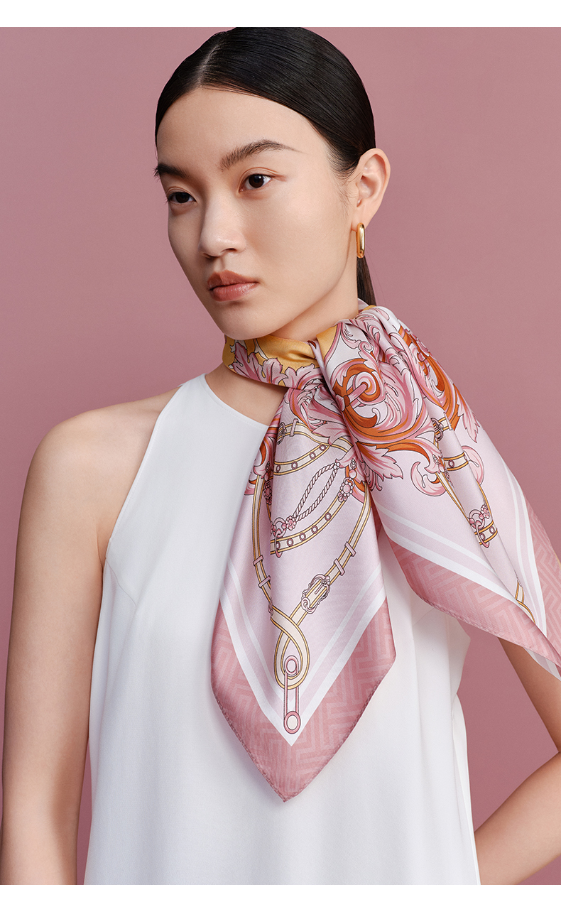 万事利“骑士光彩”63厘米双面印花真丝中方巾