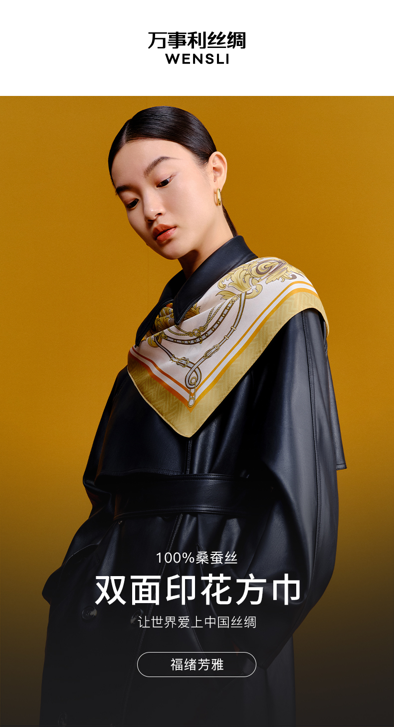 万事利“木兰辞”51厘米双面印花真丝小方巾
