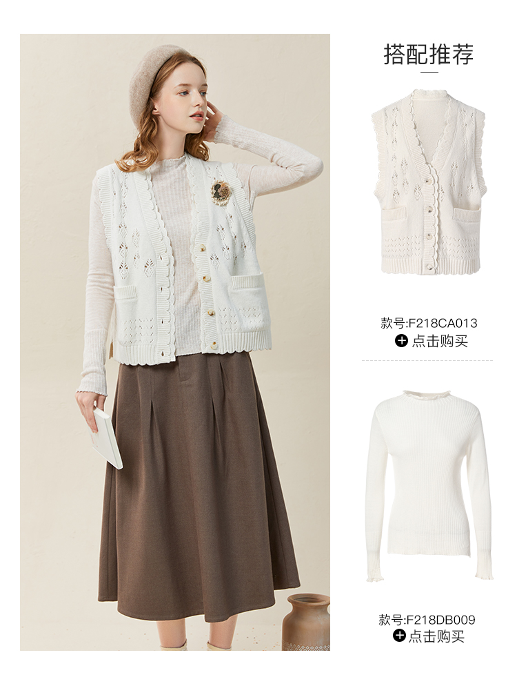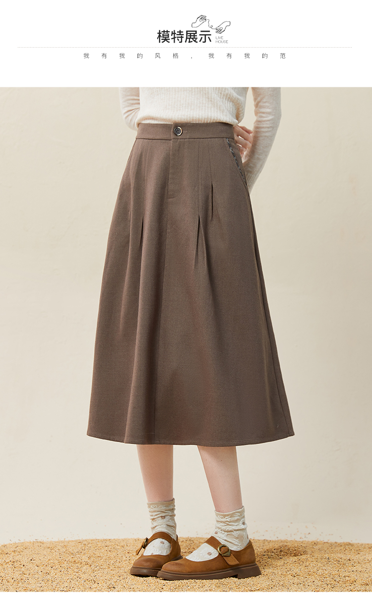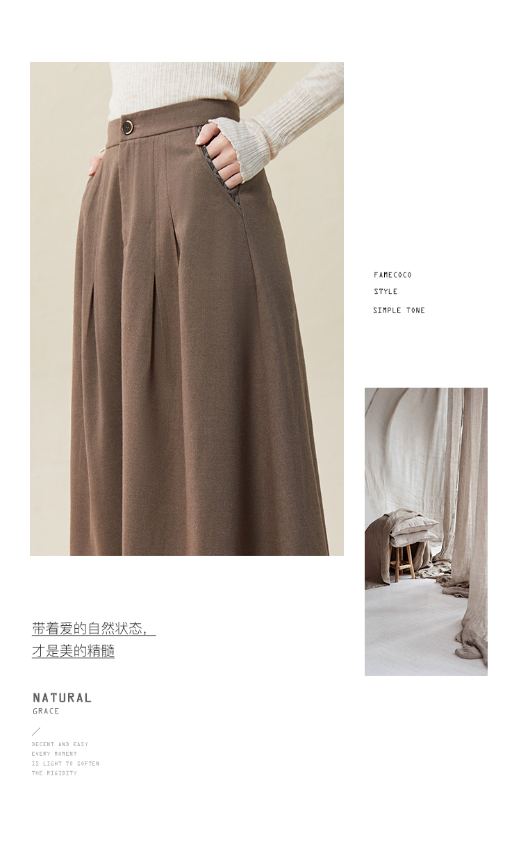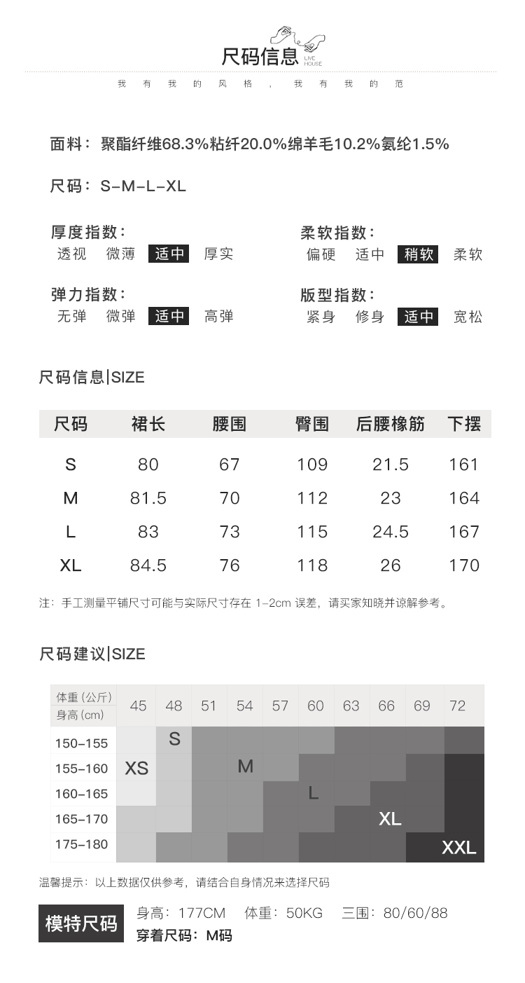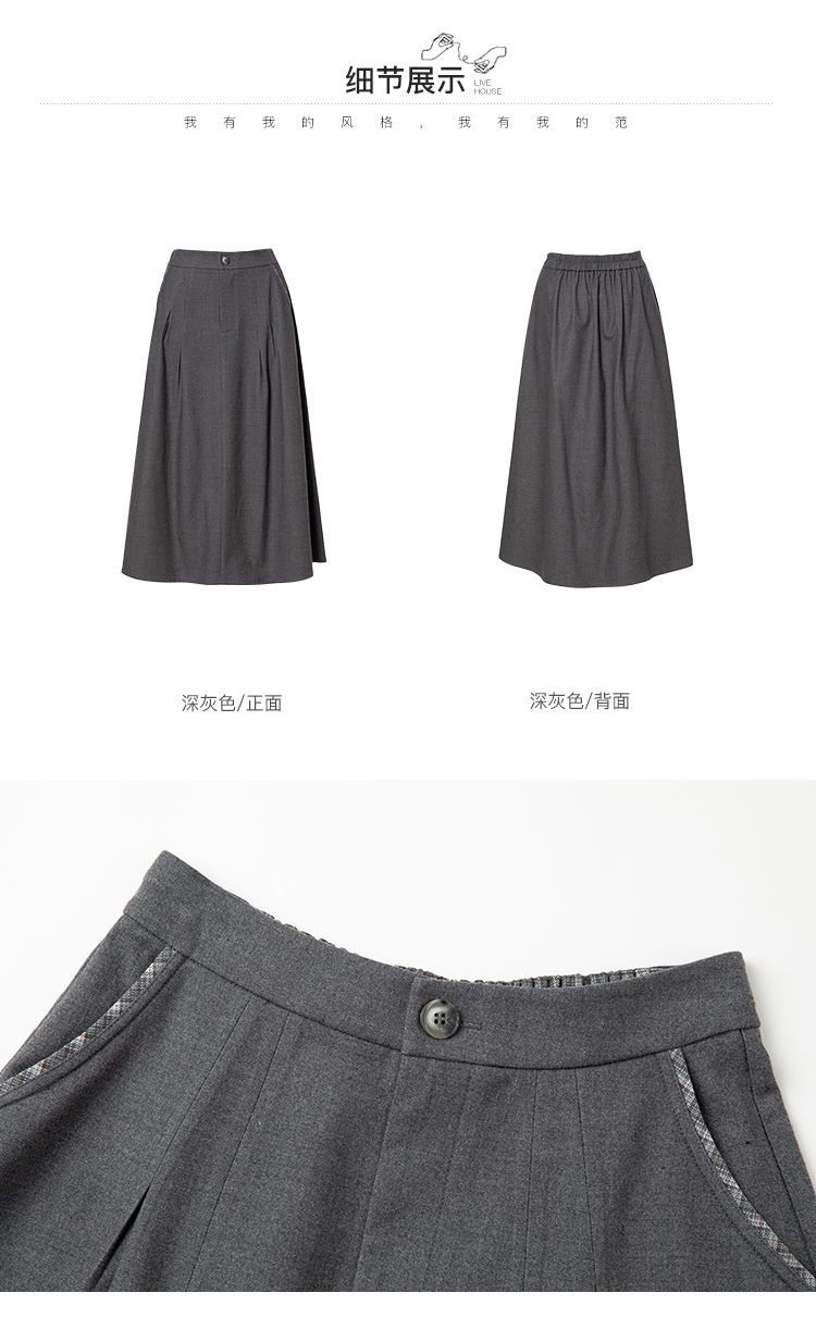 famecoco范可儿格纹拼接tr半身裙女冬高腰a字裙显瘦遮胯F228HA008