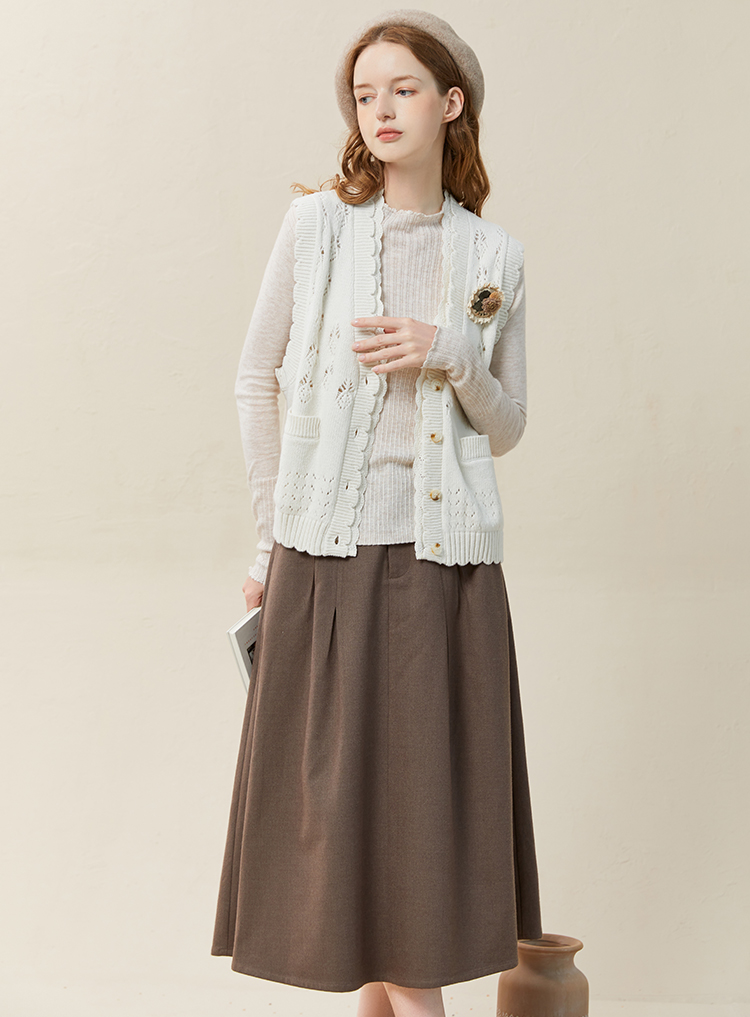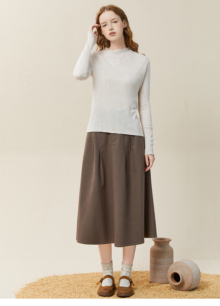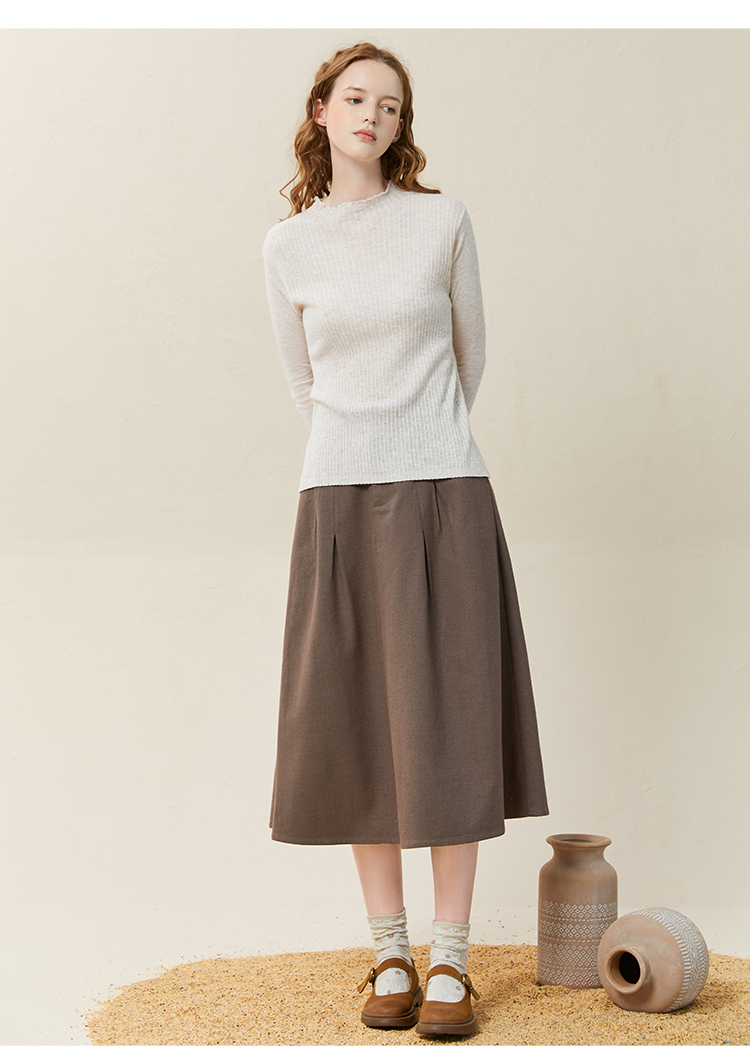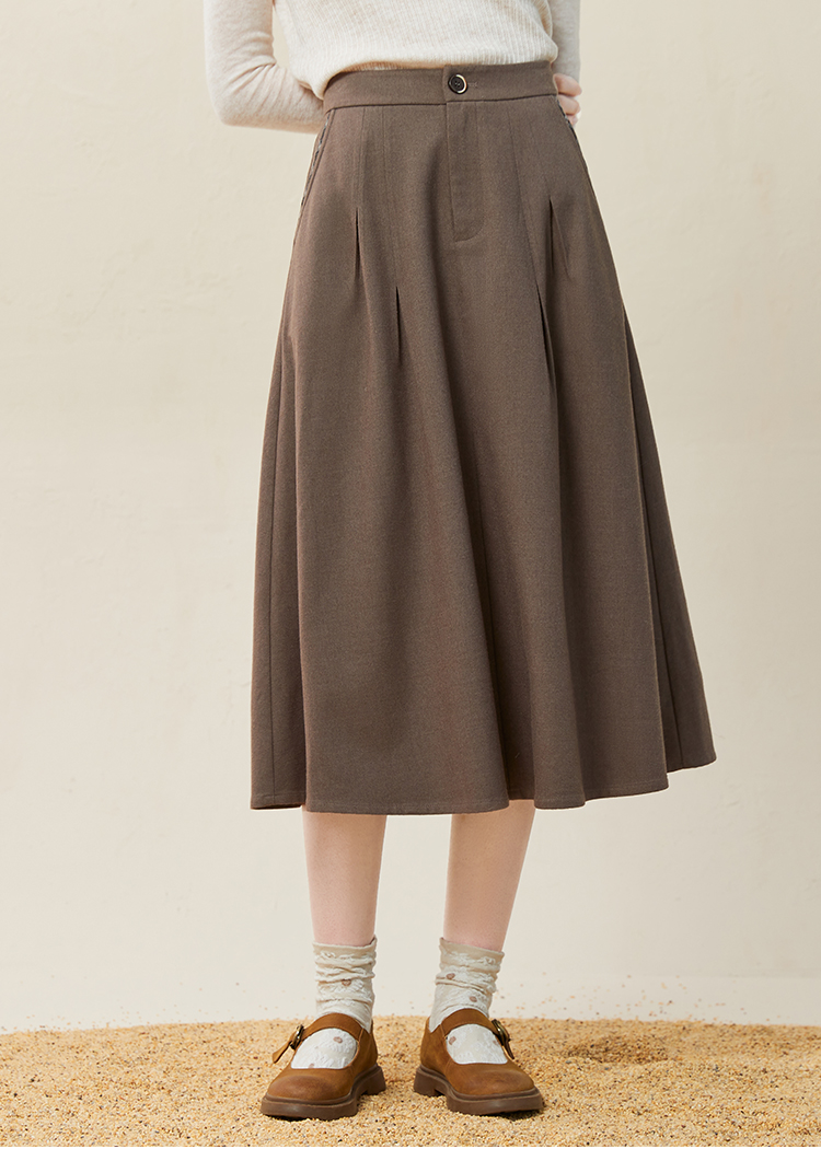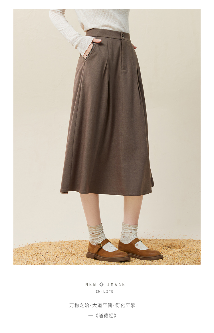 famecoco范可儿格纹拼接tr半身裙女冬高腰a字裙显瘦遮胯F228HA008