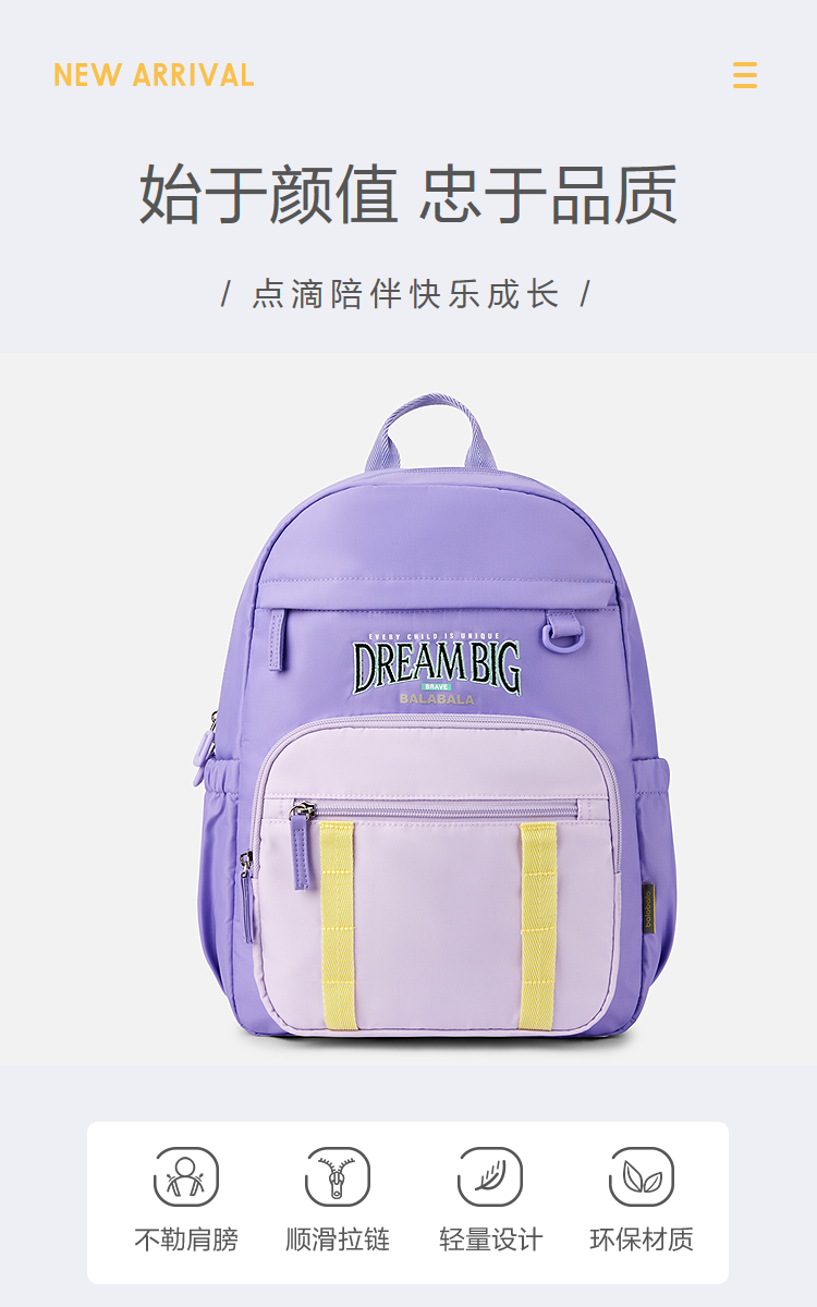 【商场同款】巴拉巴拉儿童书包男女童双肩包舒适护脊减负时尚简约