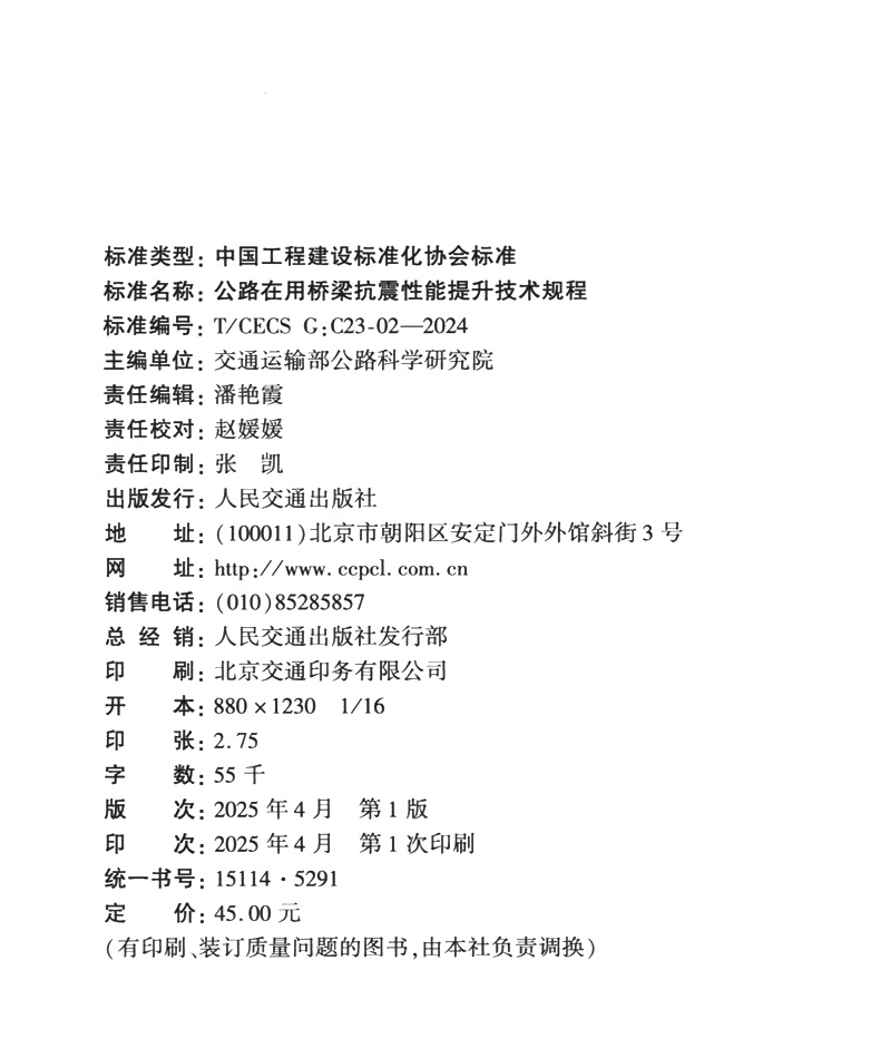 书名:公路在用桥梁抗震性能提升技术规程(T/CECS G:C23-02—2024)