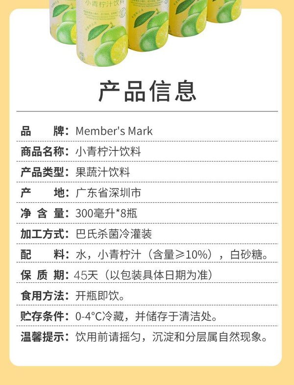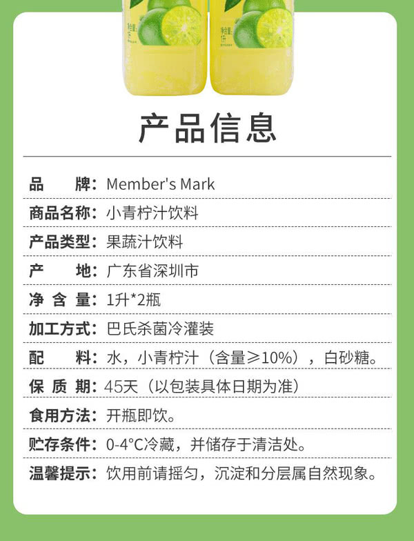 【自提】M小青柠饮料1L*2瓶/300ml*8瓶(冷藏)