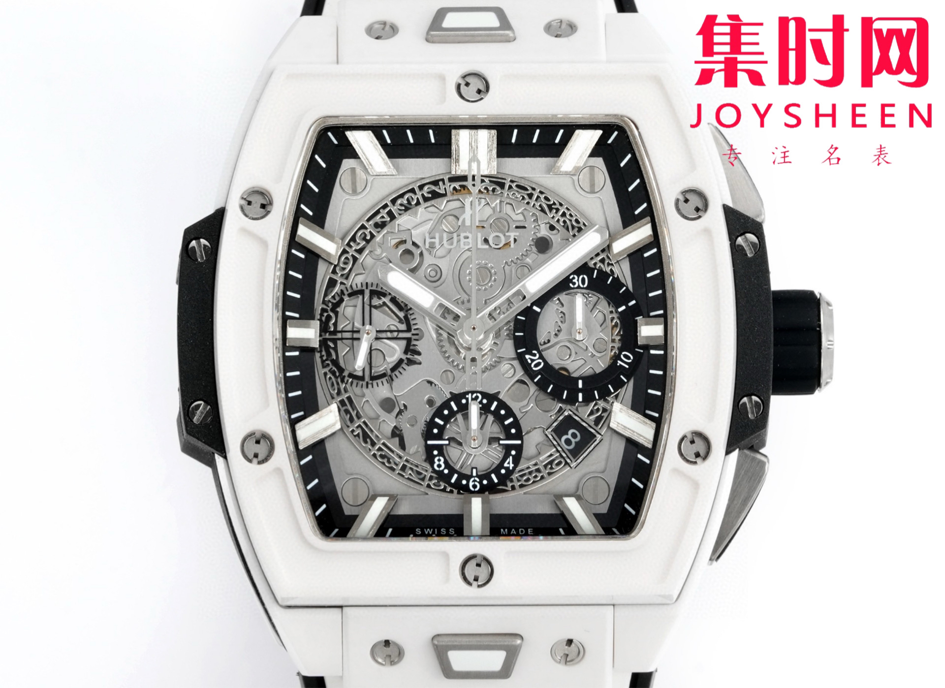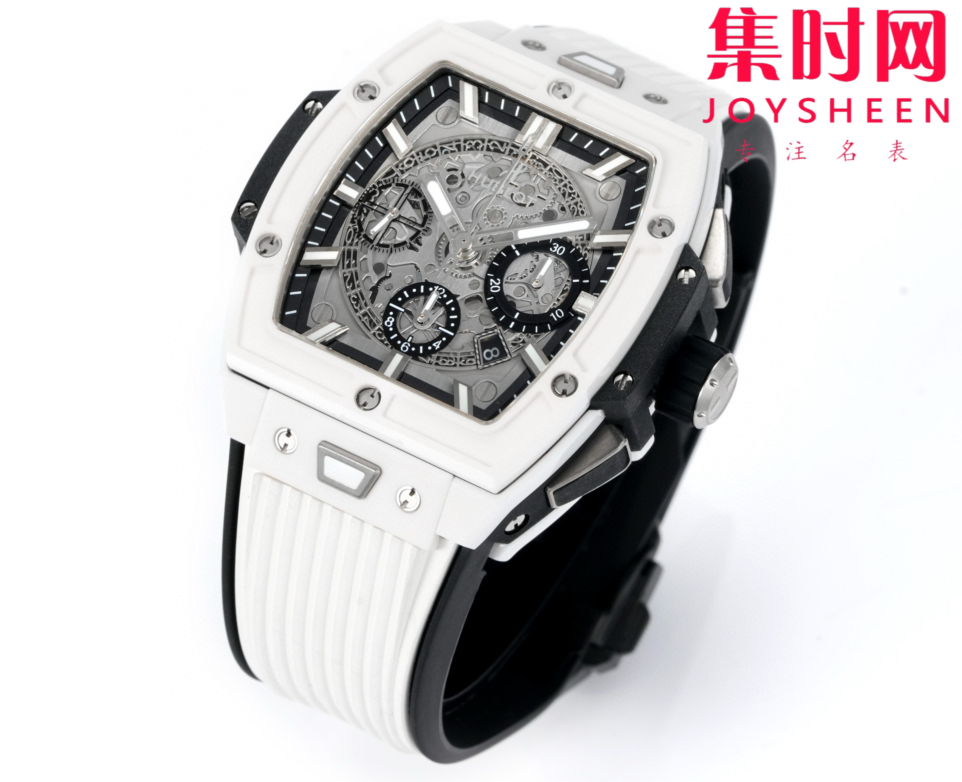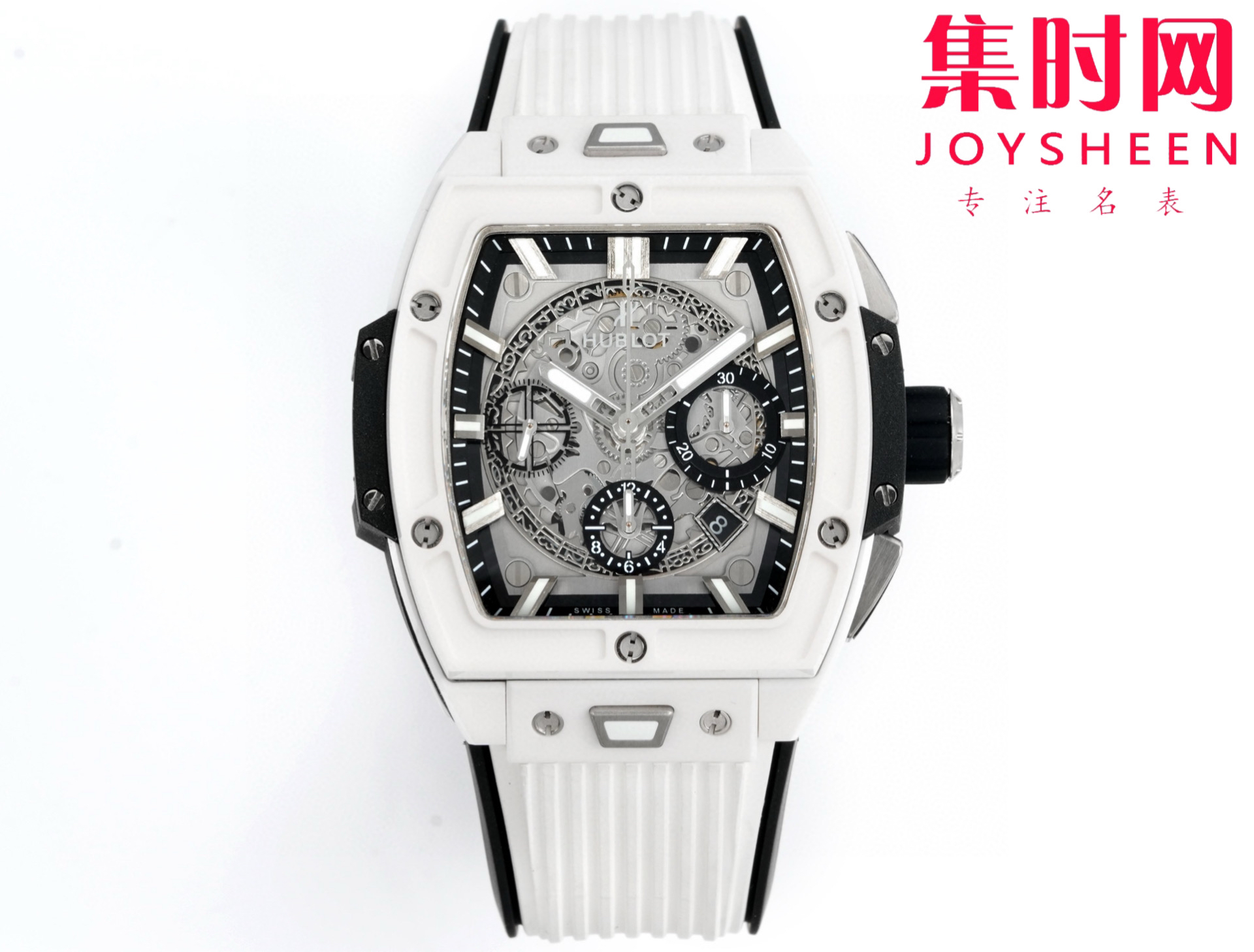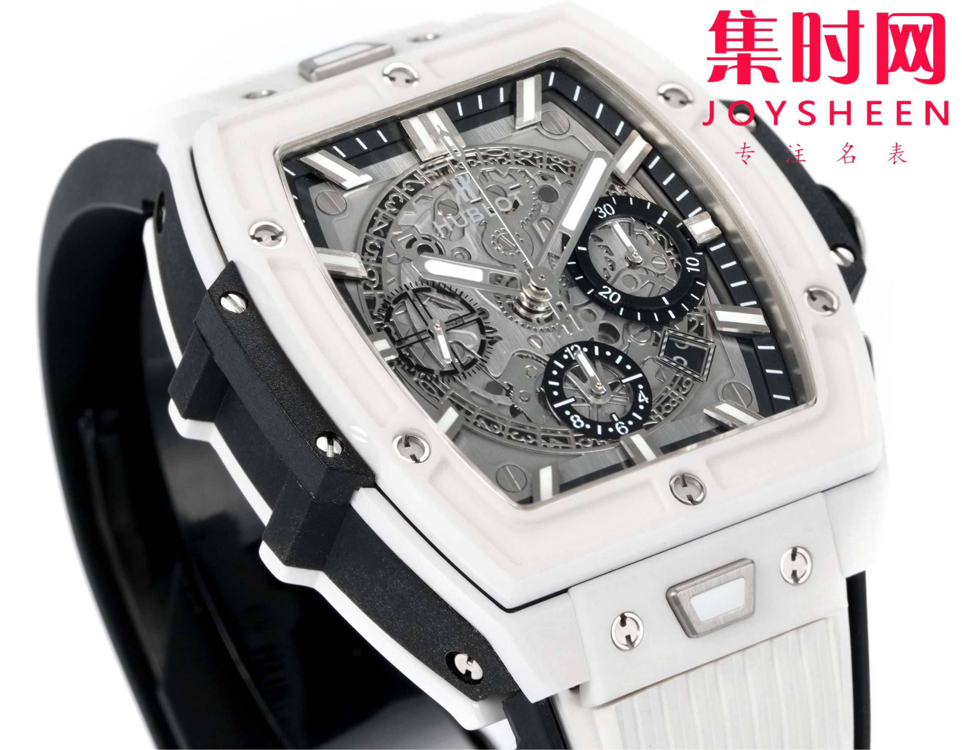 MS彩色陶瓷 灵魂酒桶型 宇舶 -全新彩色“陶瓷工艺” 灵魂BIG BANG系列 男士腕表 以赛车为灵感,推出全新Spirit of Big Bang!腕表结合Spirit of Big Bang系列的所有标志性元素,全新酒桶形全陶瓷表壳。表壳应用钛金属跟树脂材料,借助六枚H型螺丝构建“三明治”结构,传达“融合的技术”的理念,定制HUB4700自动上链机芯,原装折叠表扣,订制氟橡胶表带,腕表配有“一键式”快速更换表带系统,佩戴者只需轻轻一按,即可以轻松快捷地替换表带!!!